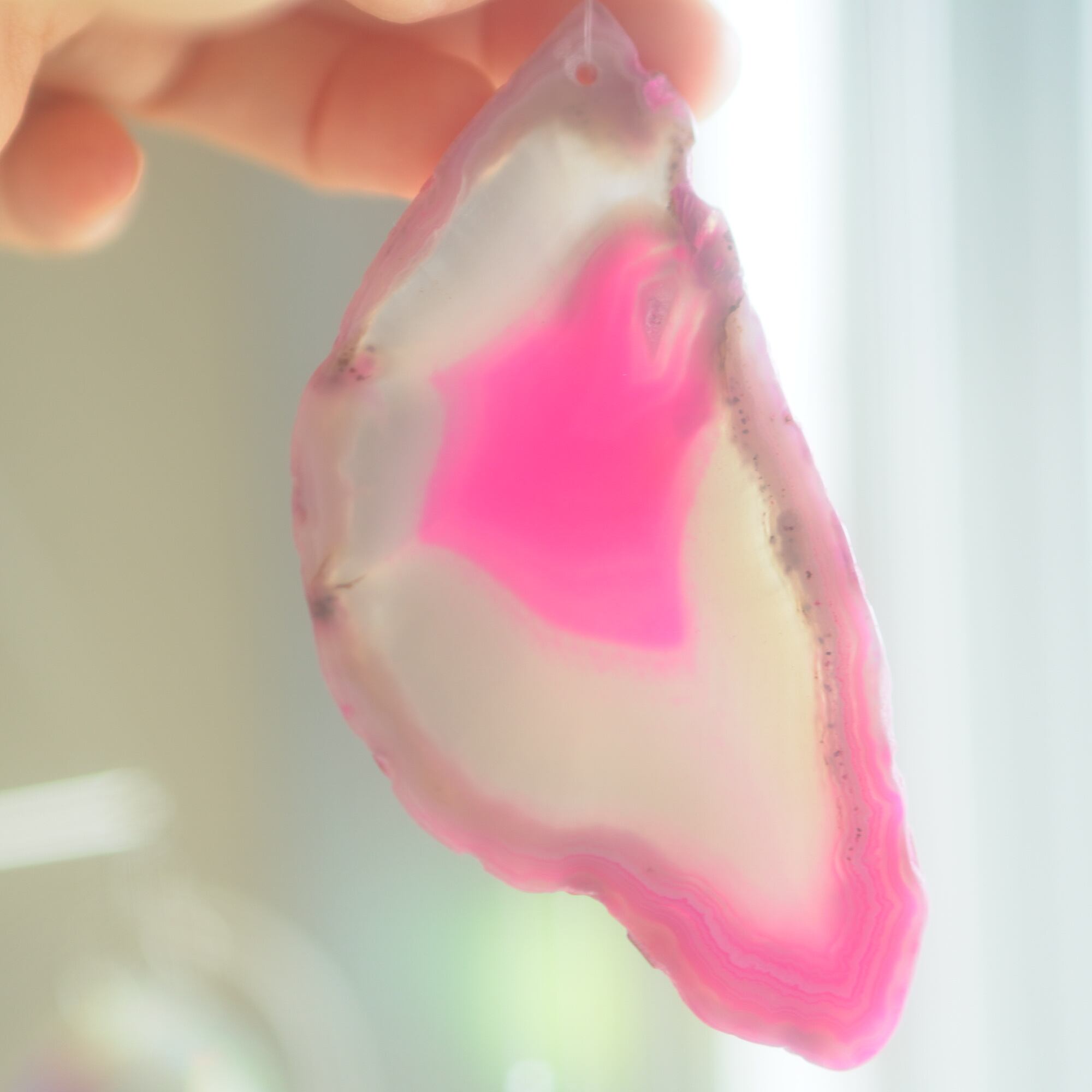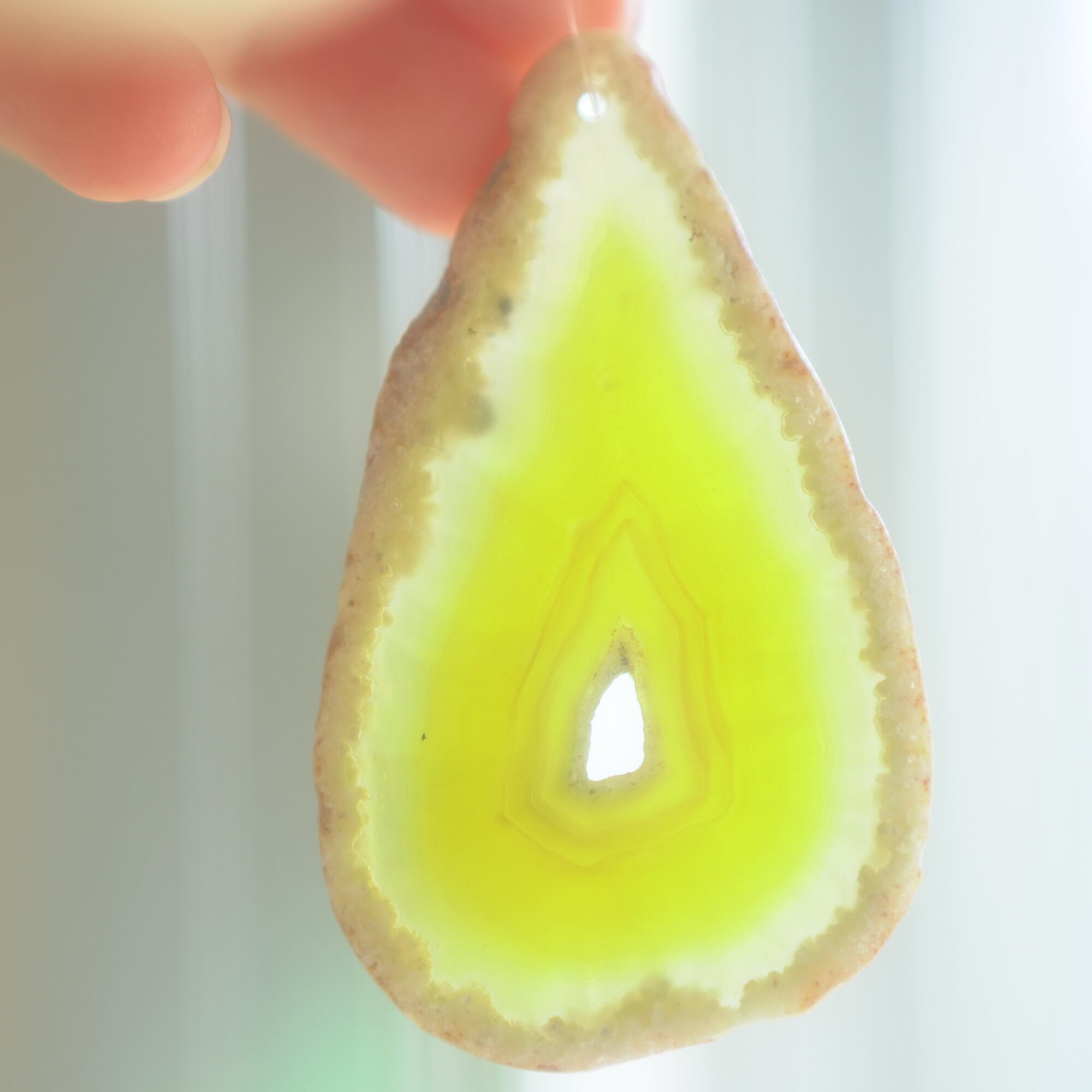 ✧染色の石なので耐光性(光による経年でのカラー変化の耐性)に優れているわけではなくベランダなど一日の中で長時間強い日光に当たるような場所に飾られるのはおすすめしないのですが、陽光に透かした時にだけ真価を発揮する美しさがありますので、是非、時折翳したりして光と一緒にお楽しみいただけたらと思います。特に濃い鮮やかな色など、色変化が気になられる場合は、日光のあまり当たらない場所に飾ってくださいね✧