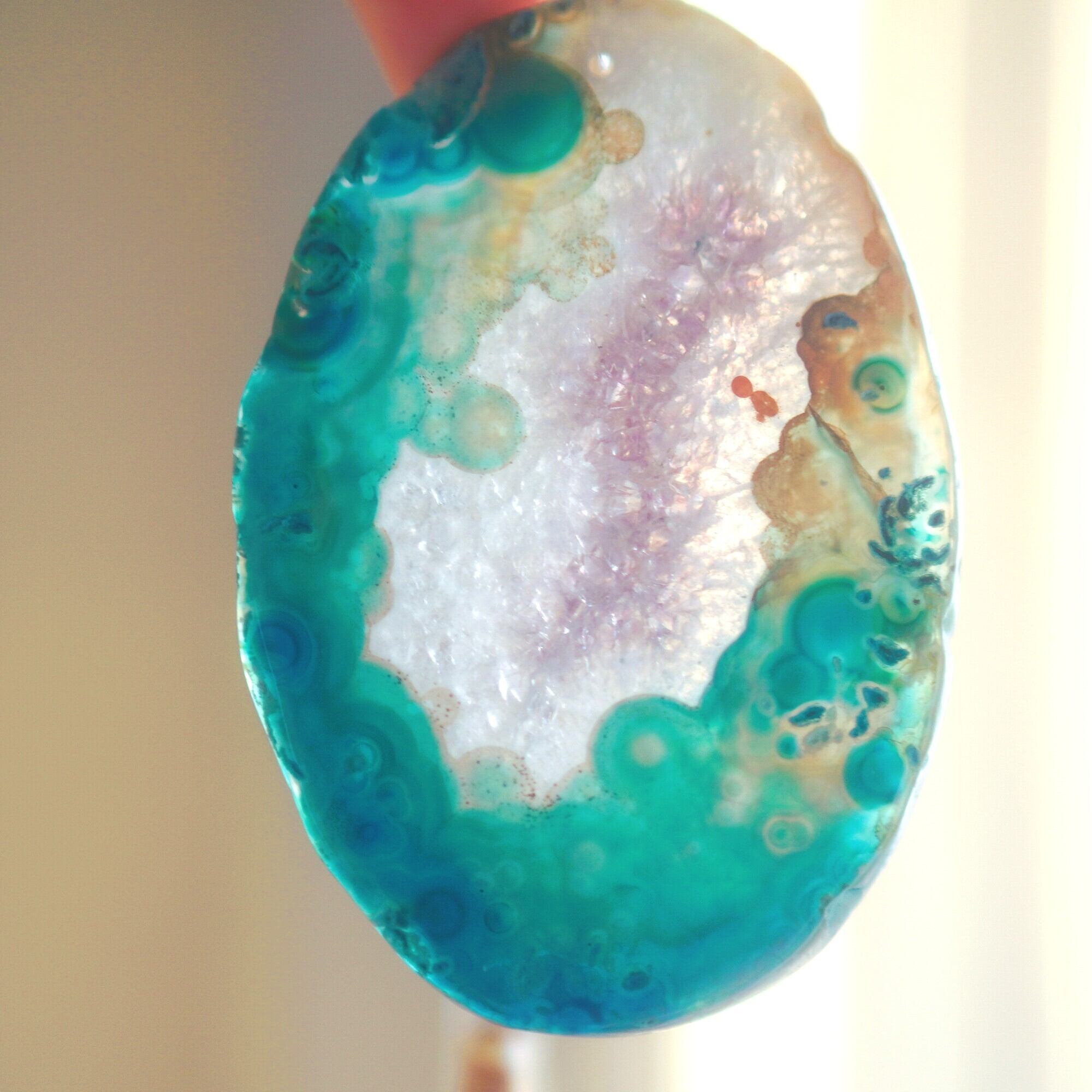 ✧染色の石なので耐光性(光による経年でのカラー変化の耐性)に優れているわけではなくベランダなど一日の中で長時間強い日光に当たるような場所に飾られるのはおすすめしないのですが、陽光に透かした時にだけ真価を発揮する美しさがありますので、是非、時折翳したりして光と一緒にお楽しみいただけたらと思います。特に濃い鮮やかな色など、色変化が気になられる場合は、日光のあまり当たらない場所に飾ってくださいね✧
