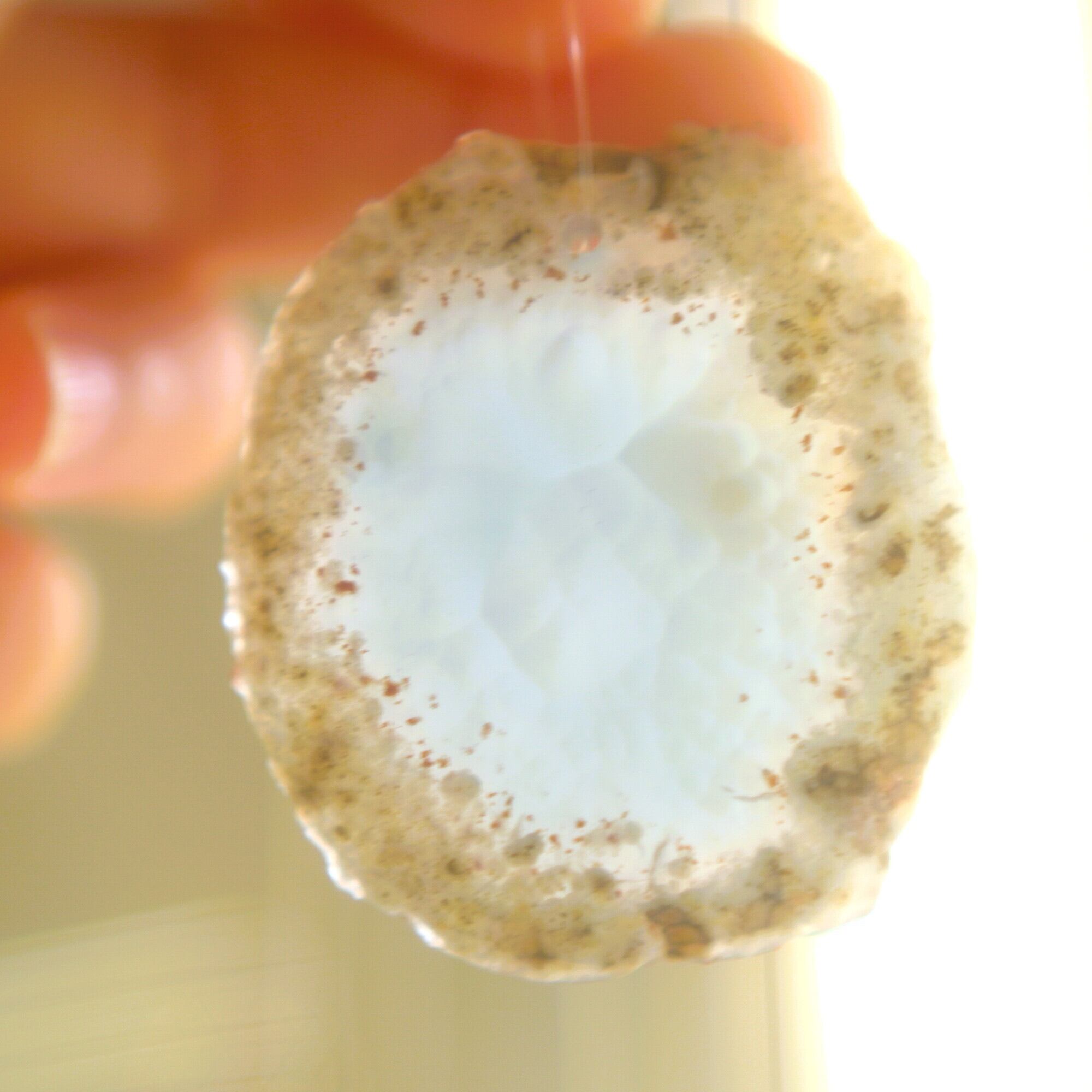 ✧瑪瑙の濃い色は染色によるもので、水に濡れた布で擦ると多少色落ちしますが、汚れが気になる時は若干の色落ち前提で水を軽く含ませた布やティッシュでやさしく拭いていただくことは大丈夫です。また、画像のような細かなヒビ・カケはスライスメノウの加工上避けられないことが多く、チャイムとしての機能や全体の外観を著しく損なうものを除き、見た目の完璧さ<音色の響きや石のもつ美しさ重視で選んで使用しております✧
