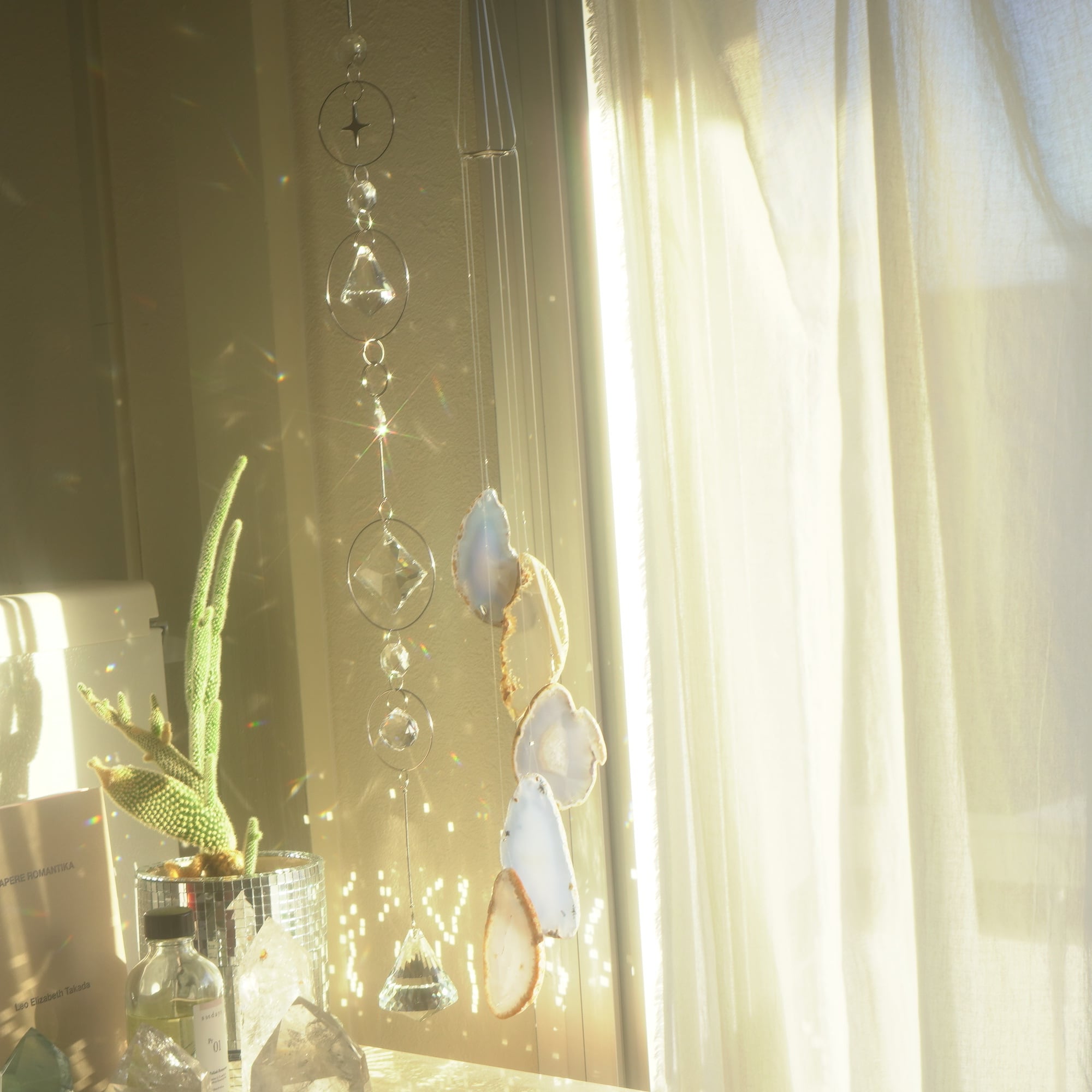 そしてカーテン越しではなく直射日光を当てた際のサンキャッチャーとしてのチャイムも、ピカピカとした美しい光をお部屋の中に運んでくれます。