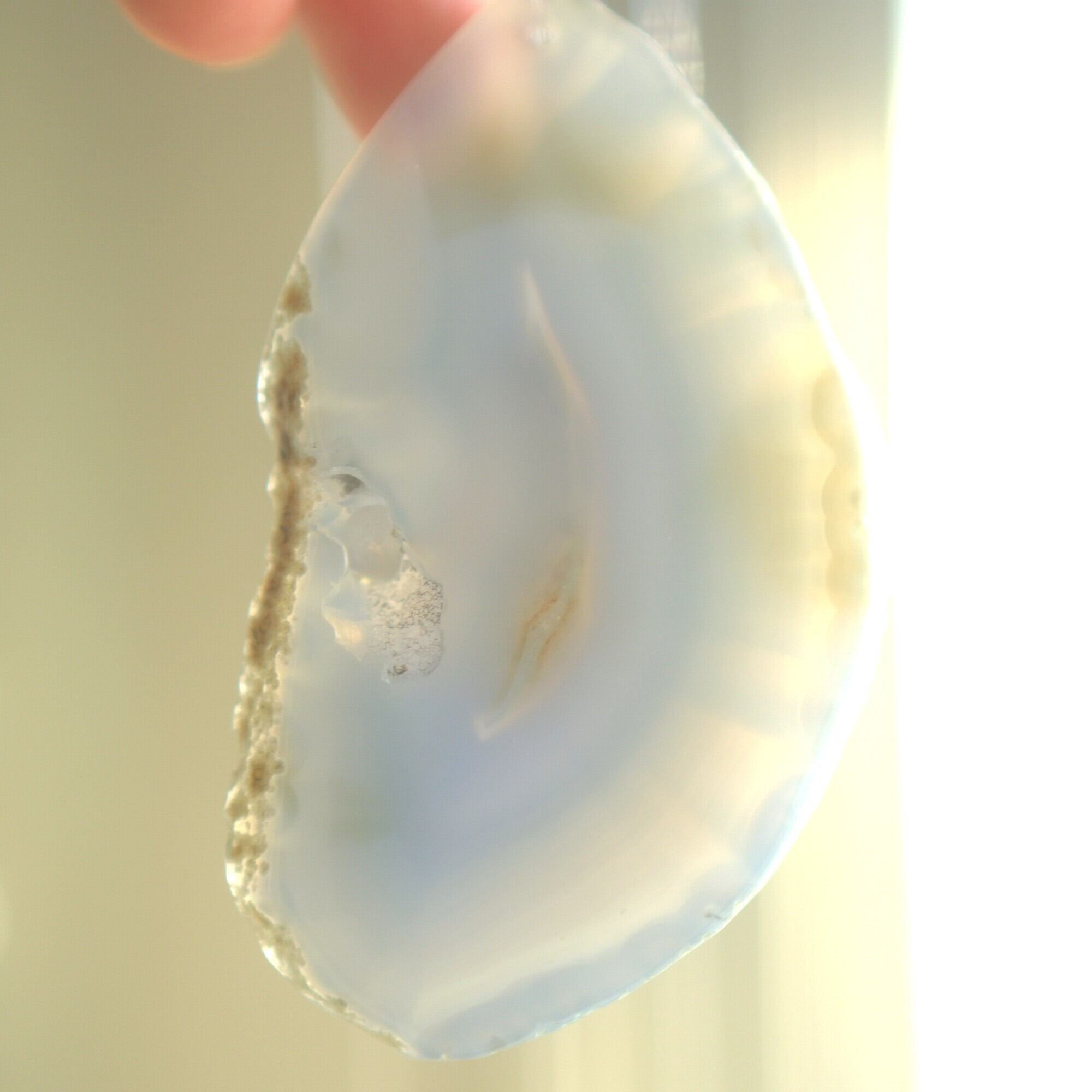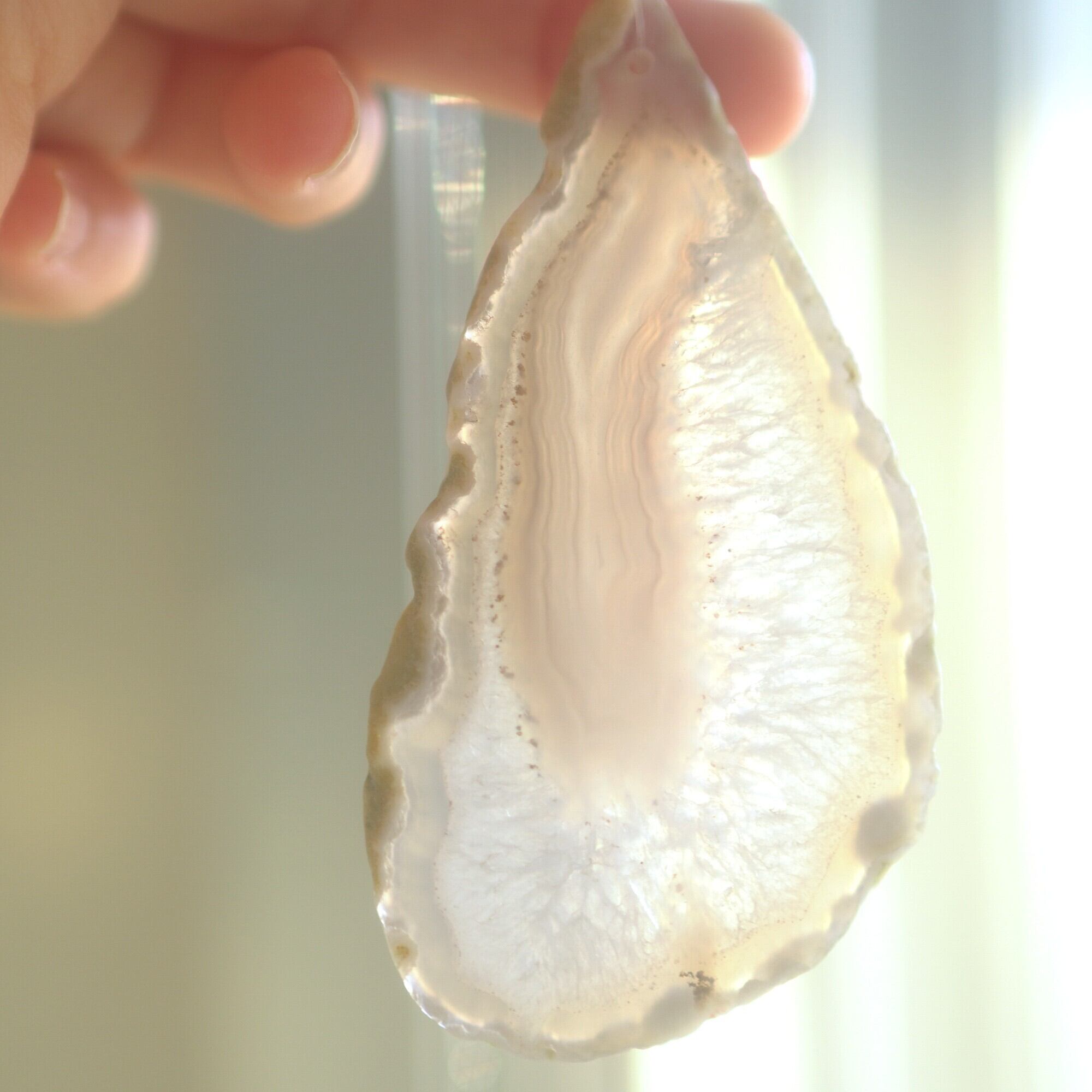 重ねる石同士の側面の加工状態によっても良い音が鳴ったり鳴らなかったり、石の見た目だけで組み合わせを決められないことが難しいポイントでもあるのですが、そんな中、たくさんの石の中から選ばれた5枚のスライスアゲートから出来上がったチャイムたちは、どこか悠々自適に空を泳ぐ妖精のようでもあり、それぞれの音を楽しそうに奏でてくれます。