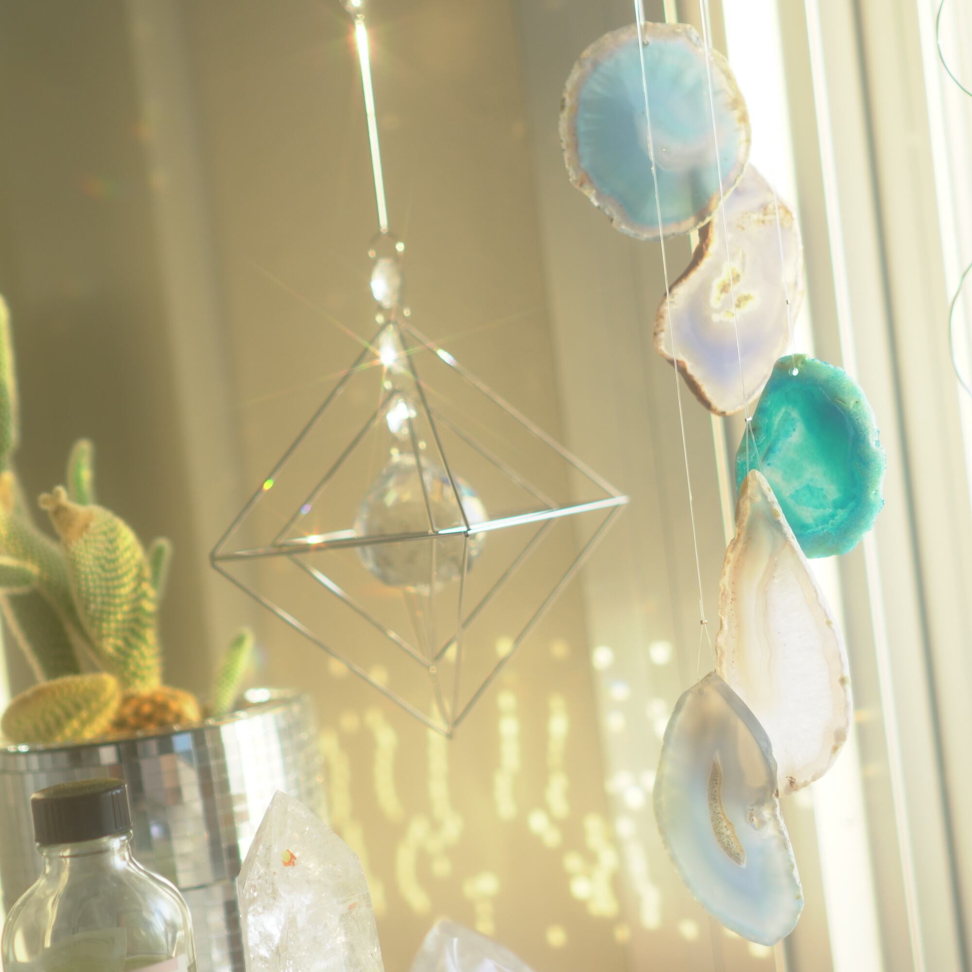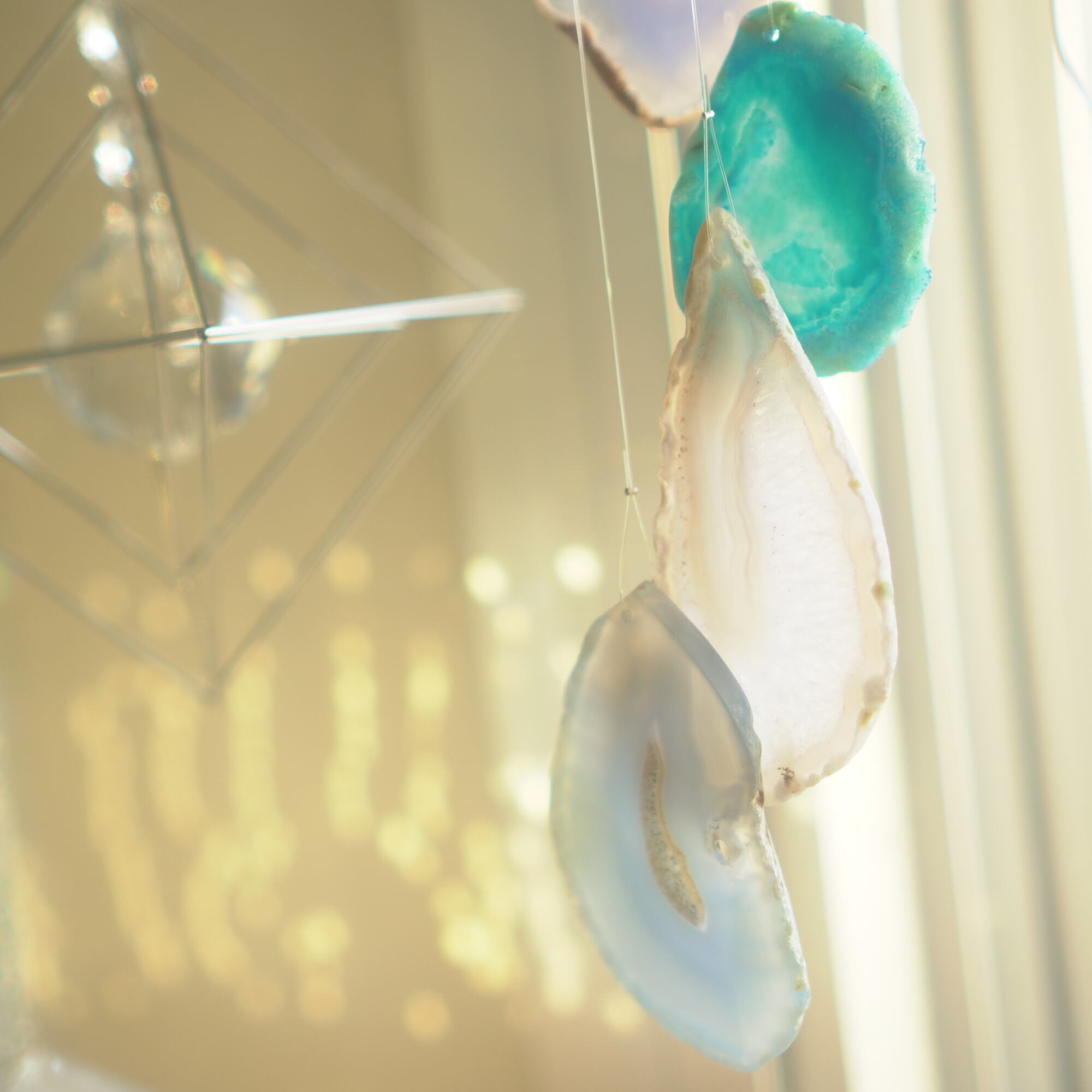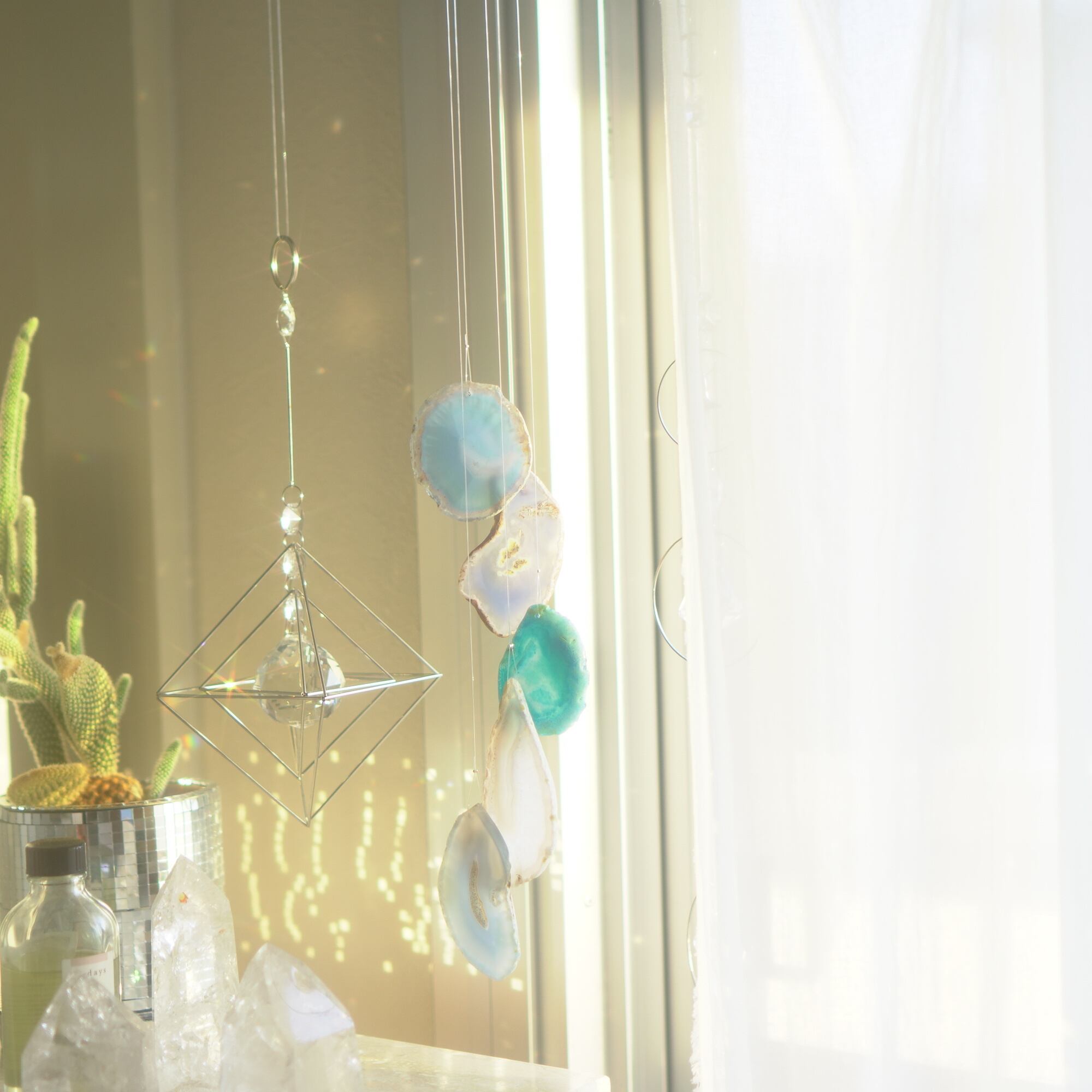 そしてカーテン越しではなく直射日光を当てた際のサンキャッチャーとしてのチャイムも、ピカピカとした美しい光をお部屋の中に運んでくれます。