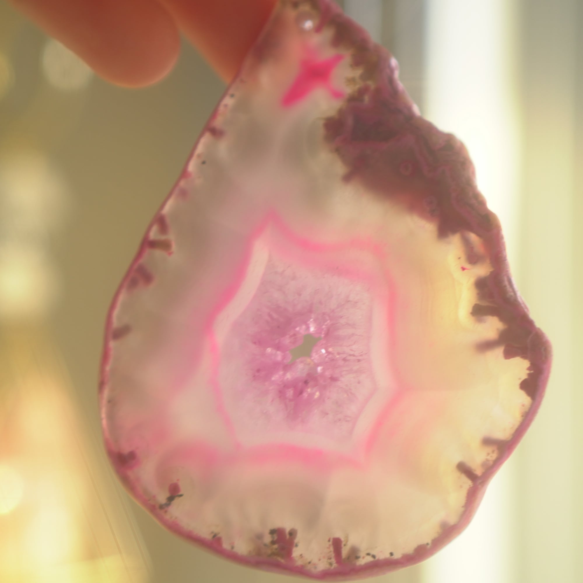 ✧染色の石なので耐光性(光による経年でのカラー変化の耐性)に優れているわけではなくベランダなど一日の中で長時間強い日光に当たるような場所に飾られるのはおすすめしないのですが、陽光に透かした時にだけ真価を発揮する美しさがありますので、是非、時折翳したりして光と一緒にお楽しみいただけたらと思います。特に濃い鮮やかな色など、色変化が気になられる場合は、日光のあまり当たらない場所に飾ってくださいね✧
