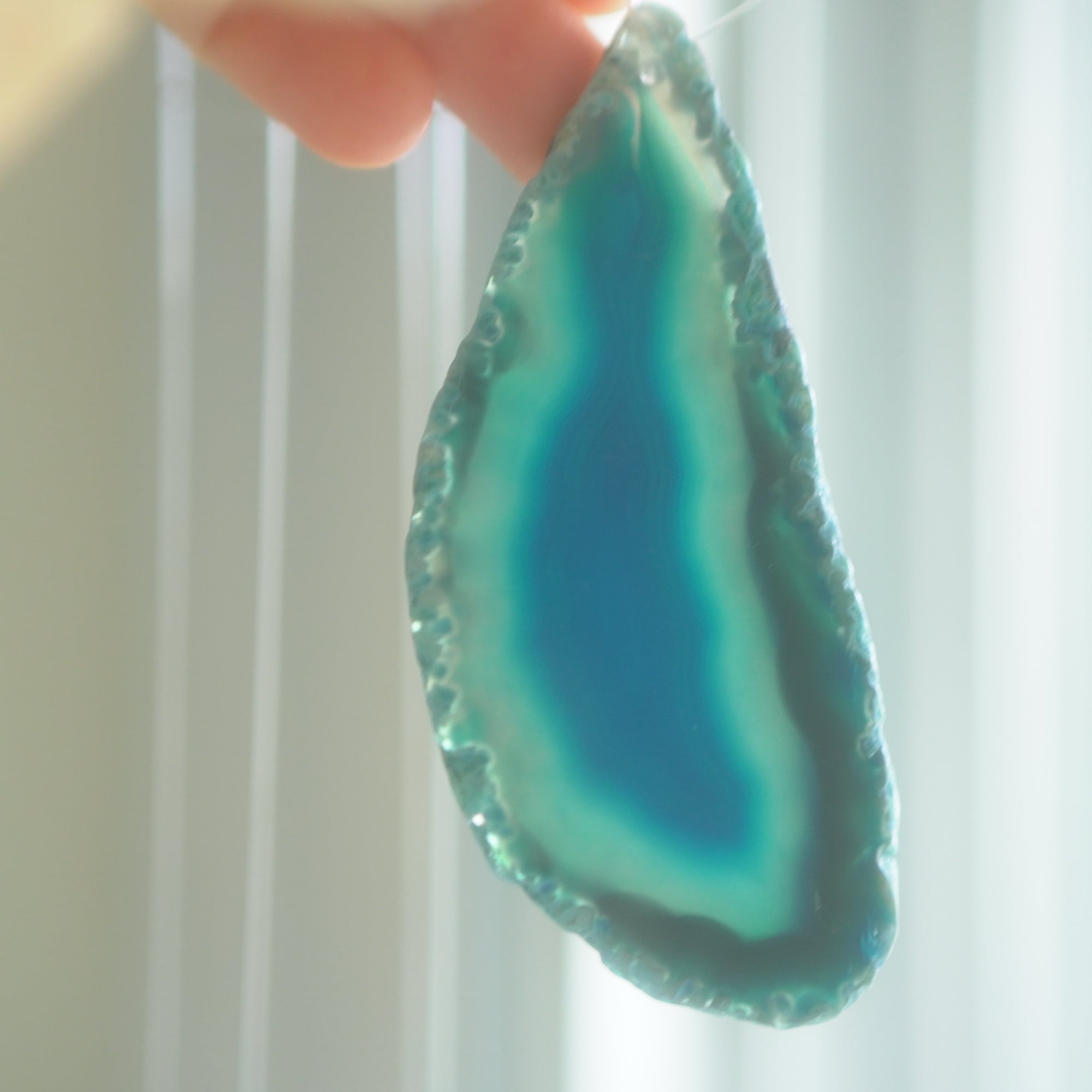 ✧染色の石なので耐光性(光による経年でのカラー変化の耐性)に優れているわけではなくベランダなど一日の中で長時間強い日光に当たるような場所に飾られるのはおすすめしないのですが、陽光に透かした時にだけ真価を発揮する美しさがありますので、是非、時折翳したりして光と一緒にお楽しみいただけたらと思います。特に濃い鮮やかな色など、色変化が気になられる場合は、日光のあまり当たらない場所に飾ってくださいね✧