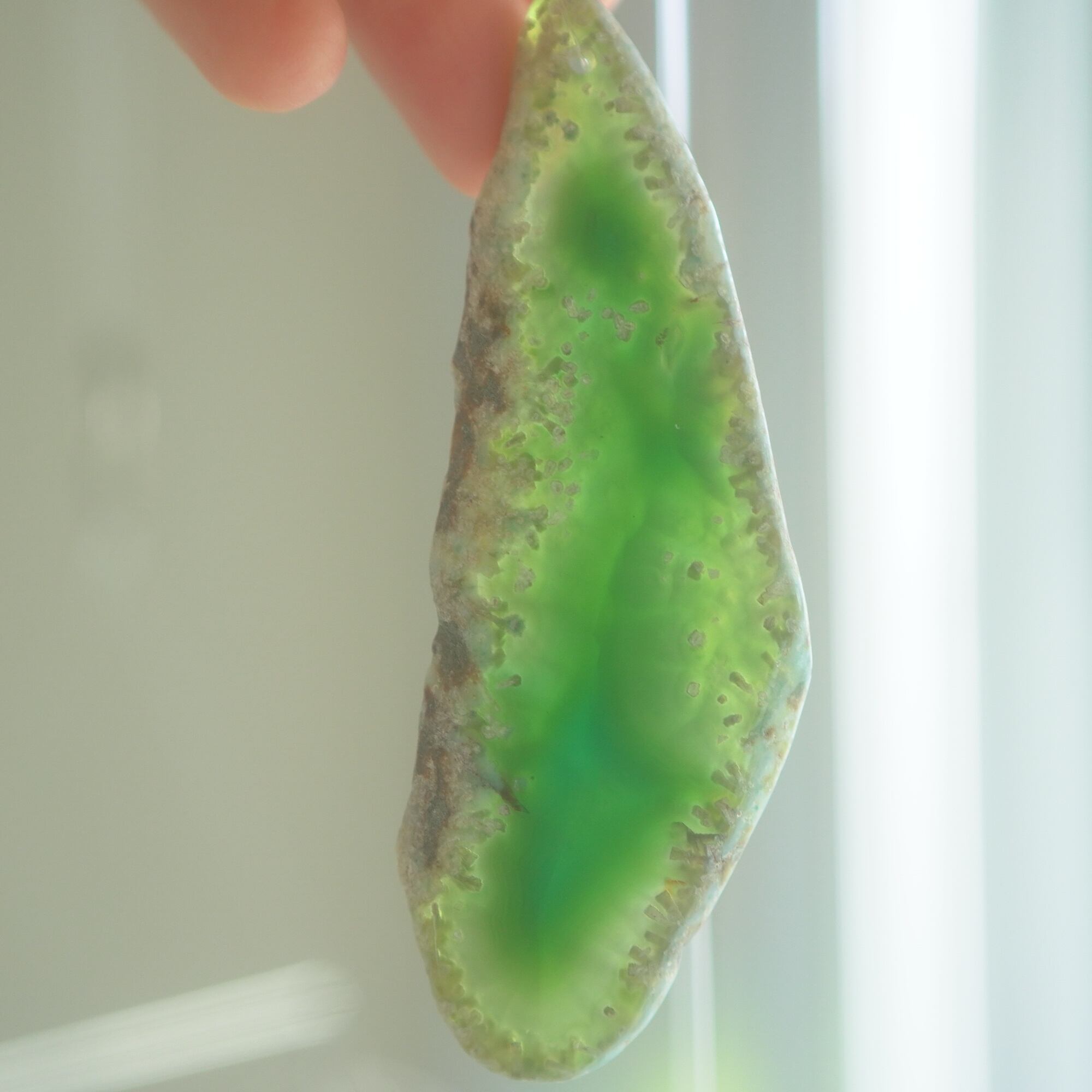 ✧染色の石なので耐光性(光による経年でのカラー変化の耐性)に優れているわけではなくベランダなど一日の中で長時間強い日光に当たるような場所に飾られるのはおすすめしないのですが、陽光に透かした時にだけ真価を発揮する美しさがありますので、是非、時折翳したりして光と一緒にお楽しみいただけたらと思います。特に濃い鮮やかな色など、色変化が気になられる場合は、日光のあまり当たらない場所に飾ってくださいね✧