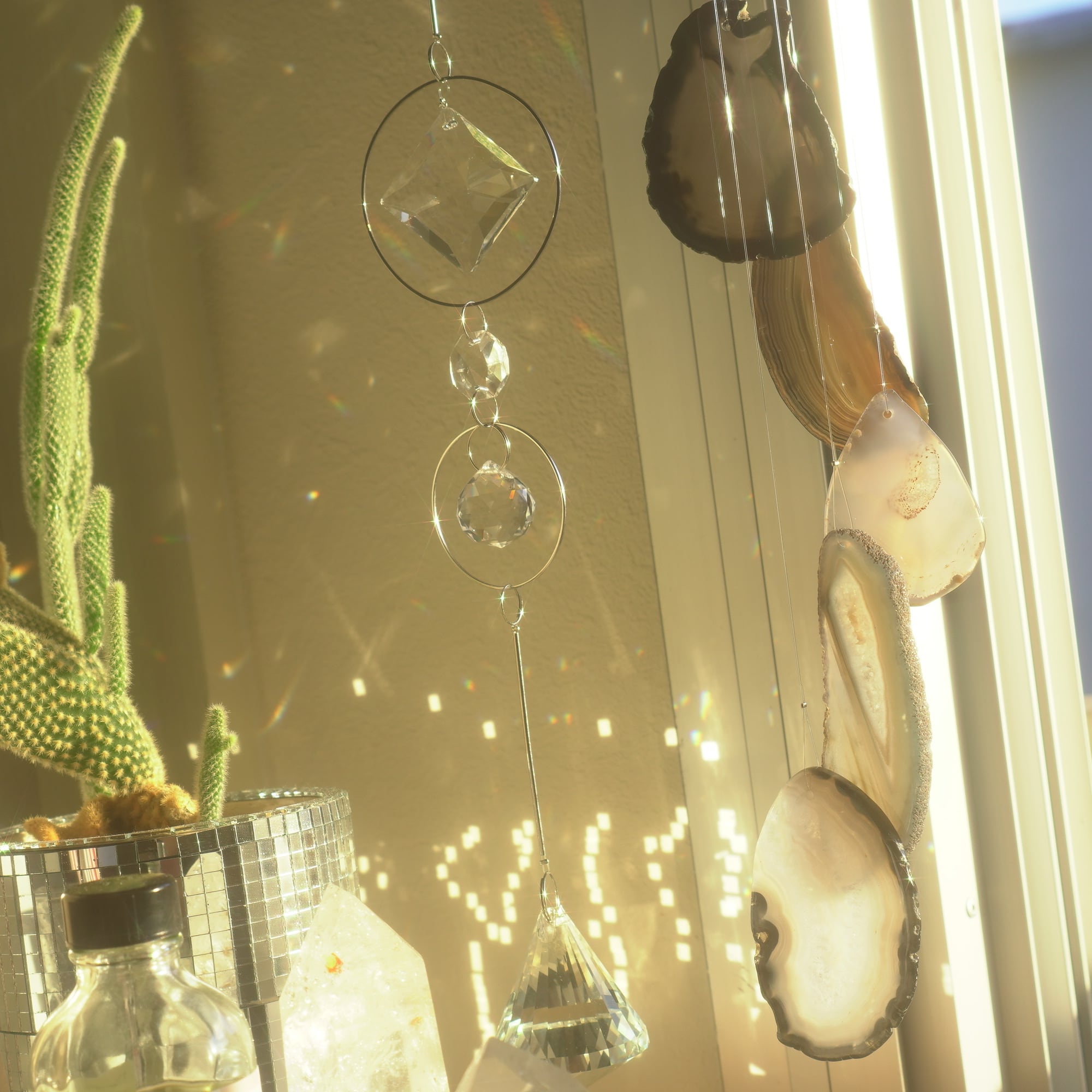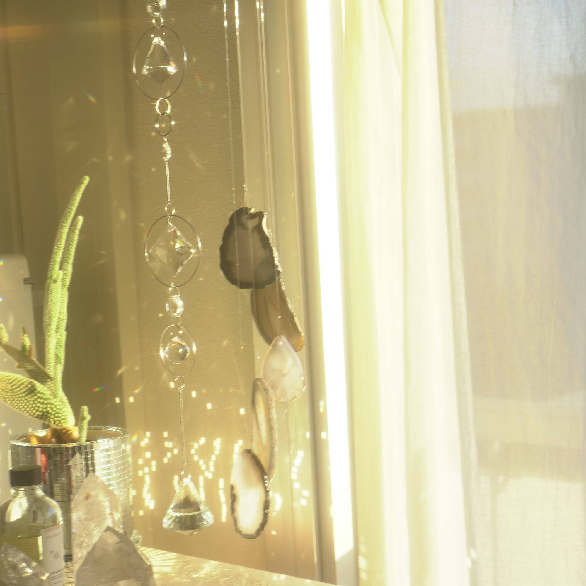 そしてカーテン越しではなく直射日光を当てた際のサンキャッチャーとしてのチャイムも、ピカピカとした美しい光をお部屋の中に運んでくれます。