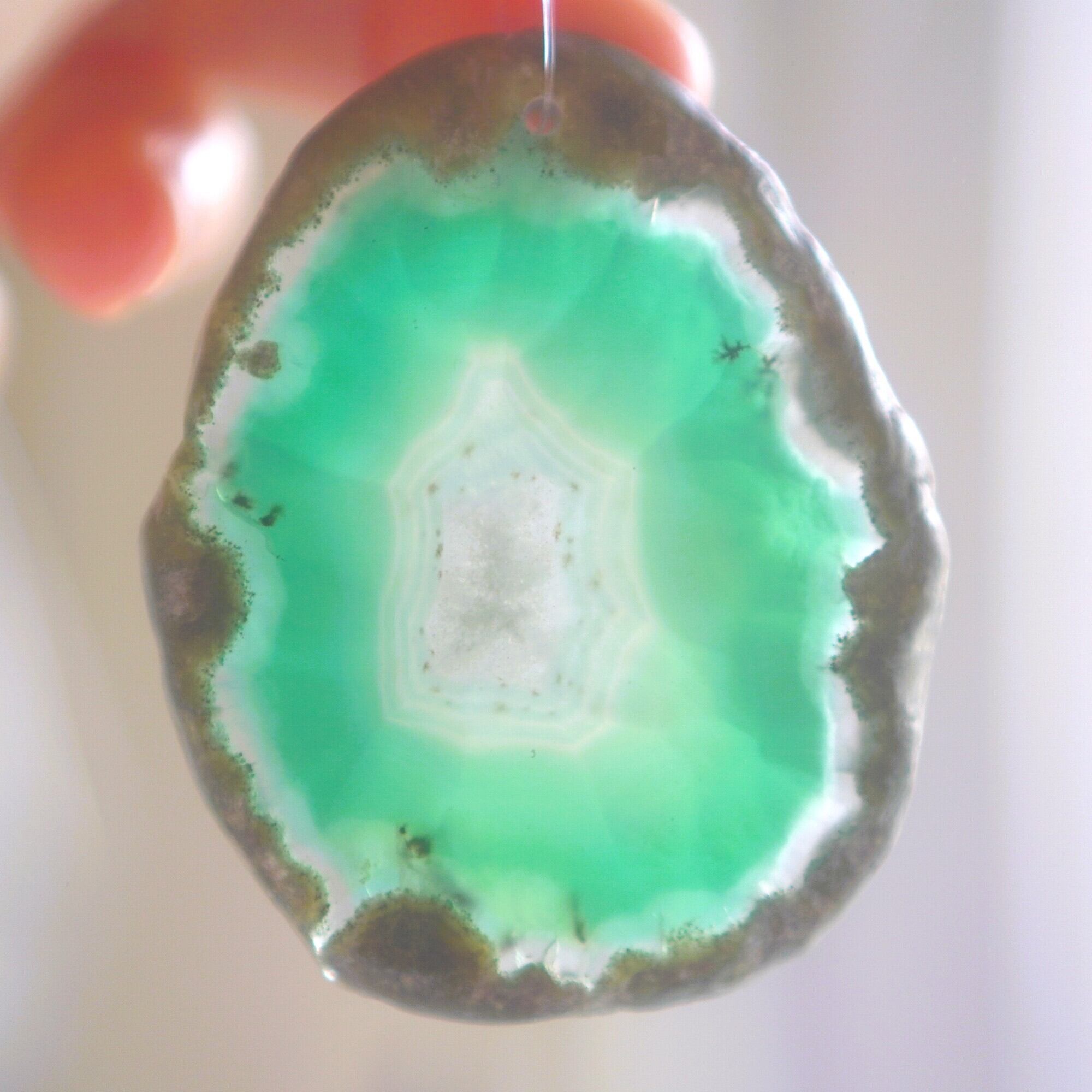 ✧染色の石なので耐光性(光による経年でのカラー変化の耐性)に優れているわけではなくベランダなど一日の中で長時間強い日光に当たるような場所に飾られるのはおすすめしないのですが、陽光に透かした時にだけ真価を発揮する美しさがありますので、是非、時折翳したりして光と一緒にお楽しみいただけたらと思います。特に濃い鮮やかな色など、色変化が気になられる場合は、日光のあまり当たらない場所に飾ってくださいね✧