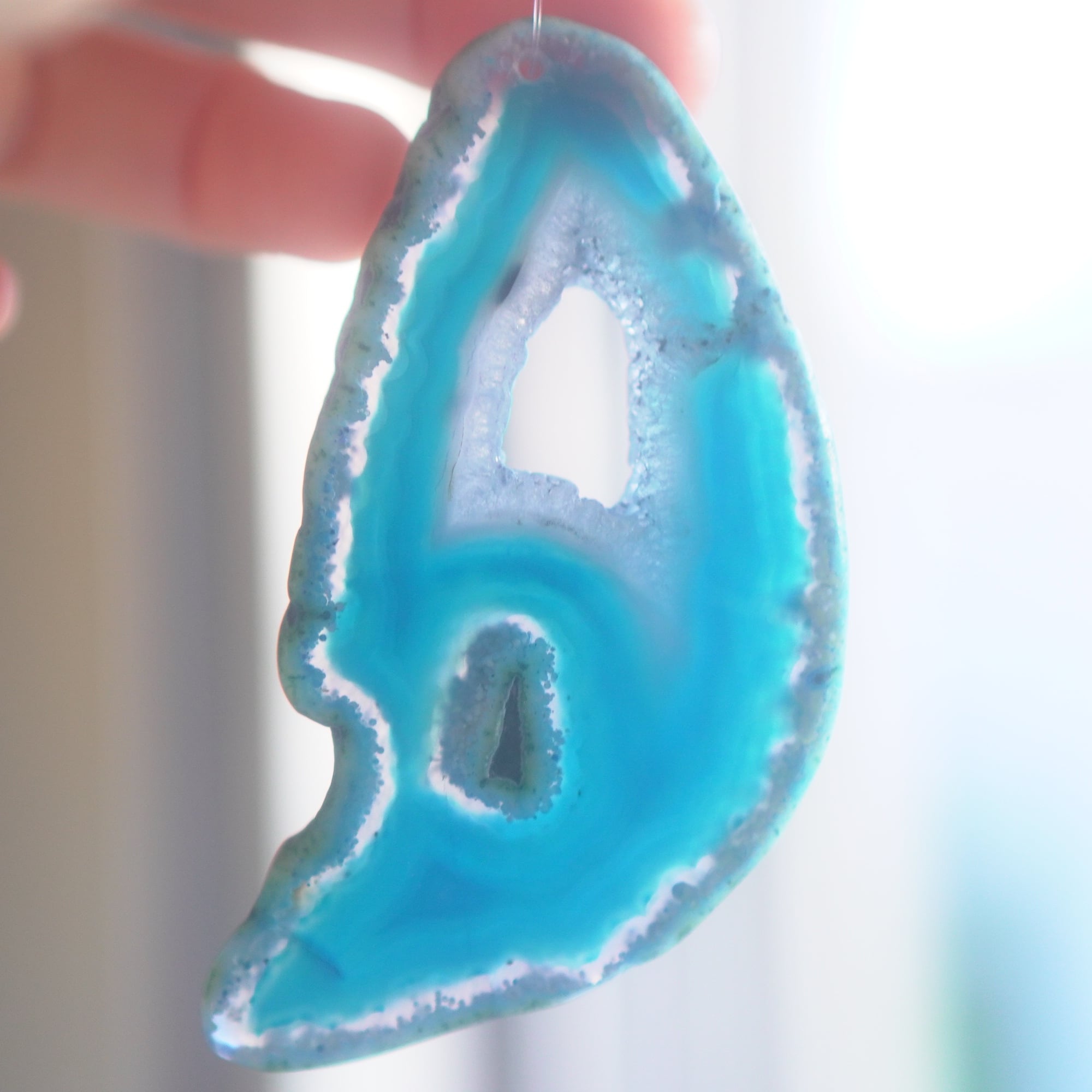 ✧染色の石なので耐光性(光による経年でのカラー変化の耐性)に優れているわけではなくベランダなど一日の中で長時間強い日光に当たるような場所に飾られるのはおすすめしないのですが、陽光に透かした時にだけ真価を発揮する美しさがありますので、是非、時折翳したりして光と一緒にお楽しみいただけたらと思います。特に濃い鮮やかな色など、色変化が気になられる場合は、日光のあまり当たらない場所に飾ってくださいね✧