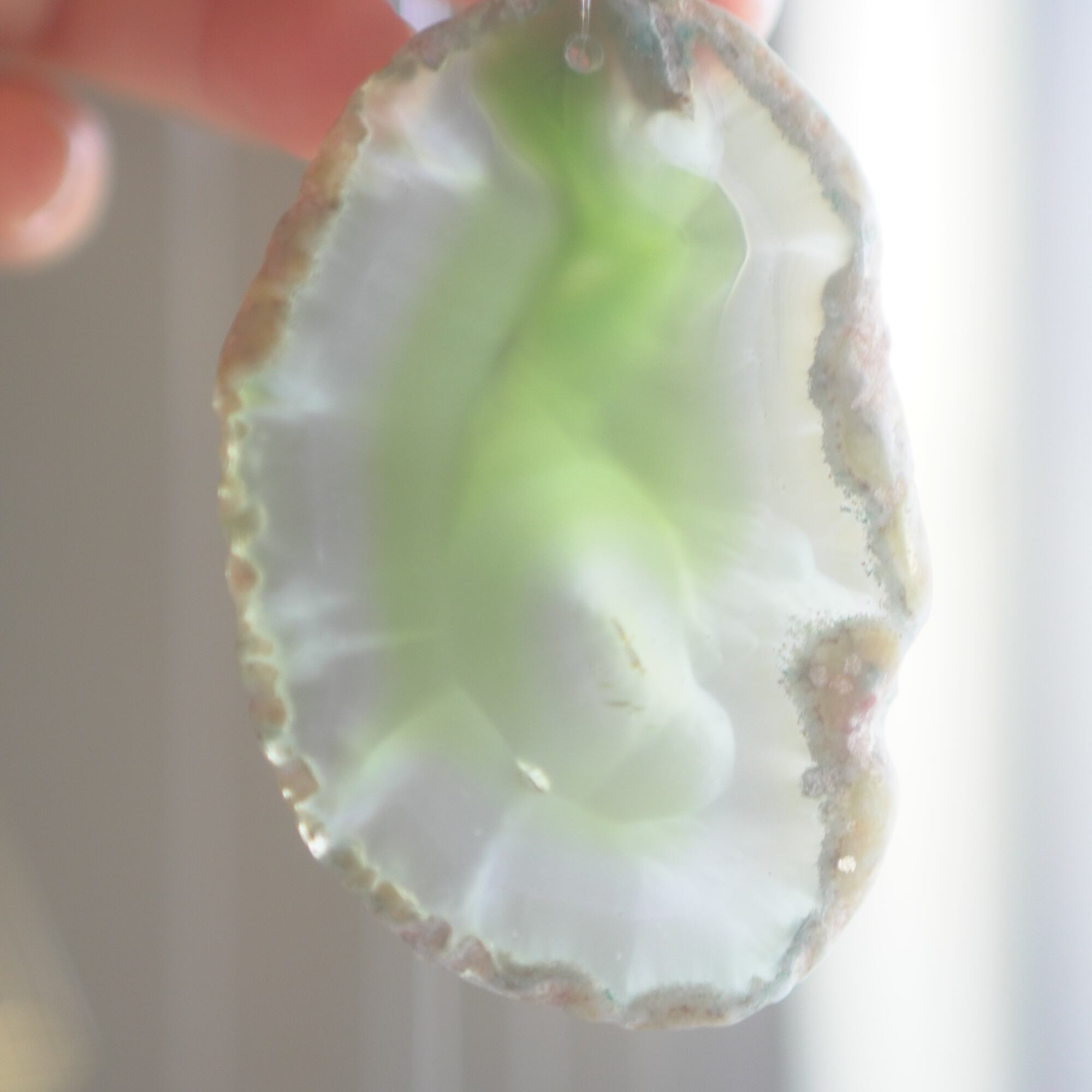 ✧染色の石なので耐光性(光による経年でのカラー変化の耐性)に優れているわけではなくベランダなど一日の中で長時間強い日光に当たるような場所に飾られるのはおすすめしないのですが、陽光に透かした時にだけ真価を発揮する美しさがありますので、是非、時折翳したりして光と一緒にお楽しみいただけたらと思います。特に濃い鮮やかな色など、色変化が気になられる場合は、日光のあまり当たらない場所に飾ってくださいね✧