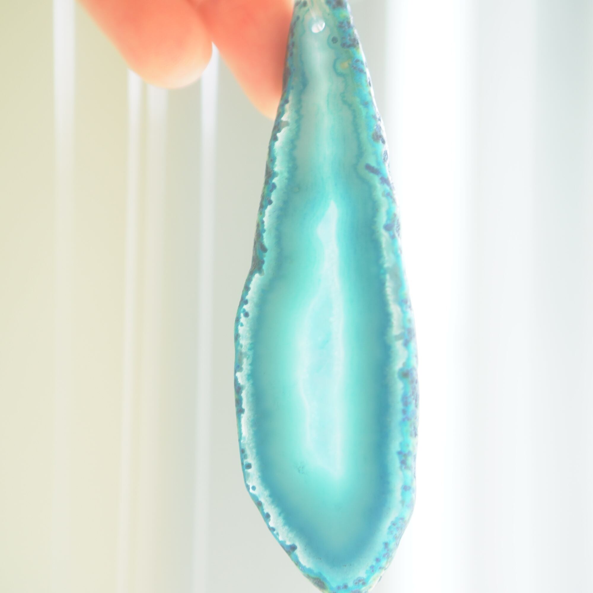 ✧染色の石なので耐光性(光による経年でのカラー変化の耐性)に優れているわけではなくベランダなど一日の中で長時間強い日光に当たるような場所に飾られるのはおすすめしないのですが、陽光に透かした時にだけ真価を発揮する美しさがありますので、是非、時折翳したりして光と一緒にお楽しみいただけたらと思います。特に濃い鮮やかな色など、色変化が気になられる場合は、日光のあまり当たらない場所に飾ってくださいね✧