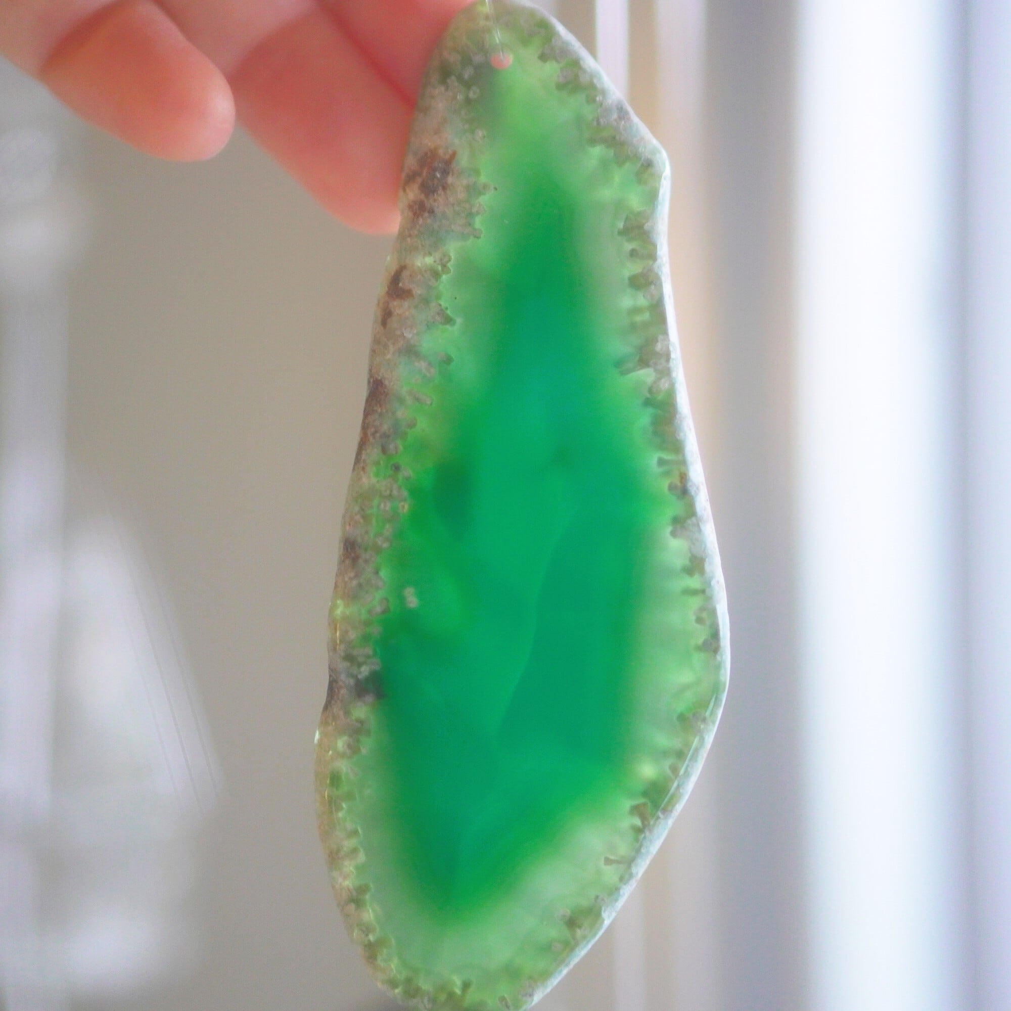 ✧染色の石なので耐光性(光による経年でのカラー変化の耐性)に優れているわけではなくベランダなど一日の中で長時間強い日光に当たるような場所に飾られるのはおすすめしないのですが、陽光に透かした時にだけ真価を発揮する美しさがありますので、是非、時折翳したりして光と一緒にお楽しみいただけたらと思います。特に濃い鮮やかな色など、色変化が気になられる場合は、日光のあまり当たらない場所に飾ってくださいね✧