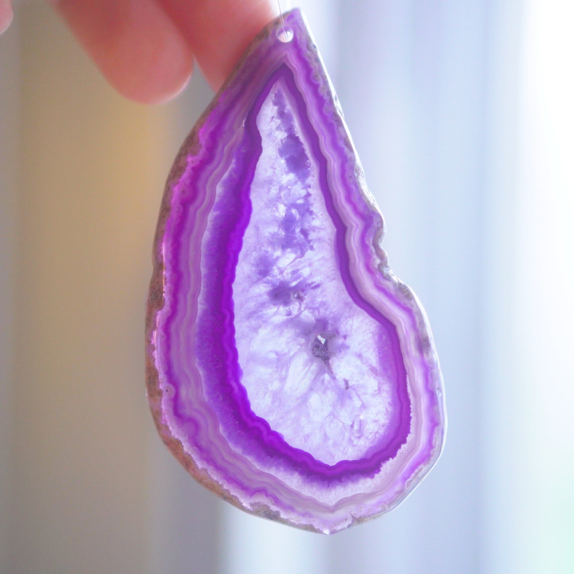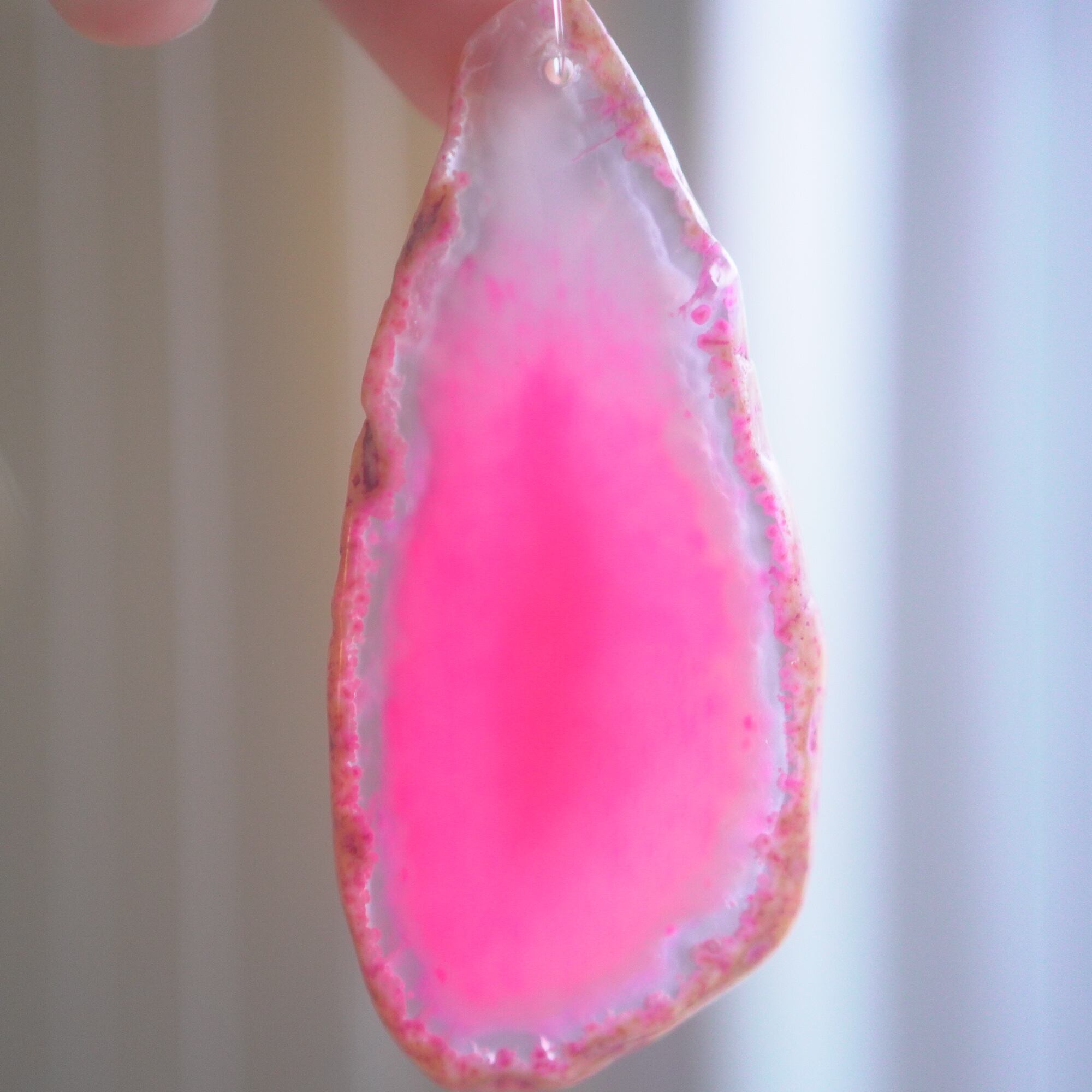 ✧染色の石なので耐光性(光による経年でのカラー変化の耐性)に優れているわけではなくベランダなど一日の中で長時間強い日光に当たるような場所に飾られるのはおすすめしないのですが、陽光に透かした時にだけ真価を発揮する美しさがありますので、是非、時折翳したりして光と一緒にお楽しみいただけたらと思います。特に濃い鮮やかな色など、色変化が気になられる場合は、日光のあまり当たらない場所に飾ってくださいね✧