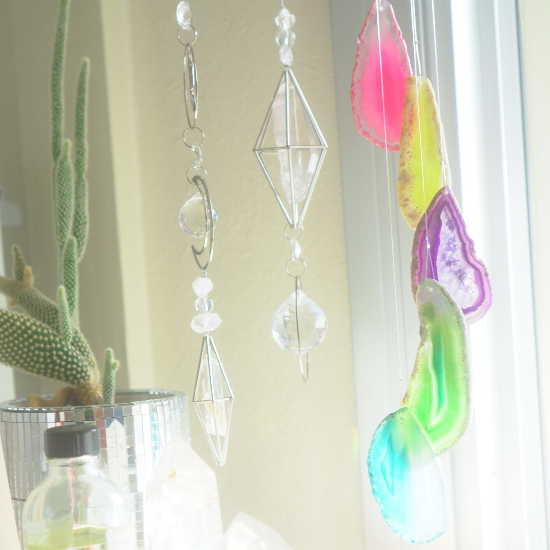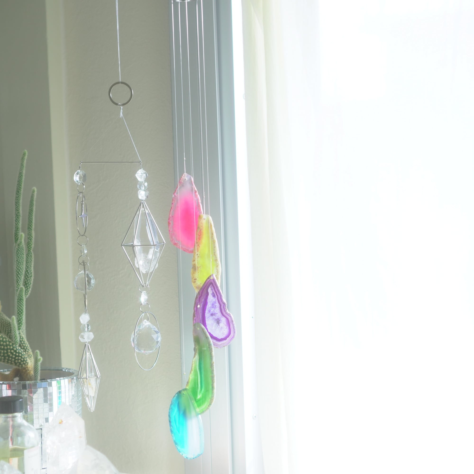 そしてカーテン越しではなく直射日光を当てた際のサンキャッチャーとしてのチャイムも、ピカピカとした美しい光をお部屋の中に運んでくれます。