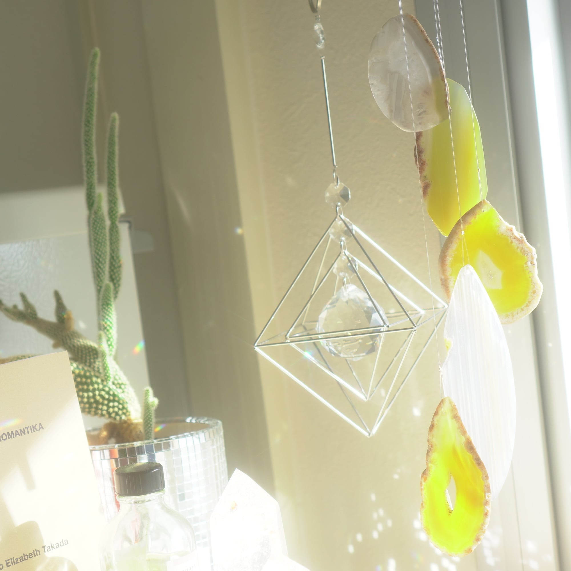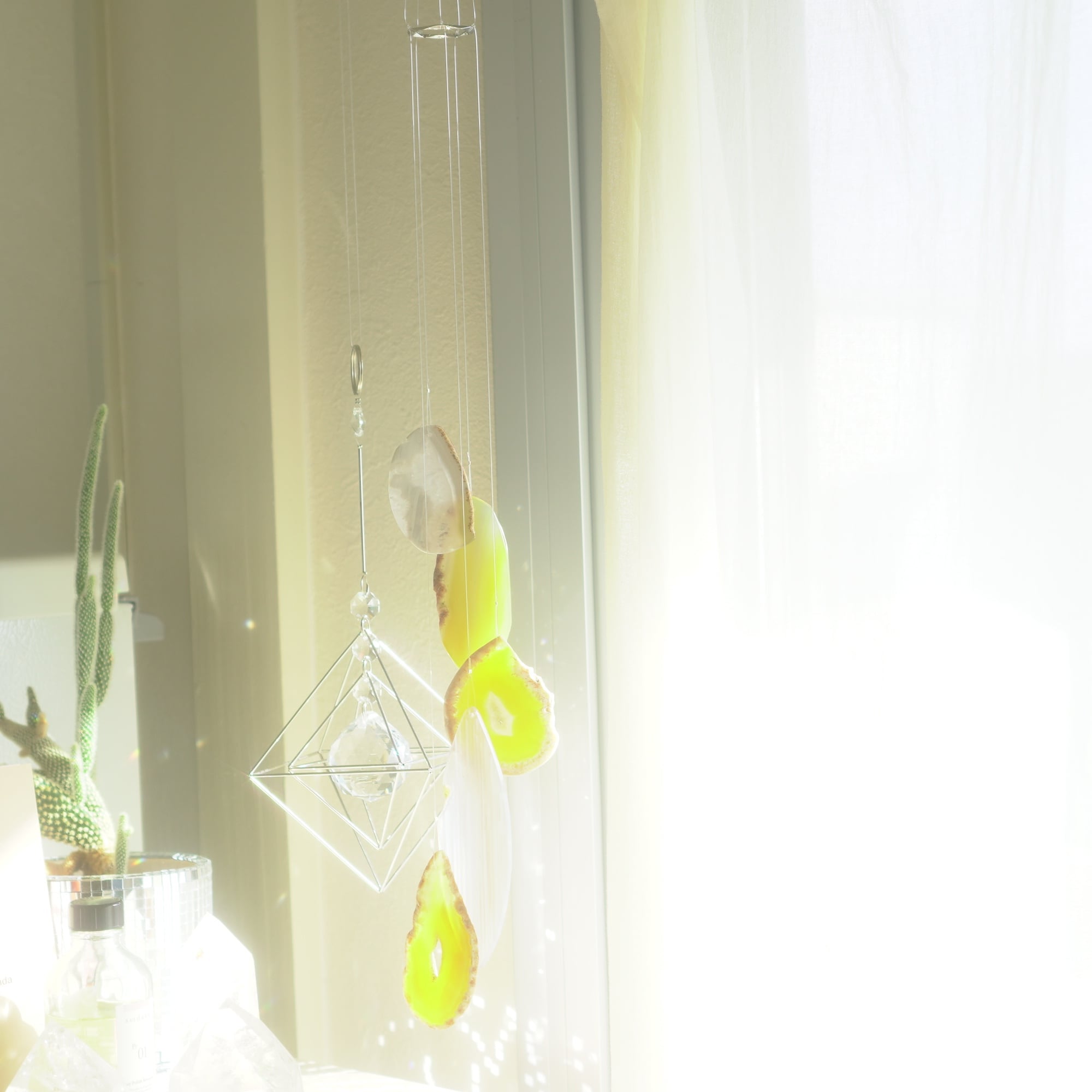 そしてカーテン越しではなく直射日光を当てた際のサンキャッチャーとしてのチャイムも、ピカピカとした美しい光をお部屋の中に運んでくれます。