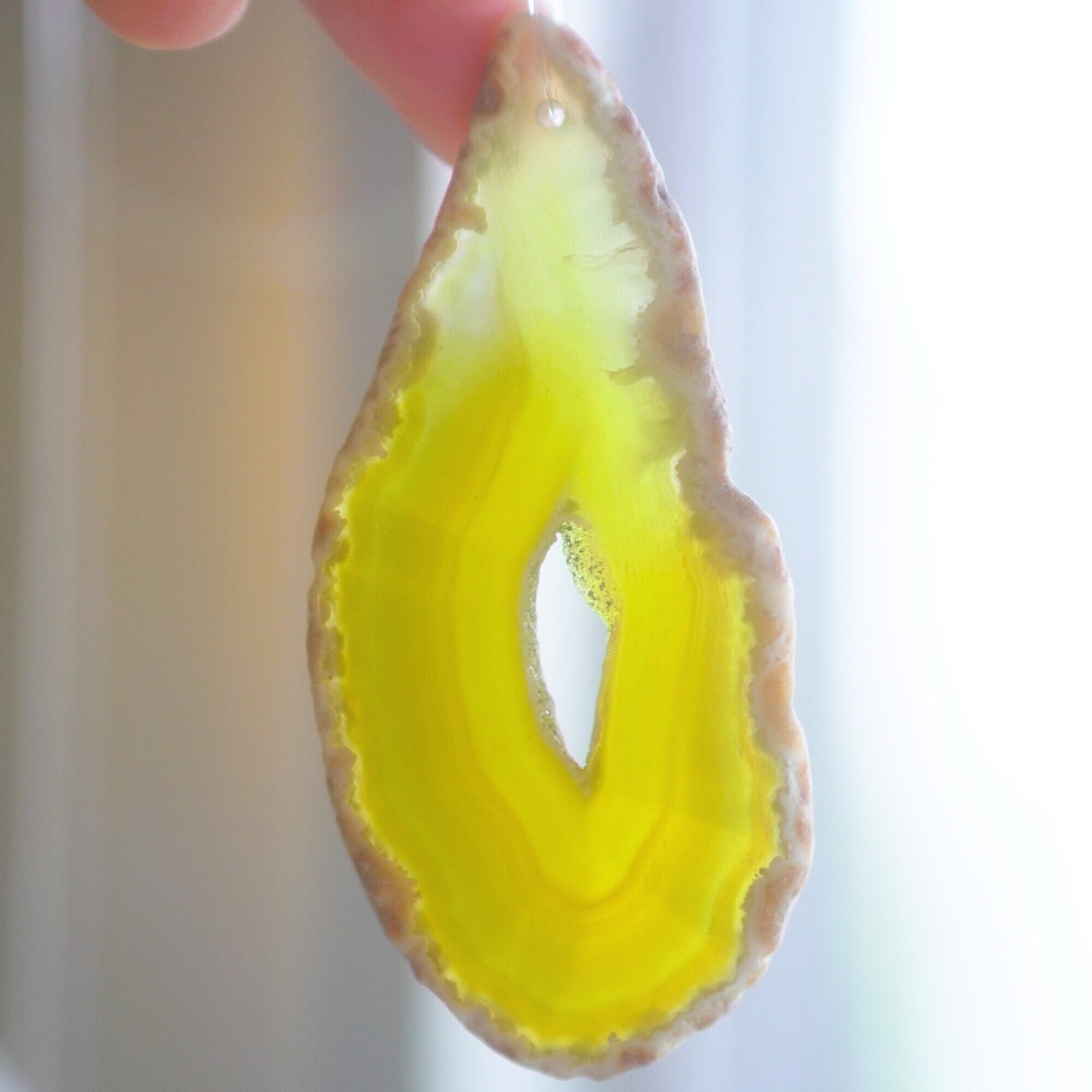 ✧染色の石なので耐光性(光による経年でのカラー変化の耐性)に優れているわけではなくベランダなど一日の中で長時間強い日光に当たるような場所に飾られるのはおすすめしないのですが、陽光に透かした時にだけ真価を発揮する美しさがありますので、是非、時折翳したりして光と一緒にお楽しみいただけたらと思います。特に濃い鮮やかな色など、色変化が気になられる場合は、日光のあまり当たらない場所に飾ってくださいね✧
