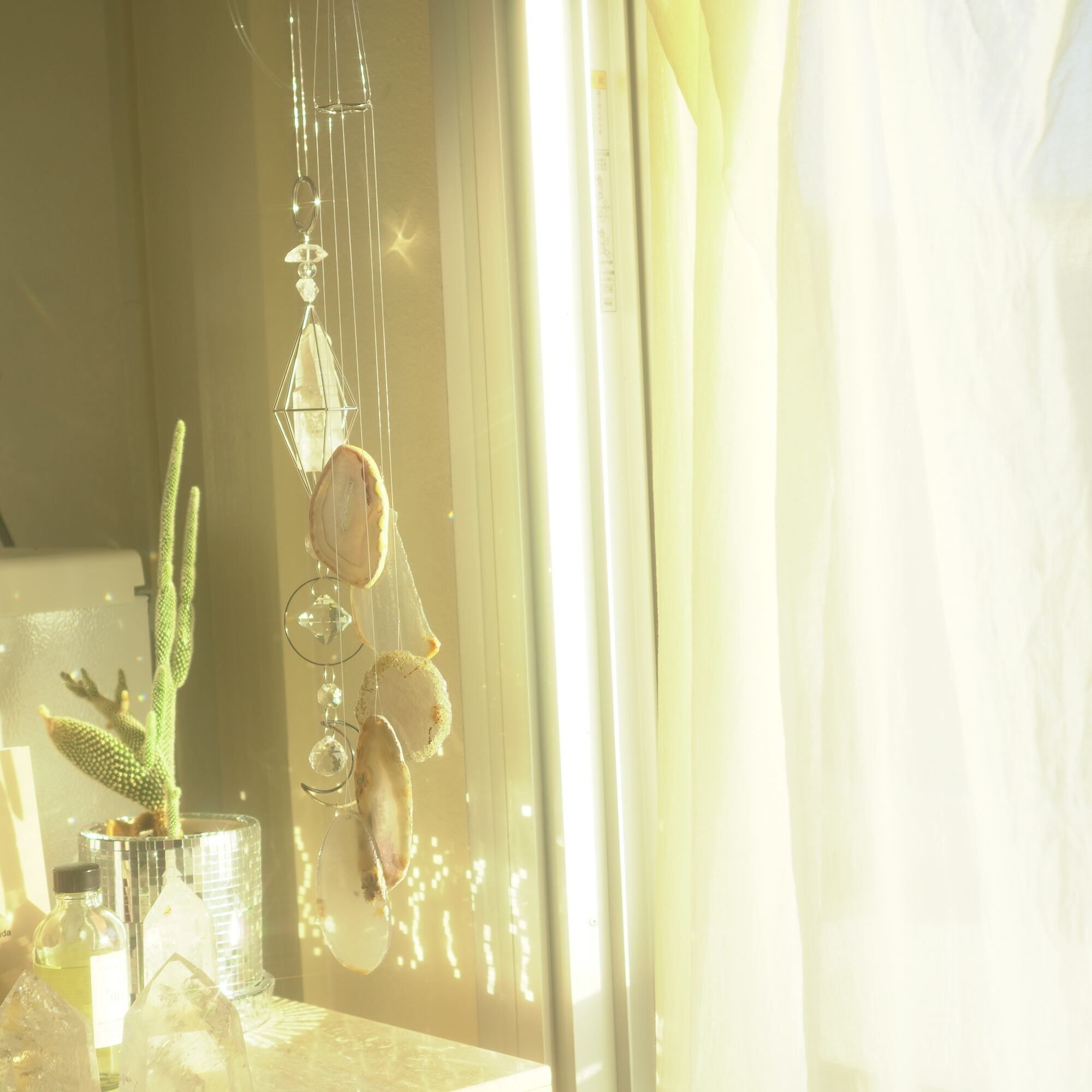 そしてカーテン越しではなく直射日光を当てた際のサンキャッチャーとしてのチャイムも、ピカピカとした美しい光をお部屋の中に運んでくれます。