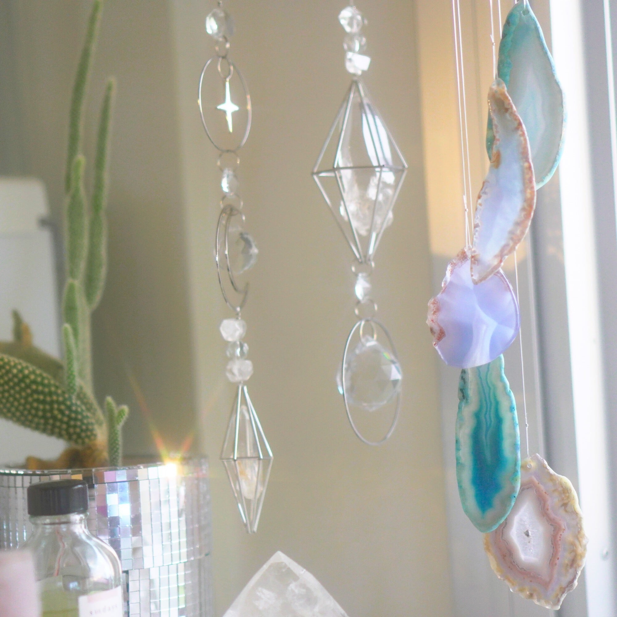 そしてカーテン越しではなく直射日光を当てた際のサンキャッチャーとしてのチャイムも、ピカピカとした美しい光をお部屋の中に運んでくれます。