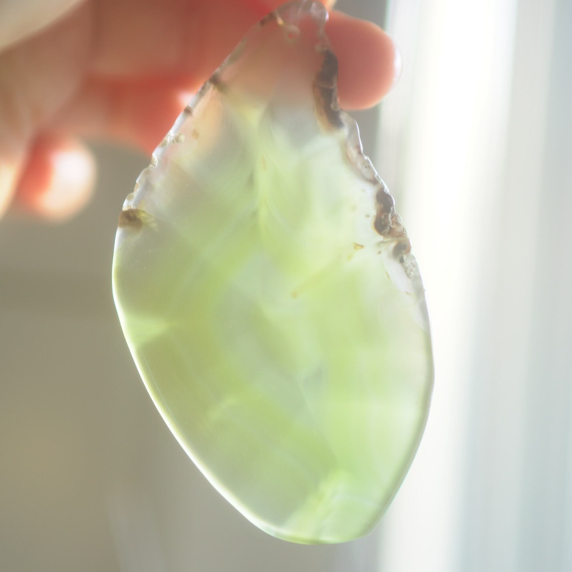 ✧染色の石なので耐光性(光による経年でのカラー変化の耐性)に優れているわけではなくベランダなど一日の中で長時間強い日光に当たるような場所に飾られるのはおすすめしないのですが、陽光に透かした時にだけ真価を発揮する美しさがありますので、是非、時折翳したりして光と一緒にお楽しみいただけたらと思います。特に濃い鮮やかな色など、色変化が気になられる場合は、日光のあまり当たらない場所に飾ってくださいね✧