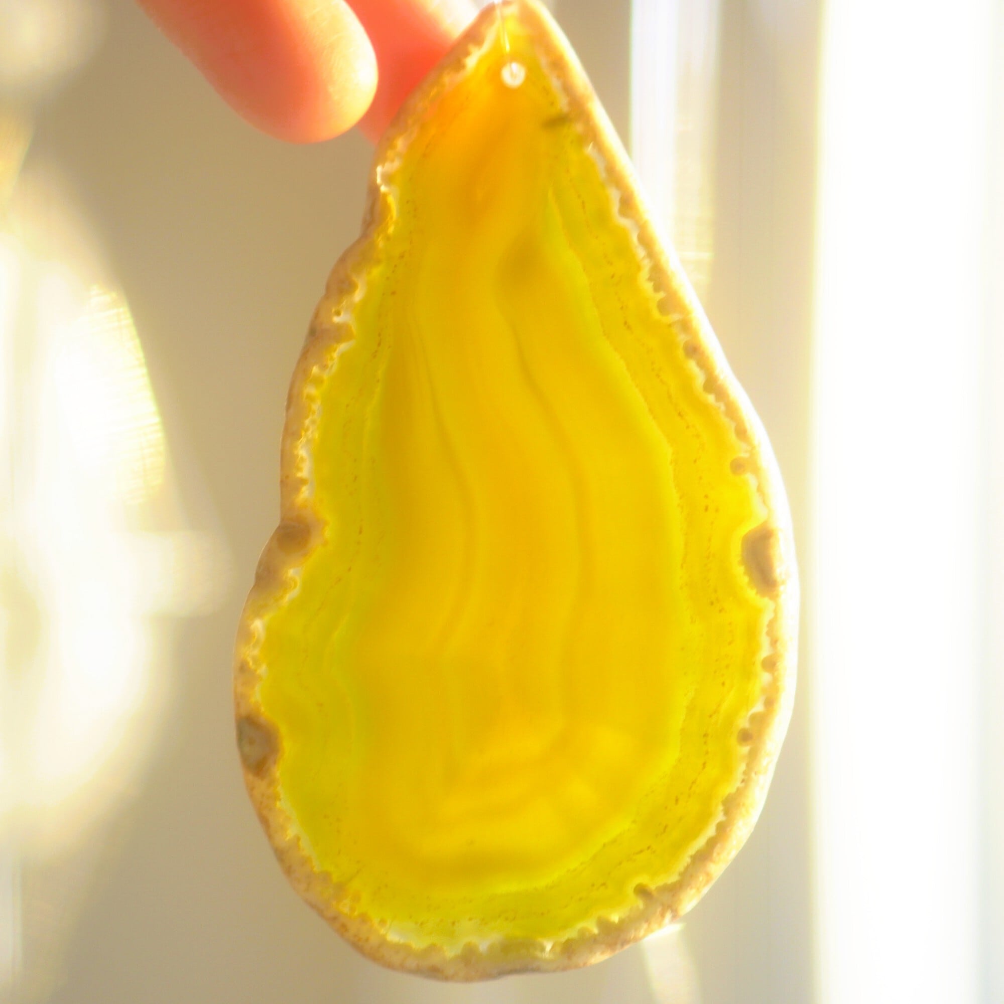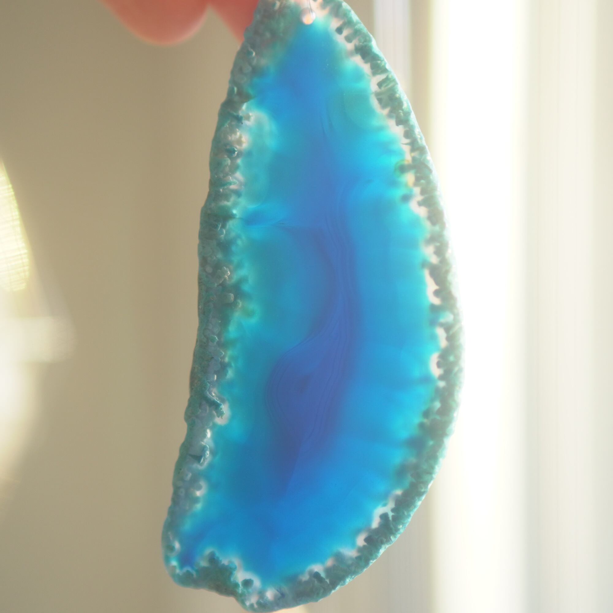 ✧染色の石なので耐光性(光による経年でのカラー変化の耐性)に優れているわけではなくベランダなど一日の中で長時間強い日光に当たるような場所に飾られるのはおすすめしないのですが、陽光に透かした時にだけ真価を発揮する美しさがありますので、是非、時折翳したりして光と一緒にお楽しみいただけたらと思います。特に濃い鮮やかな色など、色変化が気になられる場合は、日光のあまり当たらない場所に飾ってくださいね✧