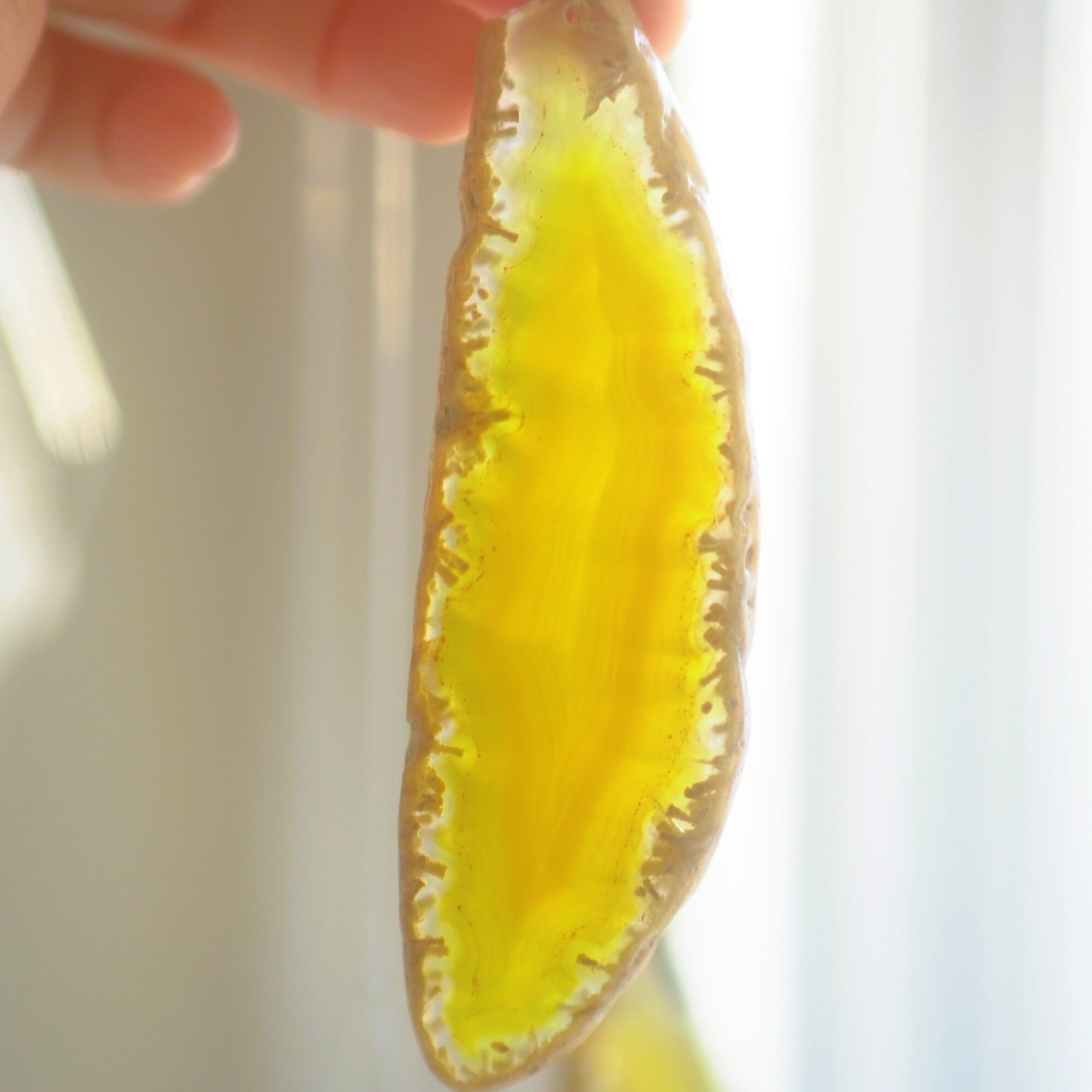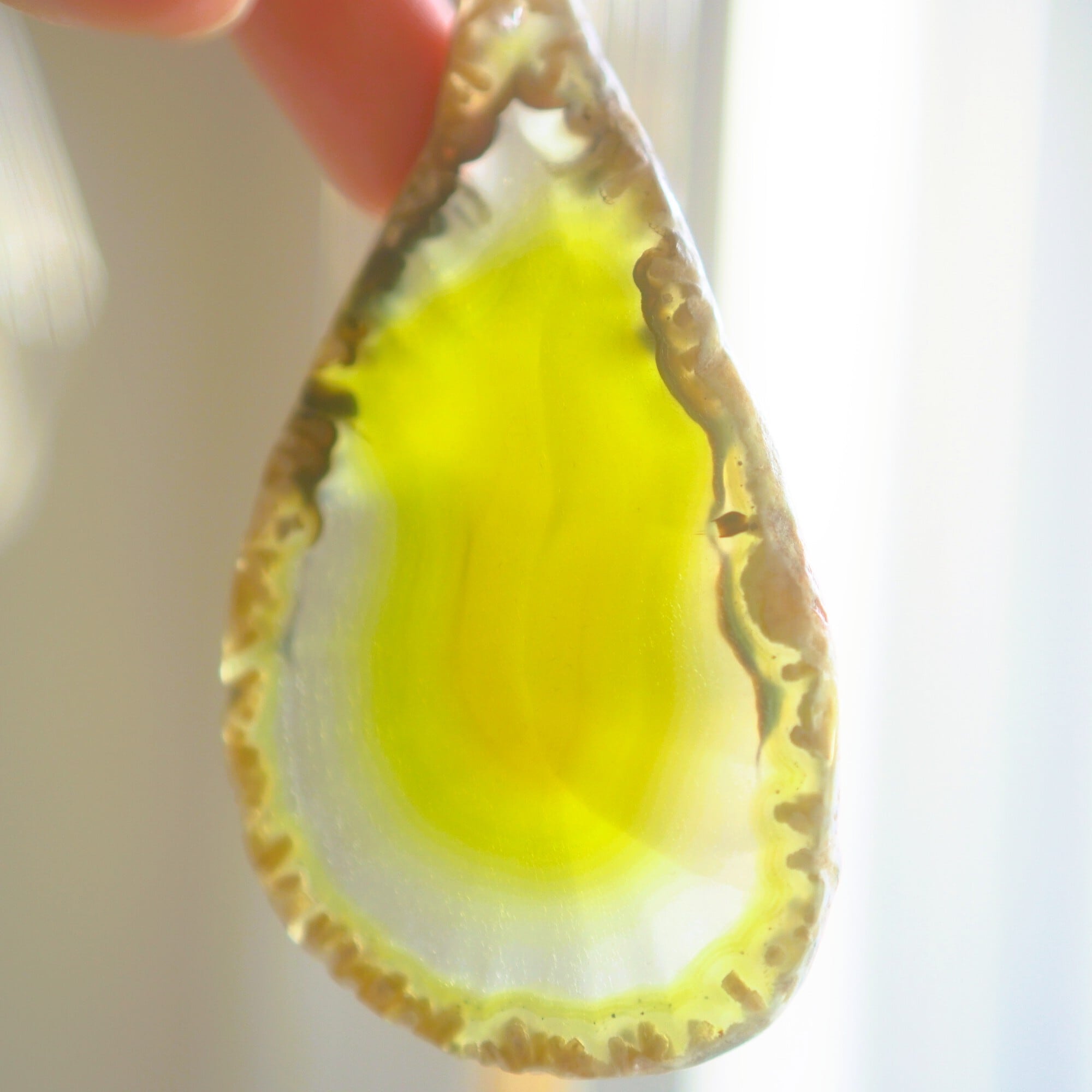 ✧染色の石なので耐光性(光による経年でのカラー変化の耐性)に優れているわけではなくベランダなど一日の中で長時間強い日光に当たるような場所に飾られるのはおすすめしないのですが、陽光に透かした時にだけ真価を発揮する美しさがありますので、是非、時折翳したりして光と一緒にお楽しみいただけたらと思います。特に濃い鮮やかな色など、色変化が気になられる場合は、日光のあまり当たらない場所に飾ってくださいね✧