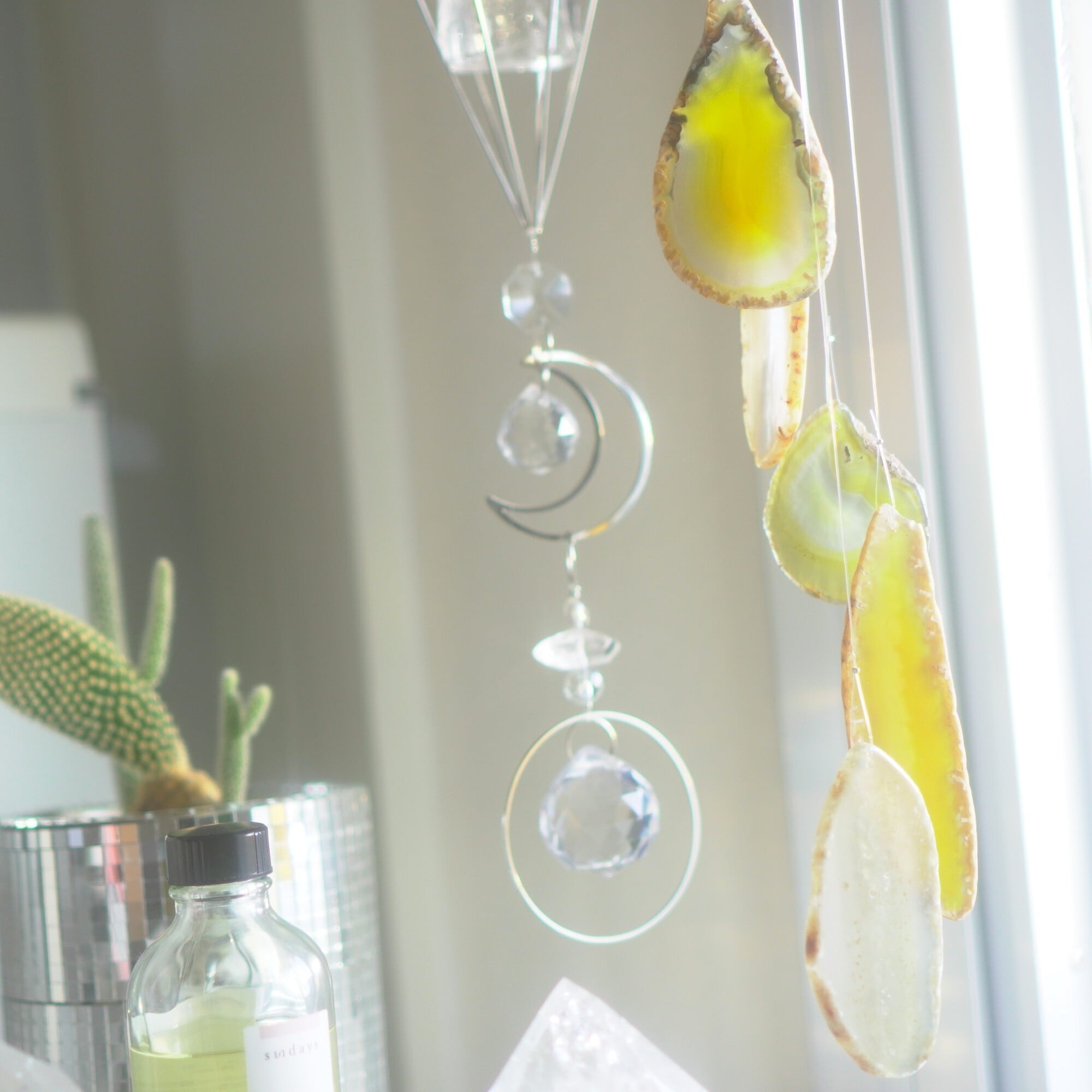 そしてカーテン越しではなく直射日光を当てた際のサンキャッチャーとしてのチャイムも、ピカピカとした美しい光をお部屋の中に運んでくれます。