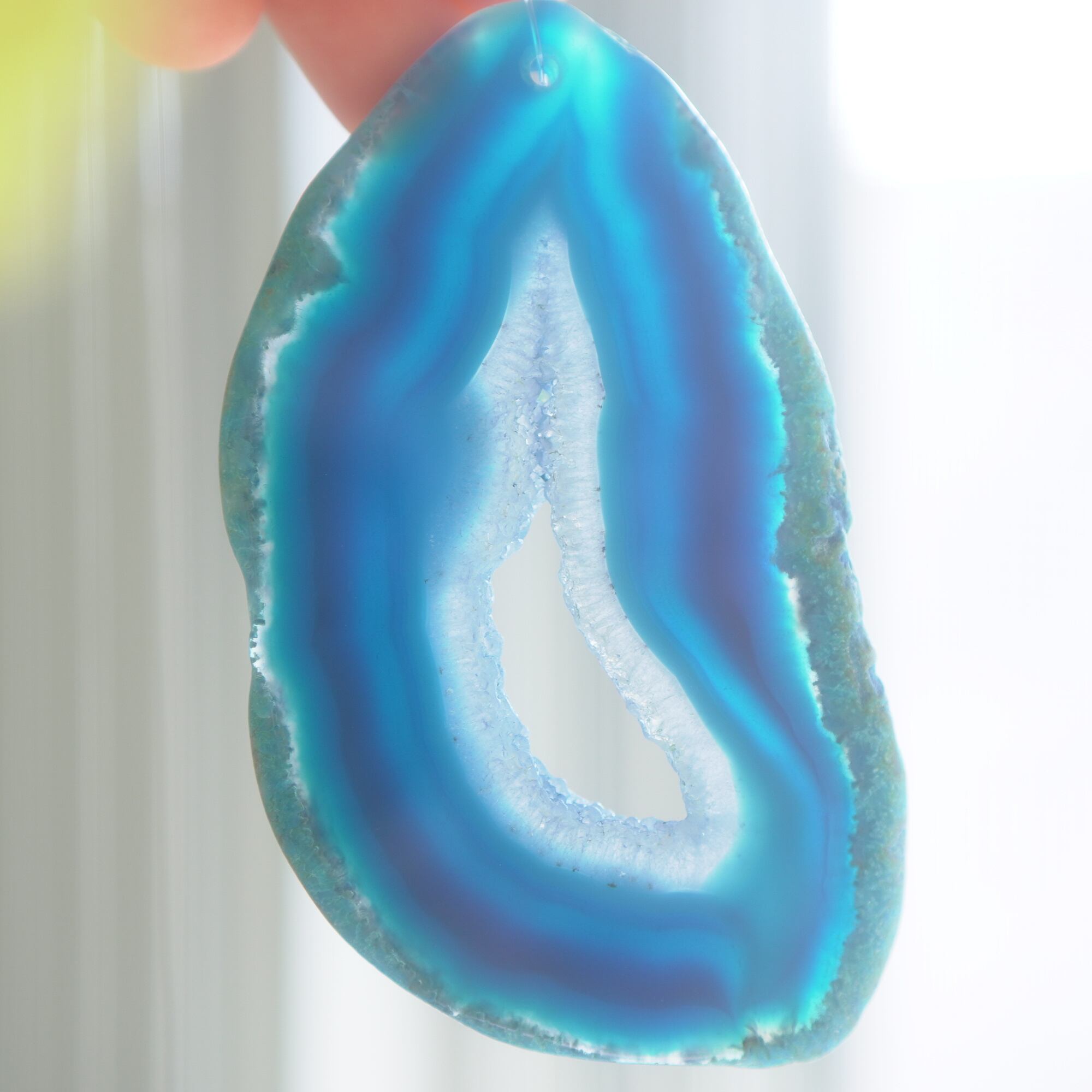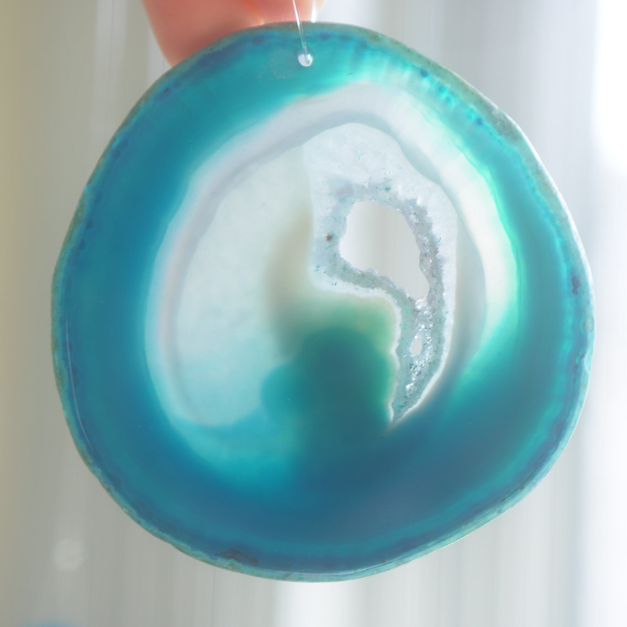 ✧染色の石なので耐光性(光による経年でのカラー変化の耐性)に優れているわけではなくベランダなど一日の中で長時間強い日光に当たるような場所に飾られるのはおすすめしないのですが、陽光に透かした時にだけ真価を発揮する美しさがありますので、是非、時折翳したりして光と一緒にお楽しみいただけたらと思います。特に濃い鮮やかな色など、色変化が気になられる場合は、日光のあまり当たらない場所に飾ってくださいね✧