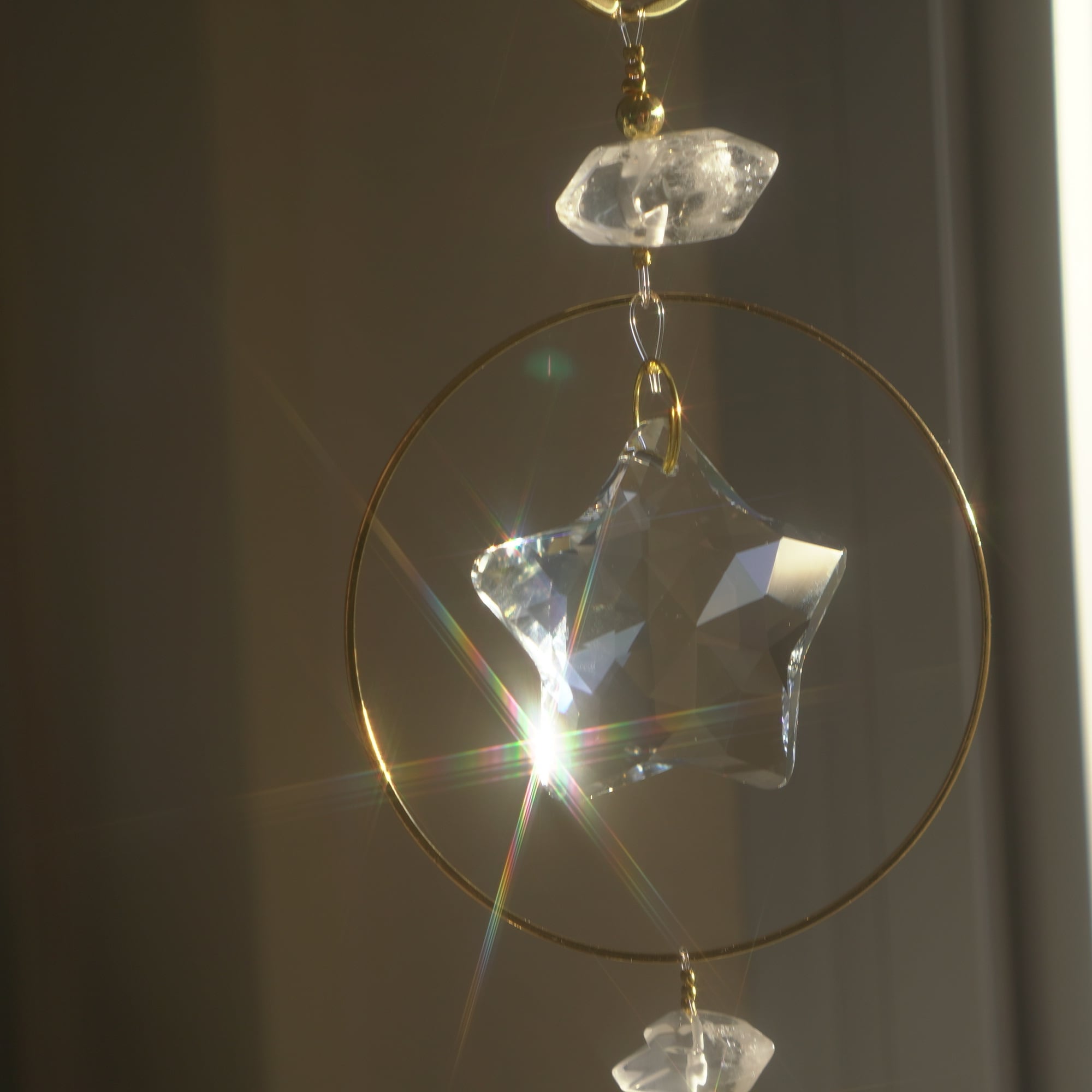星形のサンキャッチャーガラス / 天然水晶mini / 18KGP metal&beads