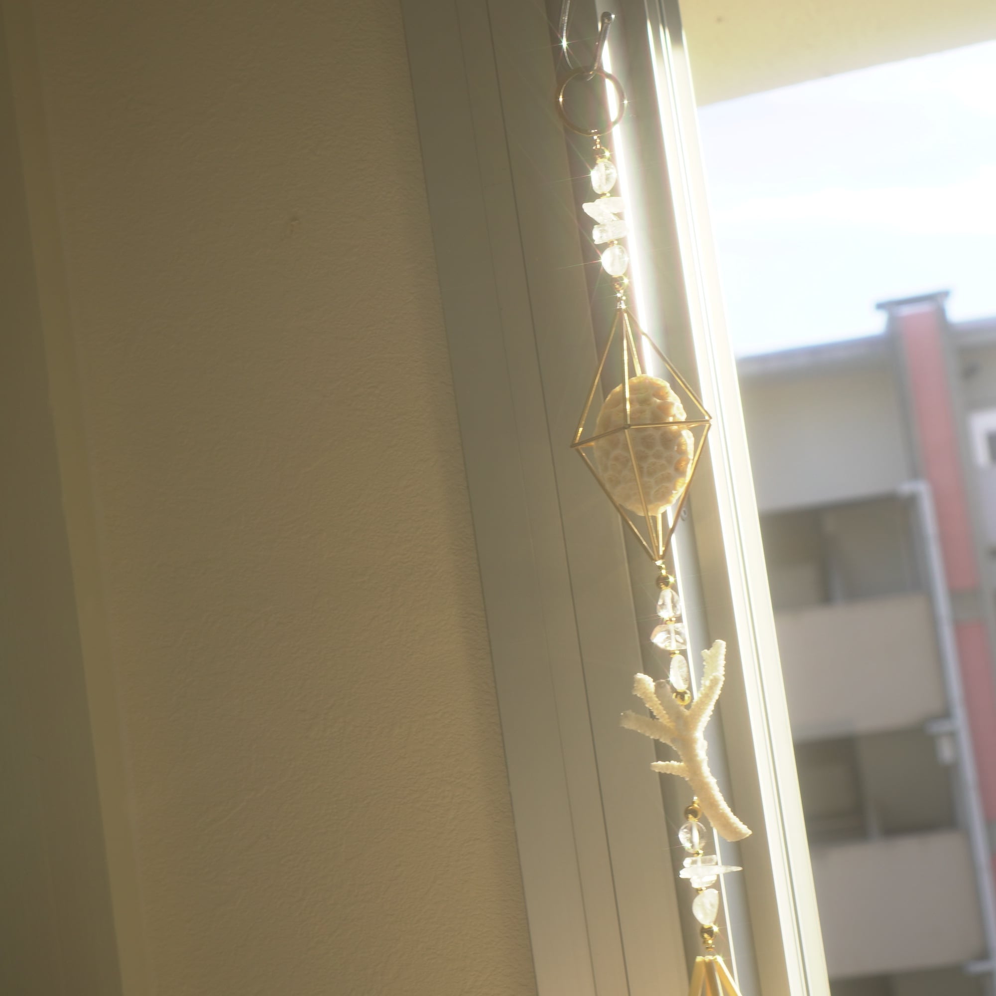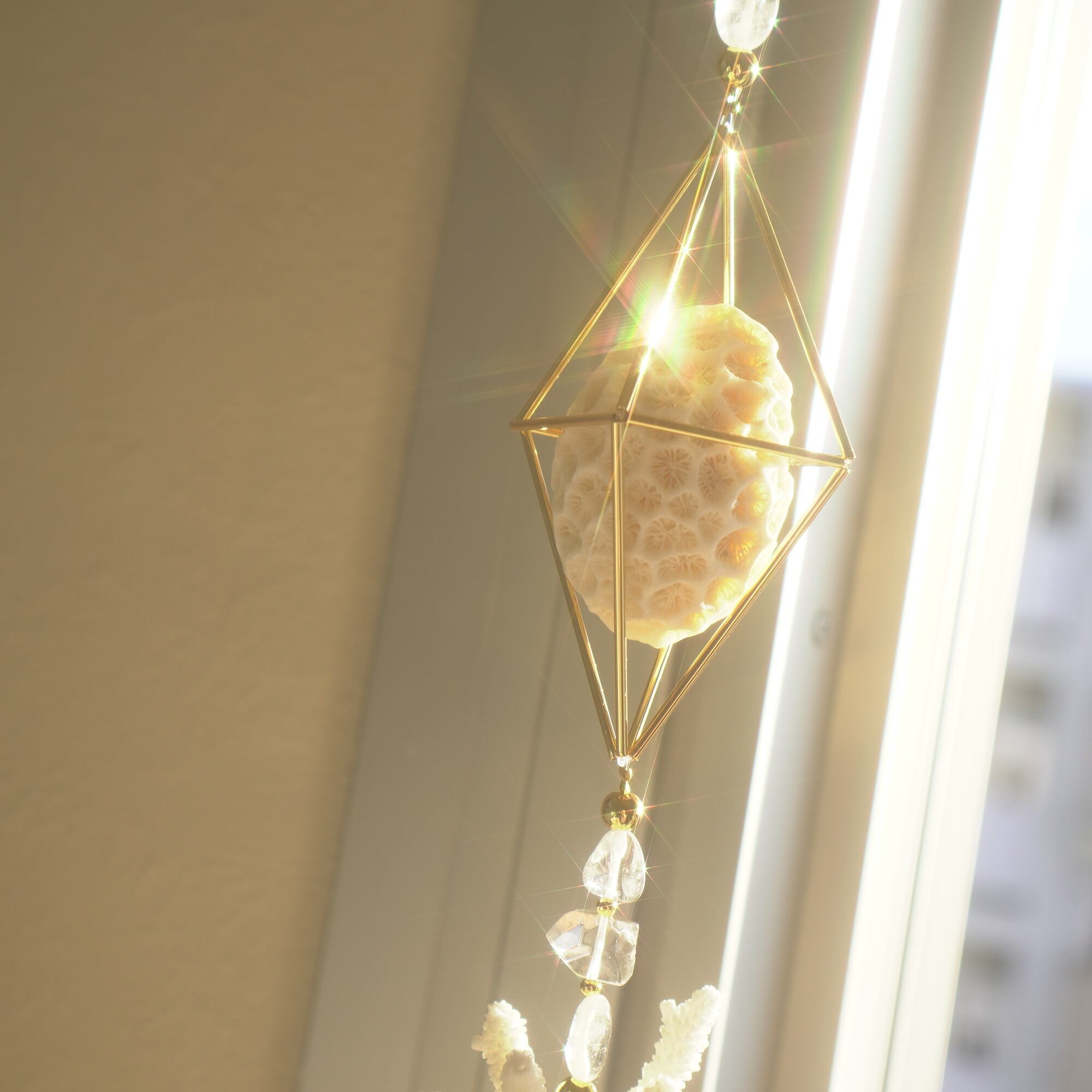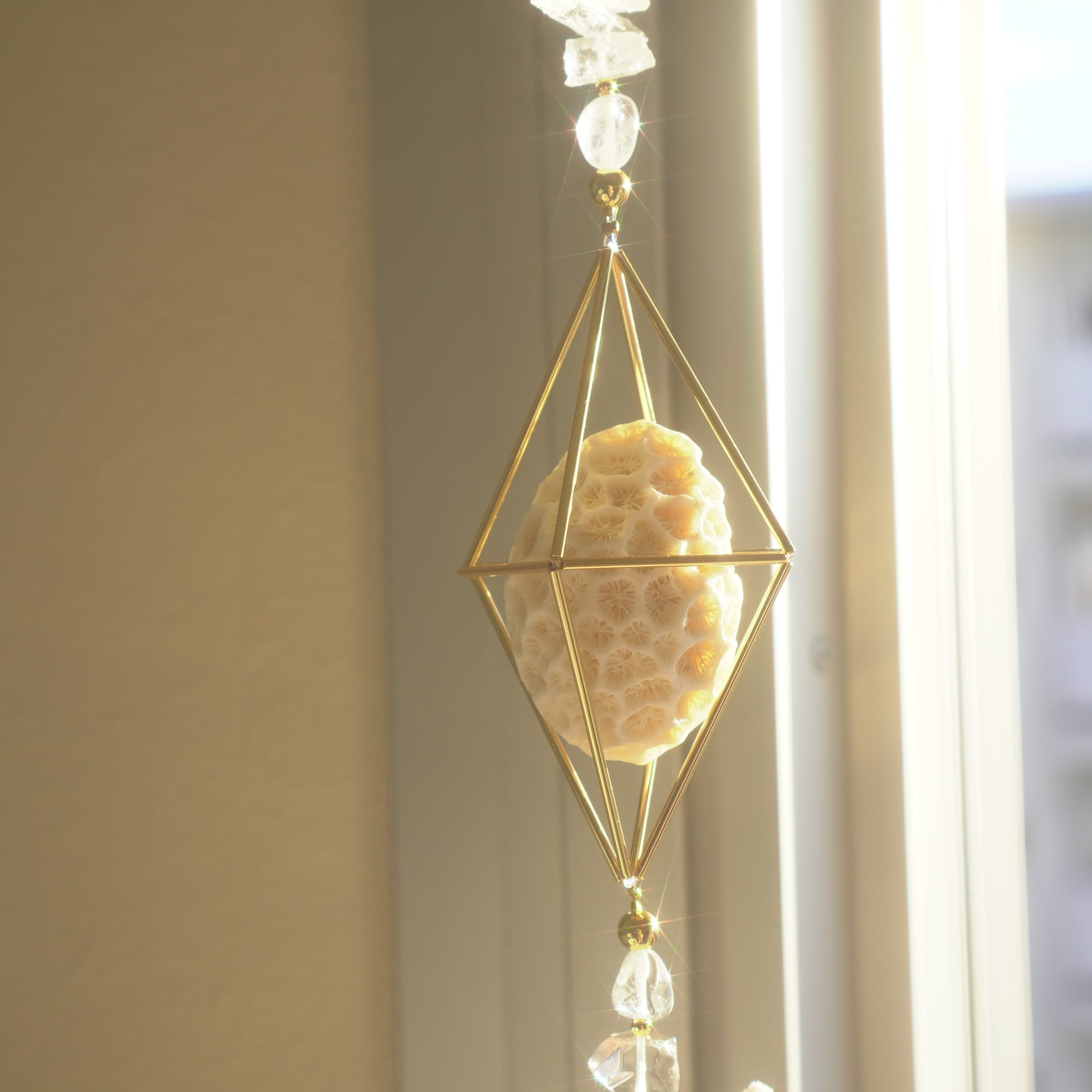 (※軽量の作品ですが、珊瑚やヒンメリ部分がとても繊細な素材となっておりますので、落下の危険性がない場所・小さなお子様や動物の立ち寄らない場所に設置されてください※)
