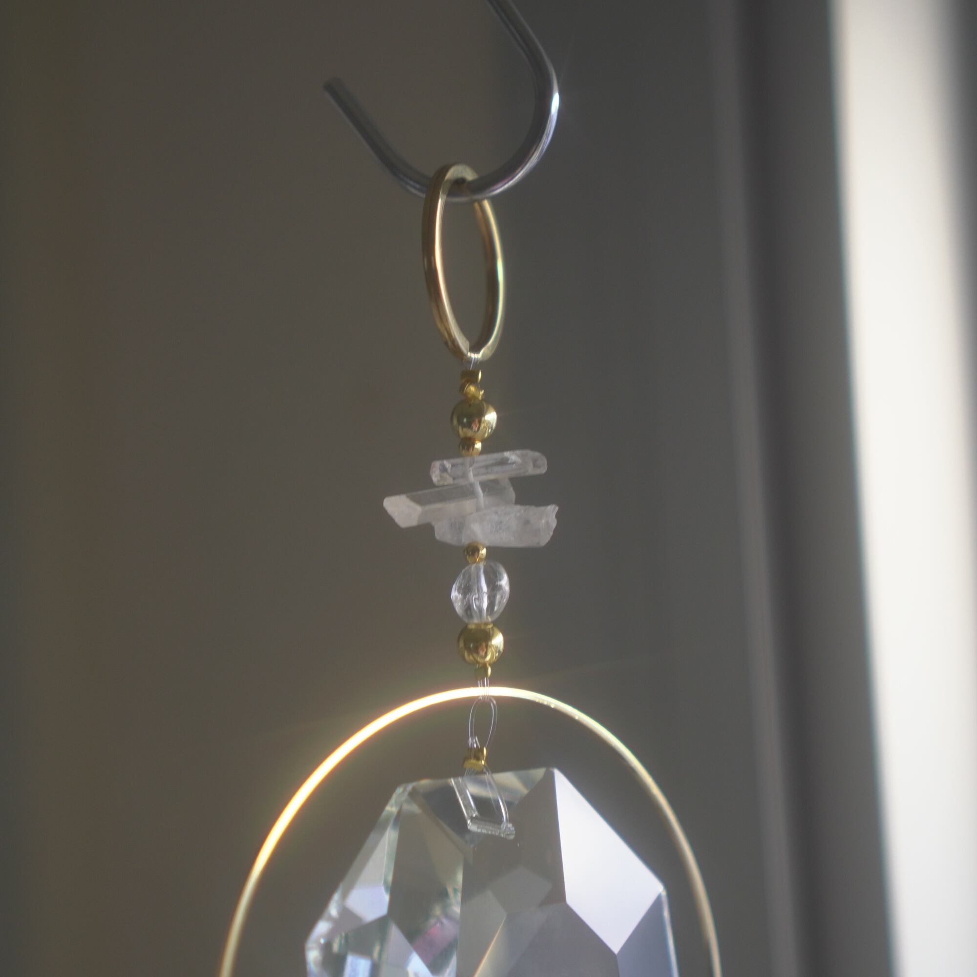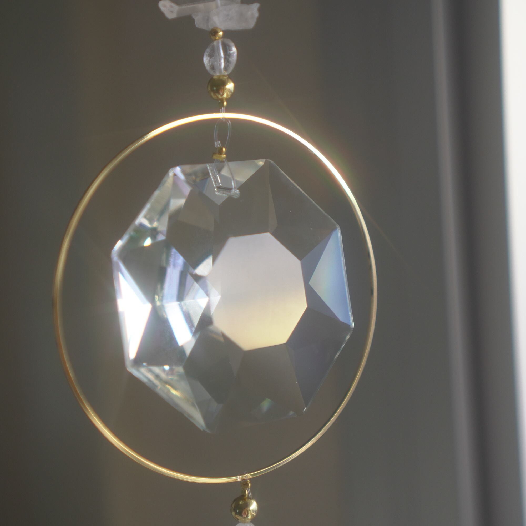八角形のサンキャッチャーガラスLarge / 国産大麦わら / 天然水晶mini / 18KGP metal&beads