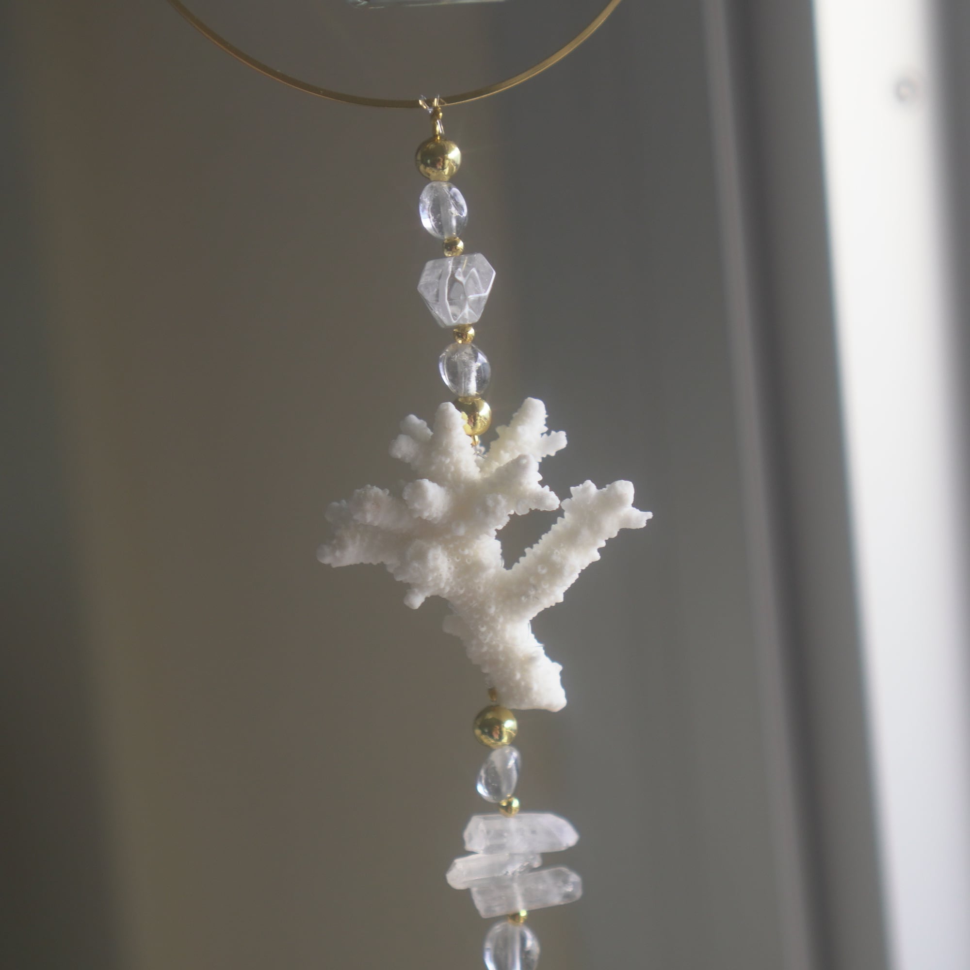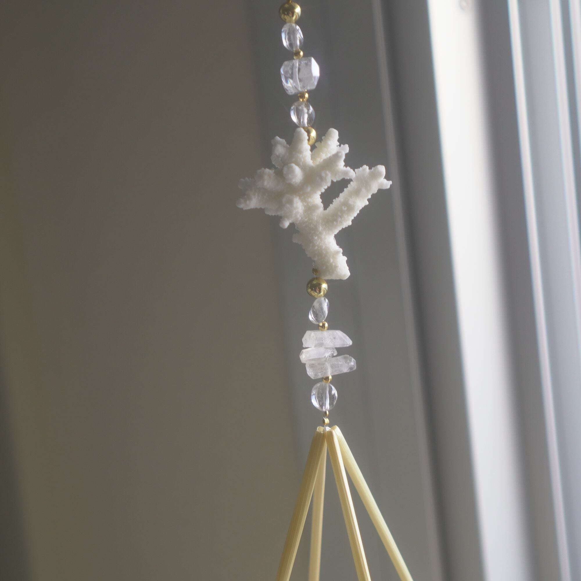 (※軽量の作品ですが、珊瑚やヒンメリ部分がとても繊細な素材となっておりますので、落下の危険性がない場所・小さなお子様や動物の立ち寄らない場所に設置されてください※)