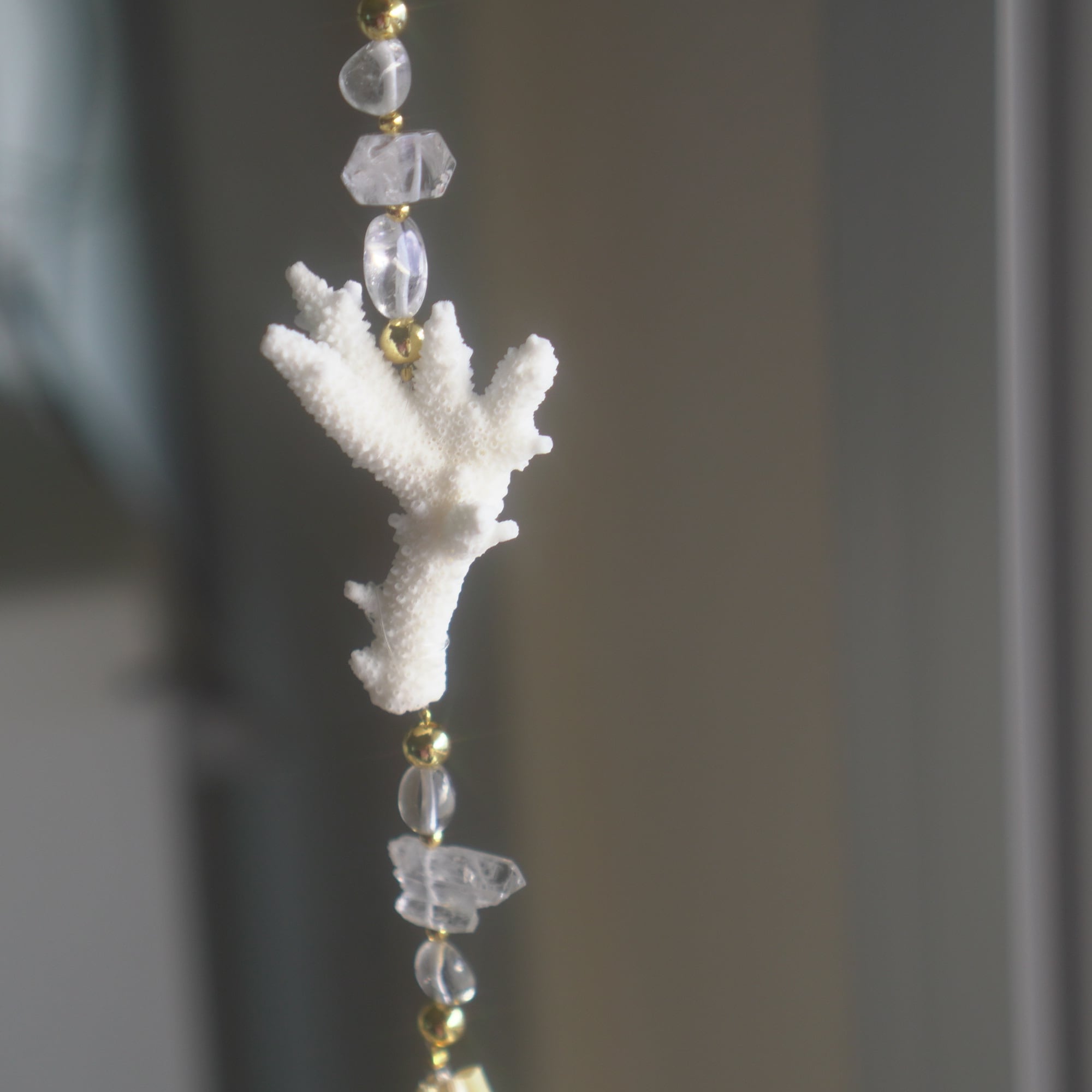 (※軽量の作品ですが、珊瑚やヒンメリ部分がとても繊細な素材となっておりますので、落下の危険性がない場所・小さなお子様や動物の立ち寄らない場所に設置されてください※)