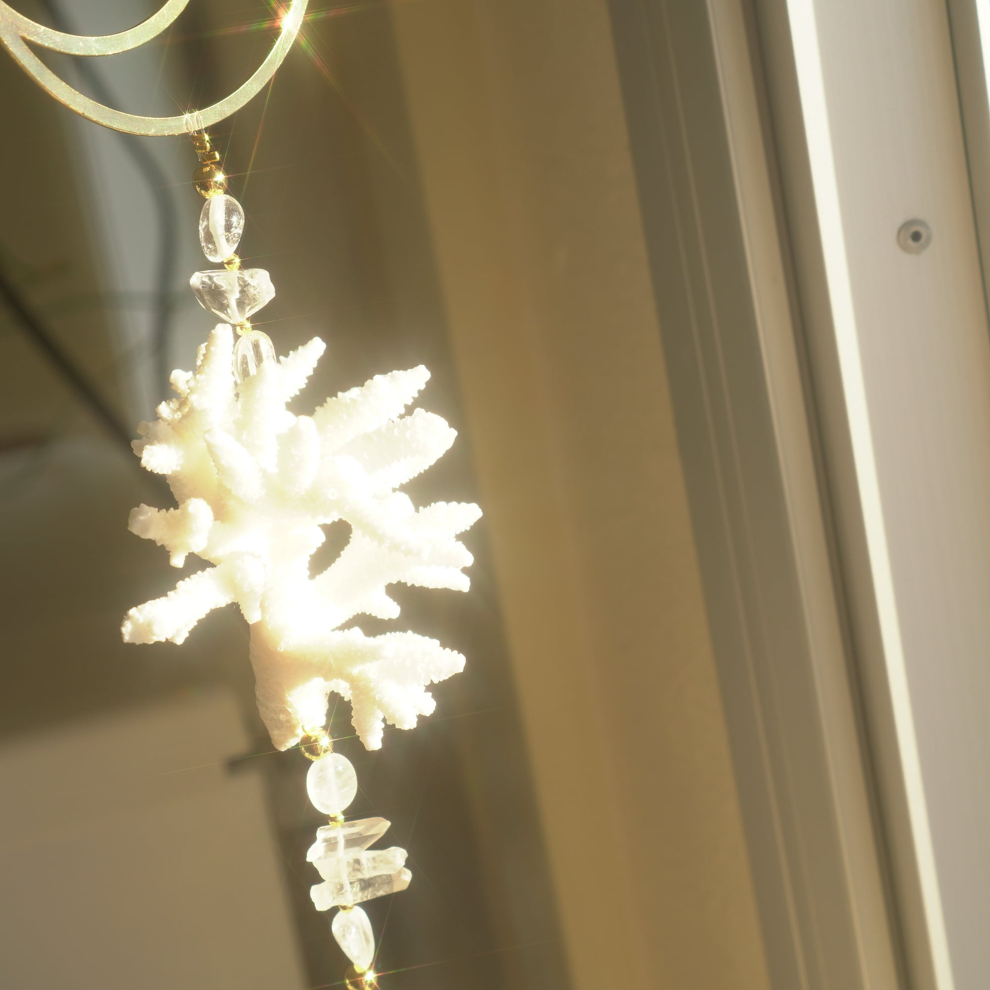 (※軽量の作品ですが、珊瑚やヒンメリ部分がとても繊細な素材となっておりますので、落下の危険性がない場所・小さなお子様や動物の立ち寄らない場所に設置されてください※)
