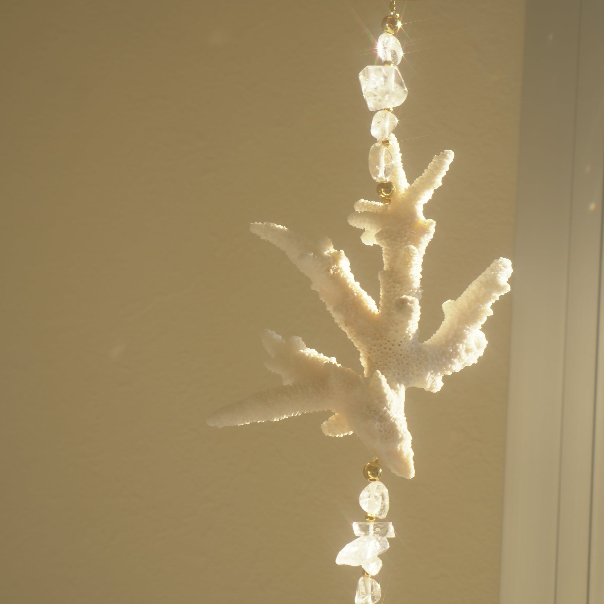 (※軽量の作品ですが、珊瑚やヒンメリ部分がとても繊細な素材となっておりますので、落下の危険性がない場所・小さなお子様や動物の立ち寄らない場所に設置されてください※)