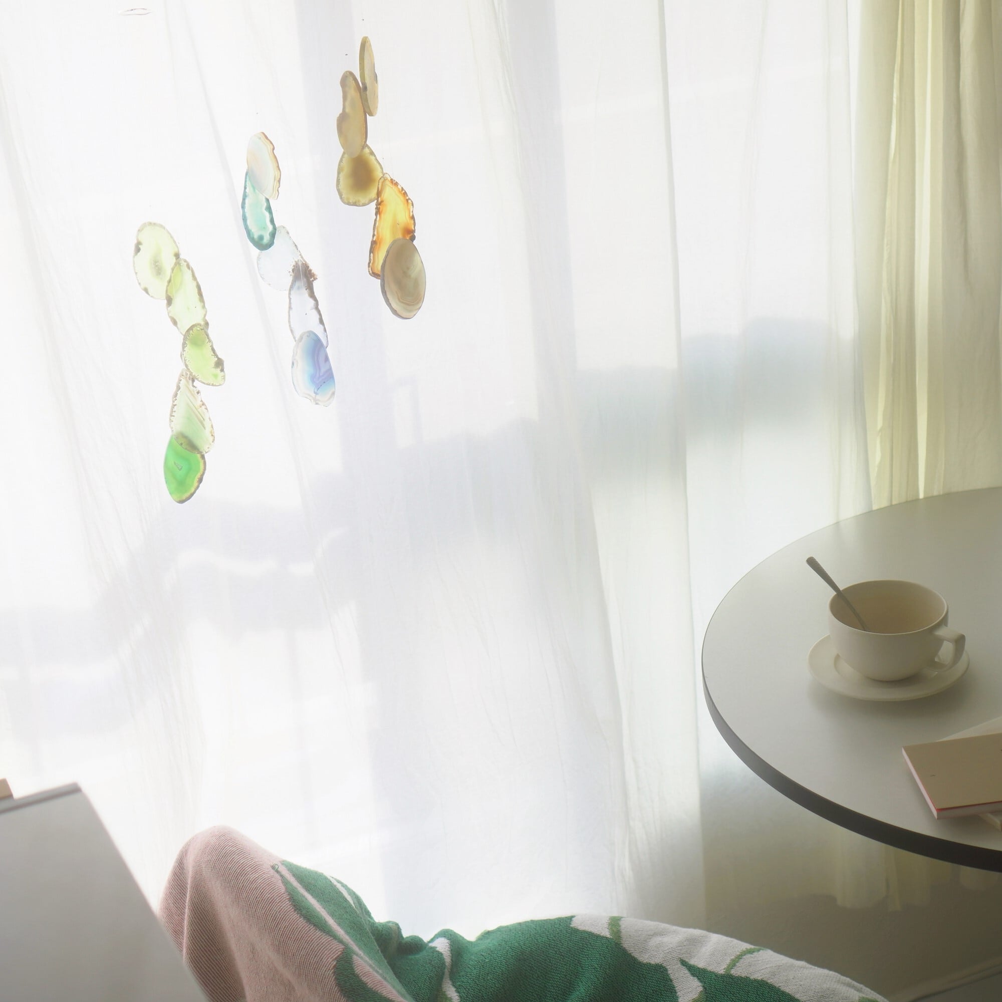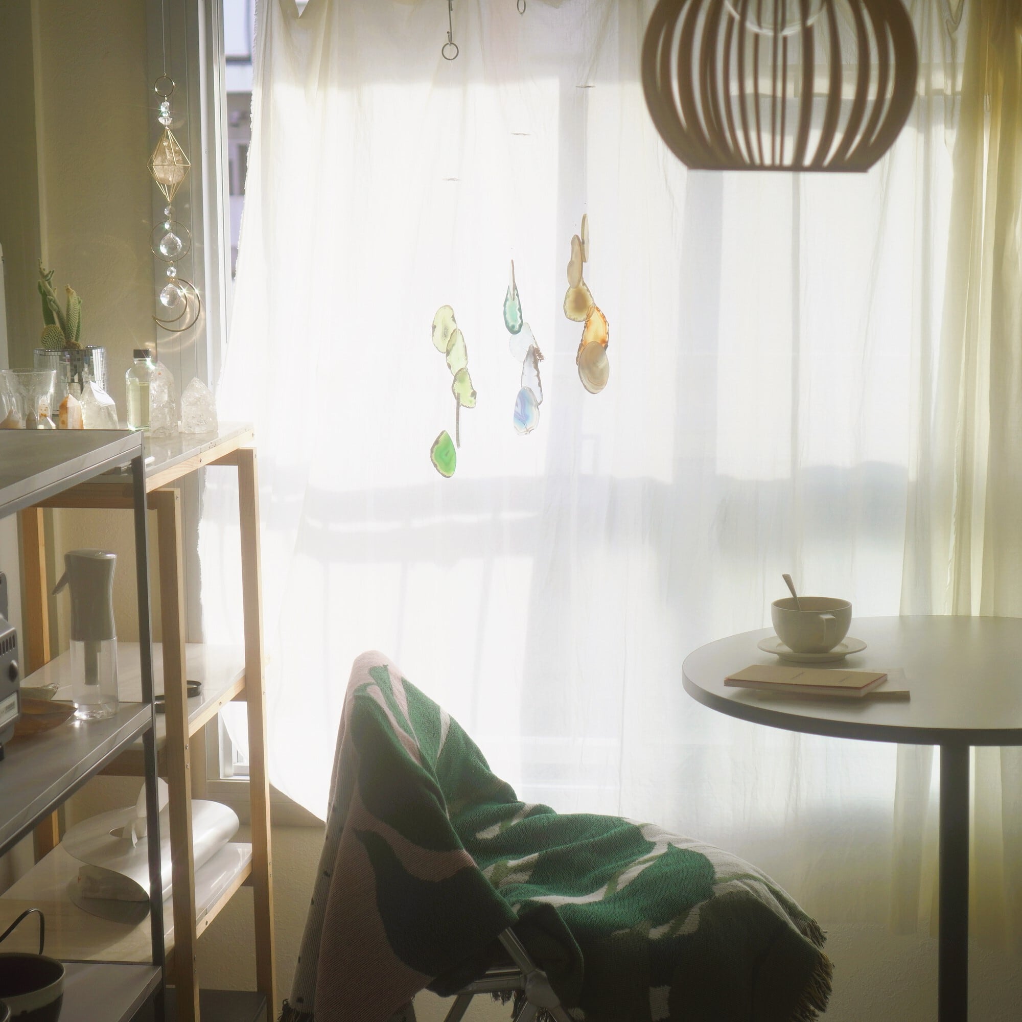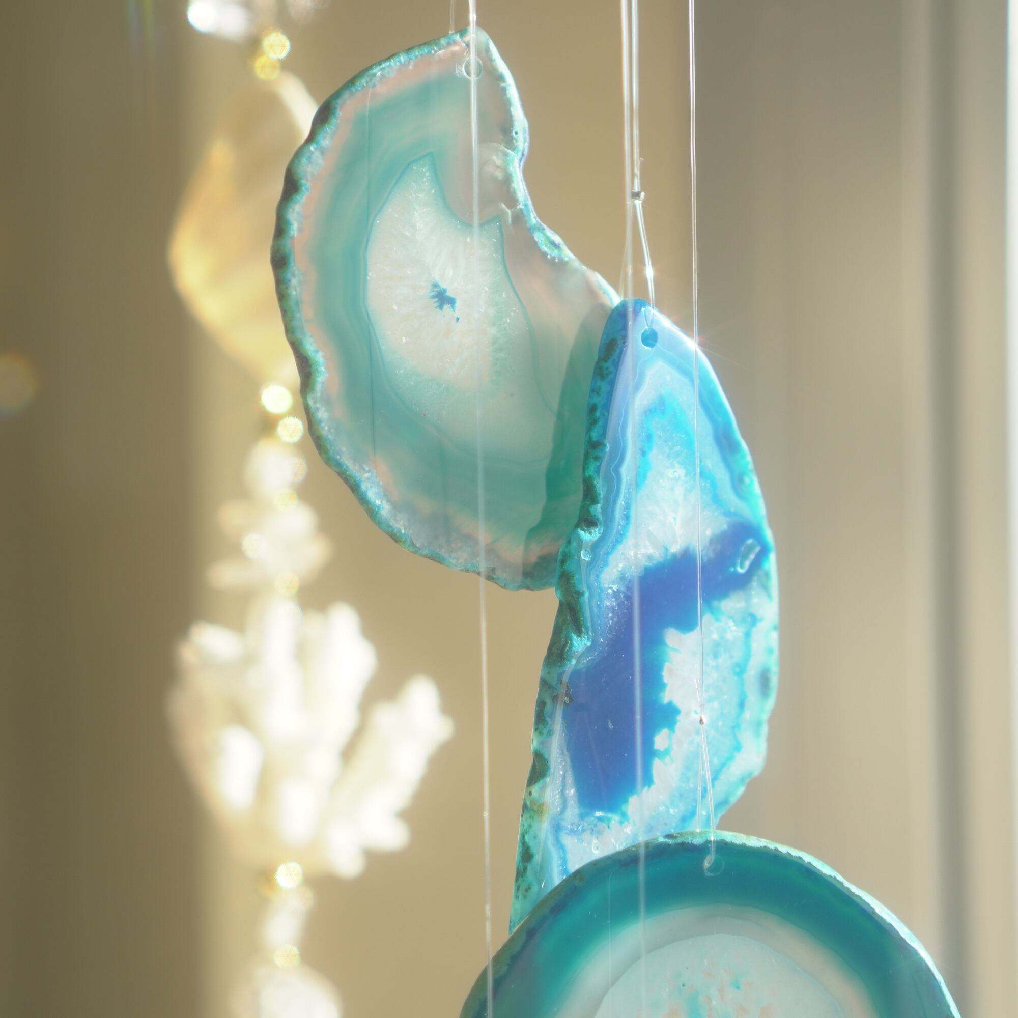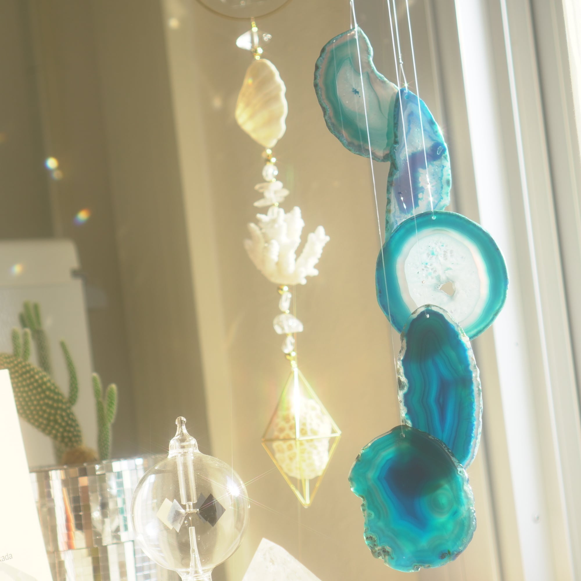 そしてカーテン越しではなく直射日光を当てた際のサンキャッチャーとしてのチャイムも、ピカピカとした美しい光をお部屋の中に運んでくれます。