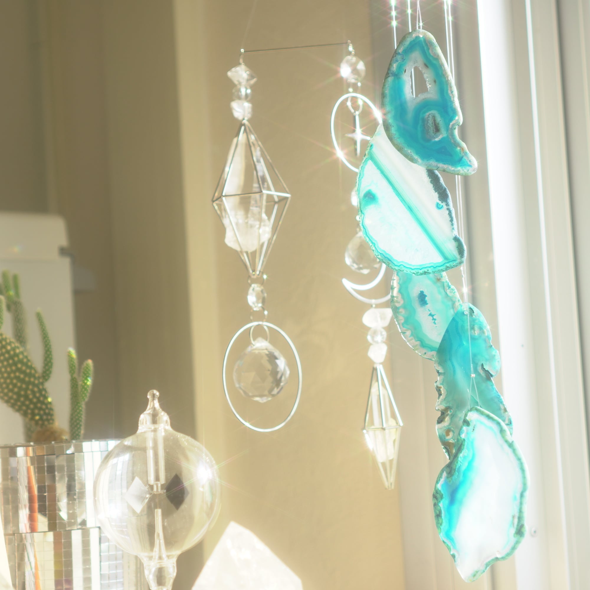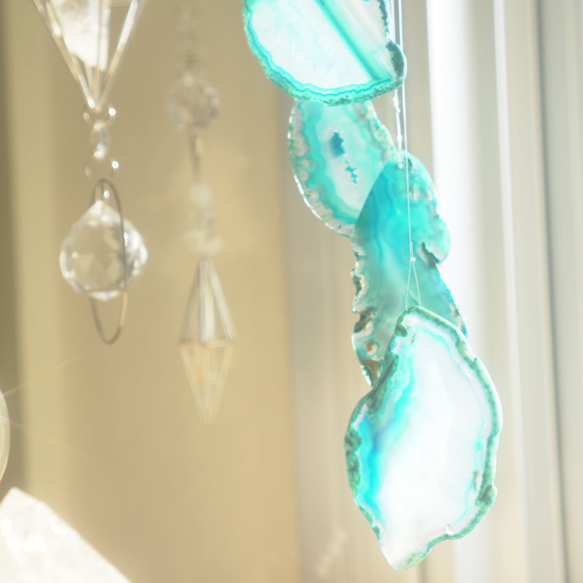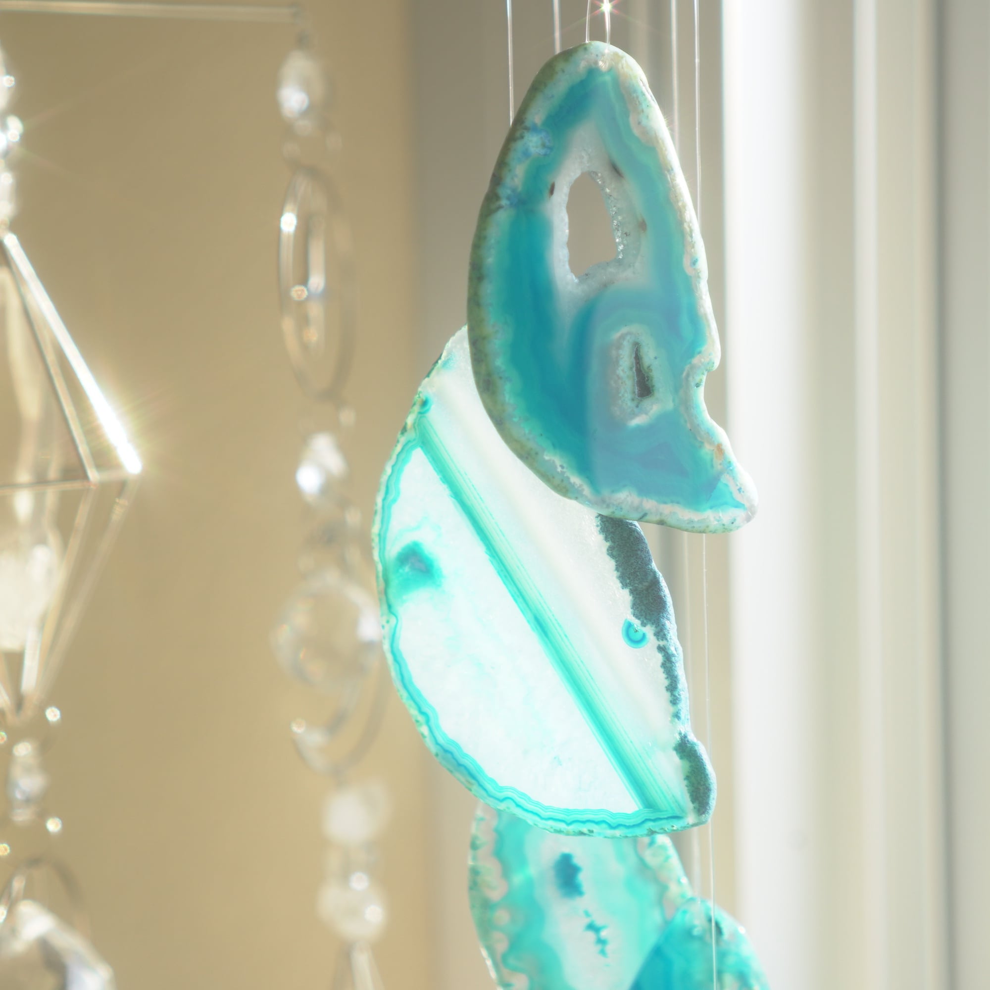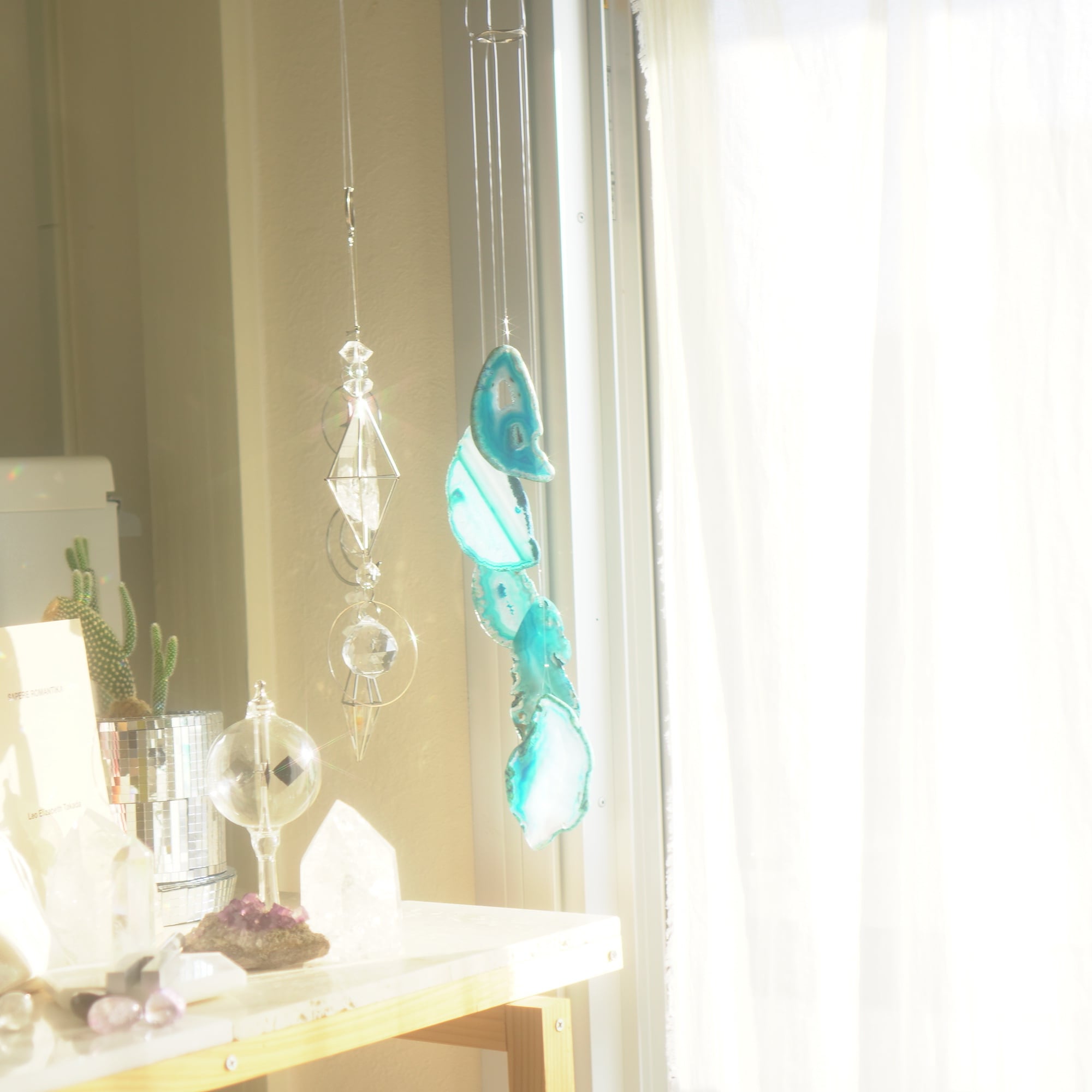 そしてカーテン越しではなく直射日光を当てた際のサンキャッチャーとしてのチャイムも、ピカピカとした美しい光をお部屋の中に運んでくれます。