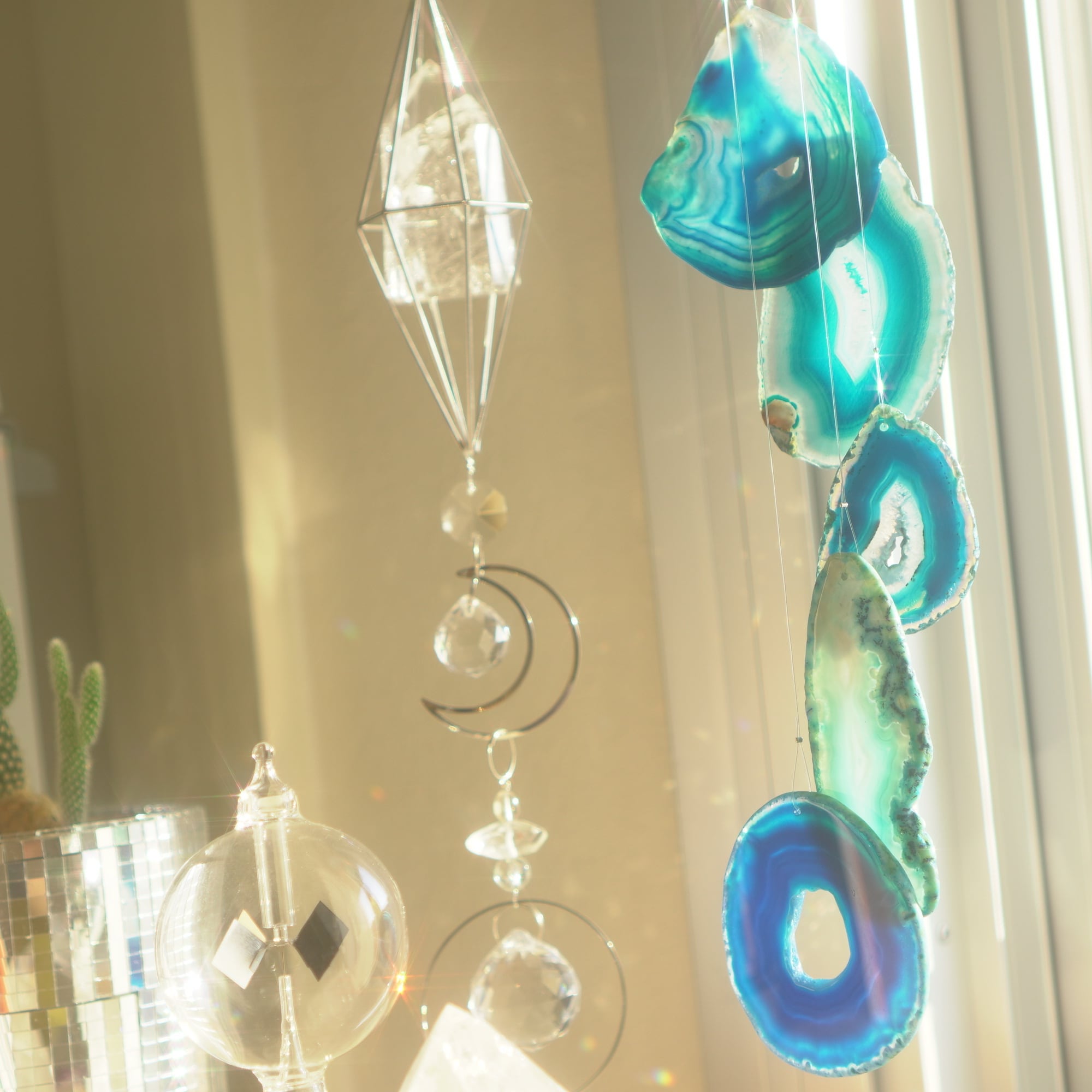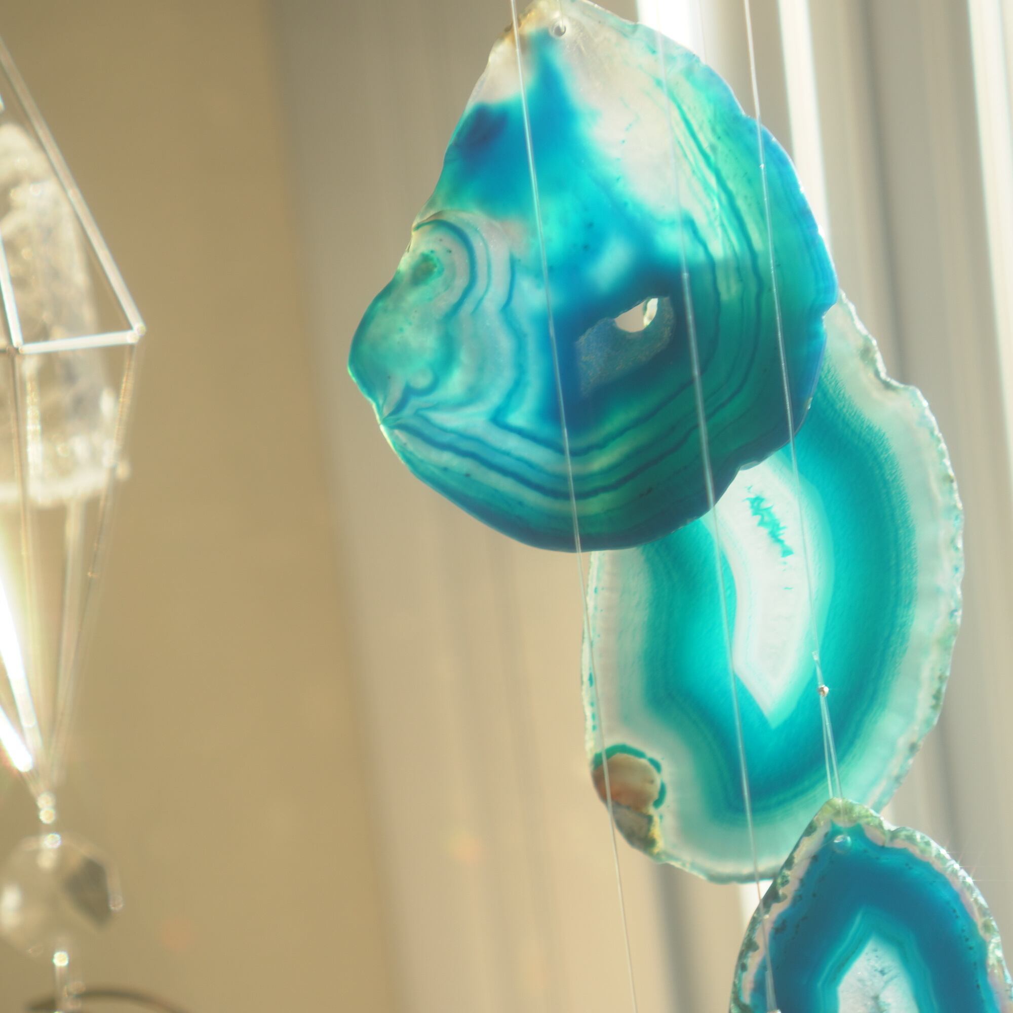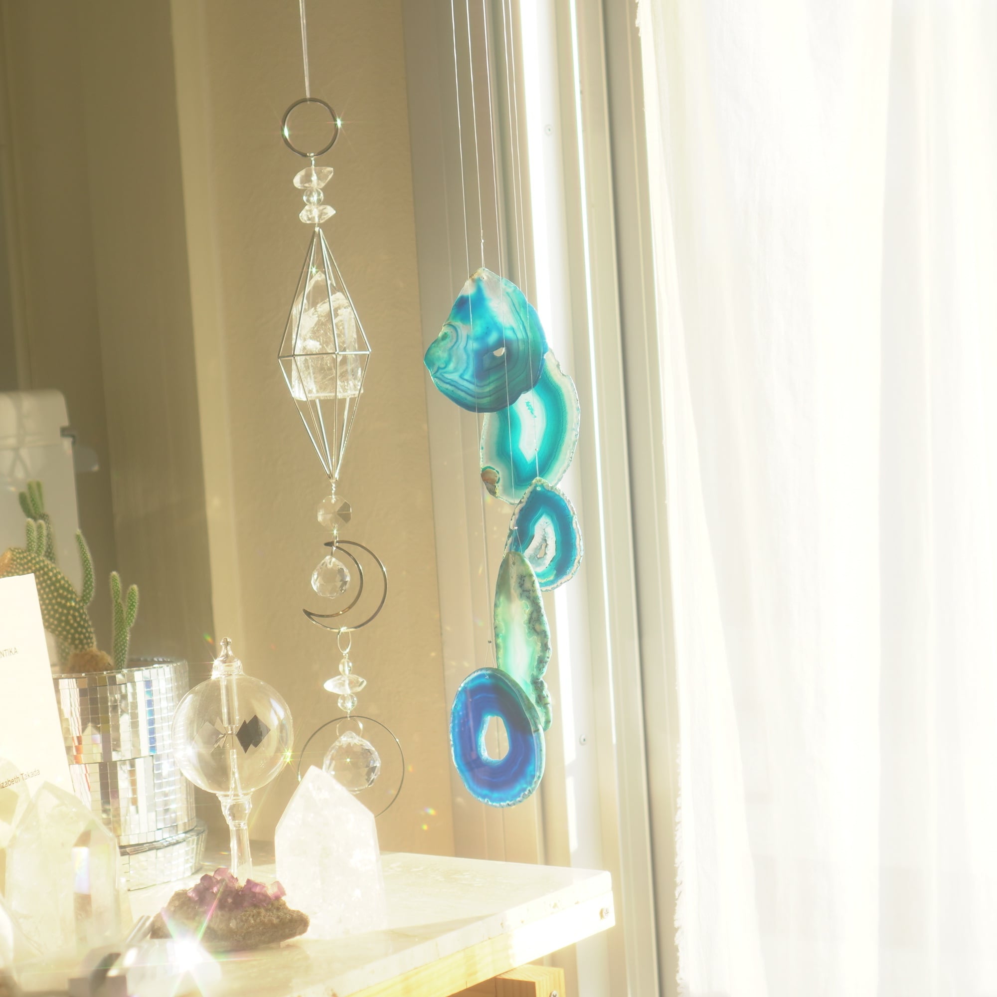 そしてカーテン越しではなく直射日光を当てた際のサンキャッチャーとしてのチャイムも、ピカピカとした美しい光をお部屋の中に運んでくれます。