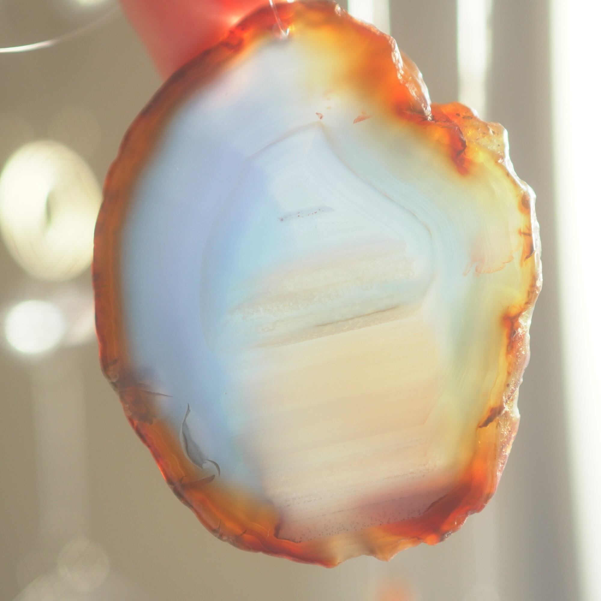 ✧染色の石なので耐光性(光による経年でのカラー変化の耐性)に優れているわけではなくベランダなど一日の中で長時間強い日光に当たるような場所に飾られるのはおすすめしないのですが、陽光に透かした時にだけ真価を発揮する美しさがありますので、是非、時折翳したりして光と一緒にお楽しみいただけたらと思います。特に濃い鮮やかな色など、色変化が気になられる場合は、日光のあまり当たらない場所に飾ってくださいね✧