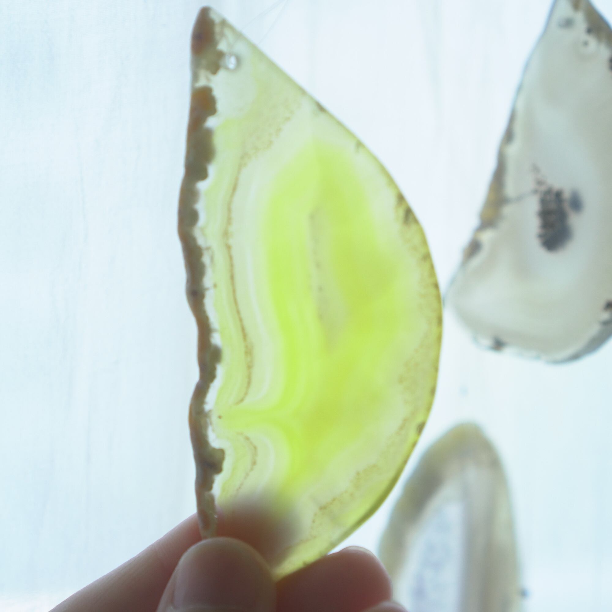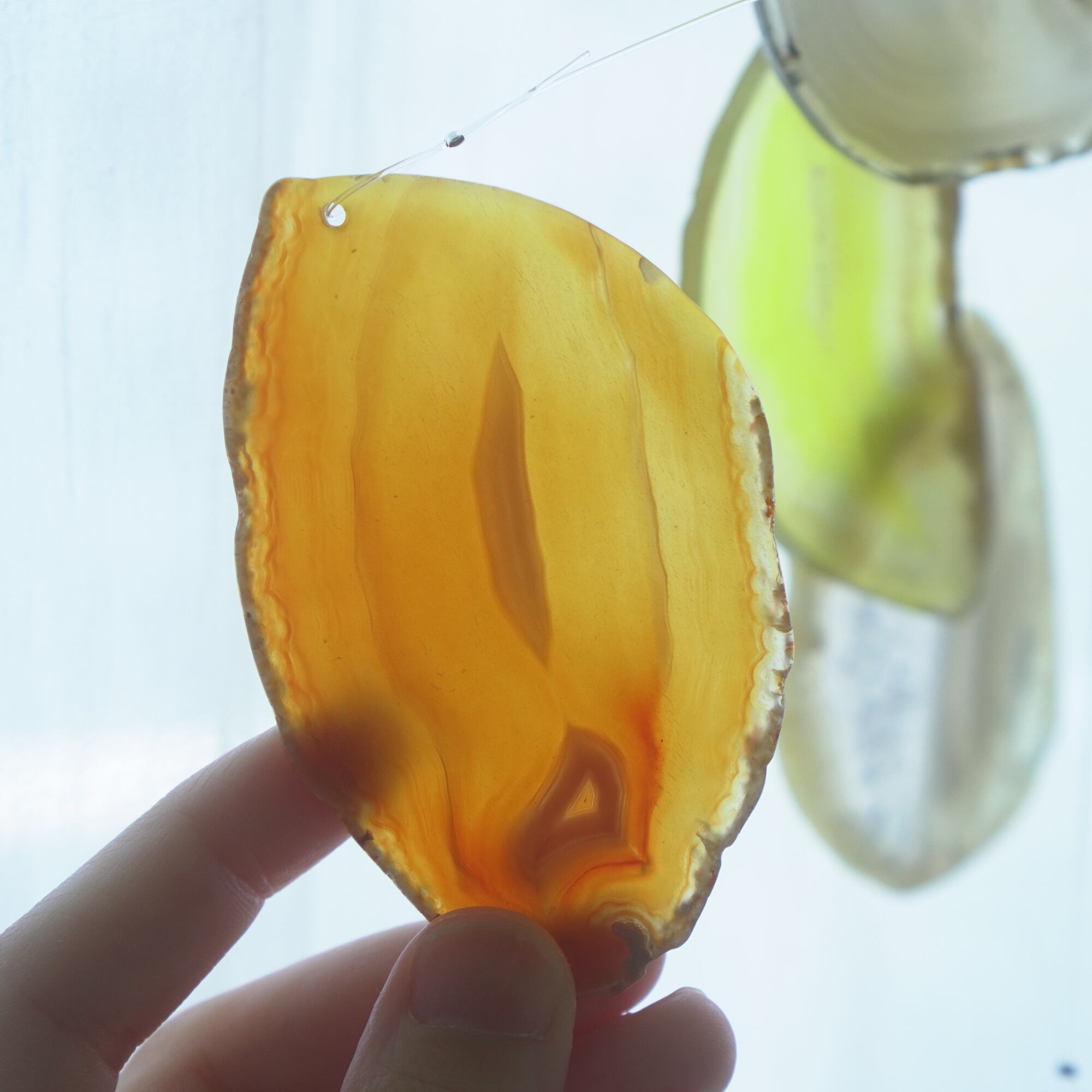 連なるアゲートが風を受けて揺れるとチリンチリン、美しい響きの音が鳴りとても癒されます。