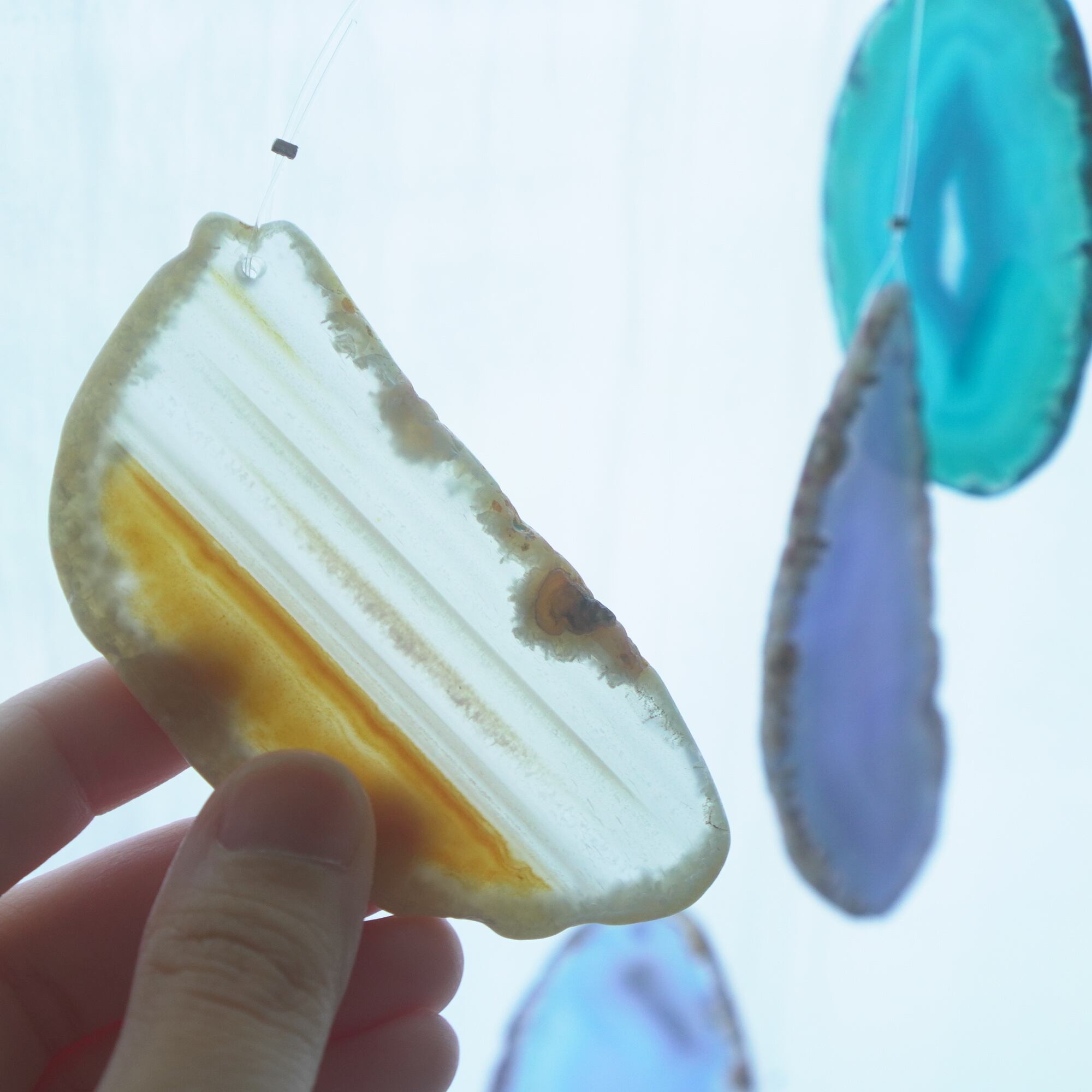 連なるアゲートが風を受けて揺れるとチリンチリン、美しい響きの音が鳴りとても癒されます。