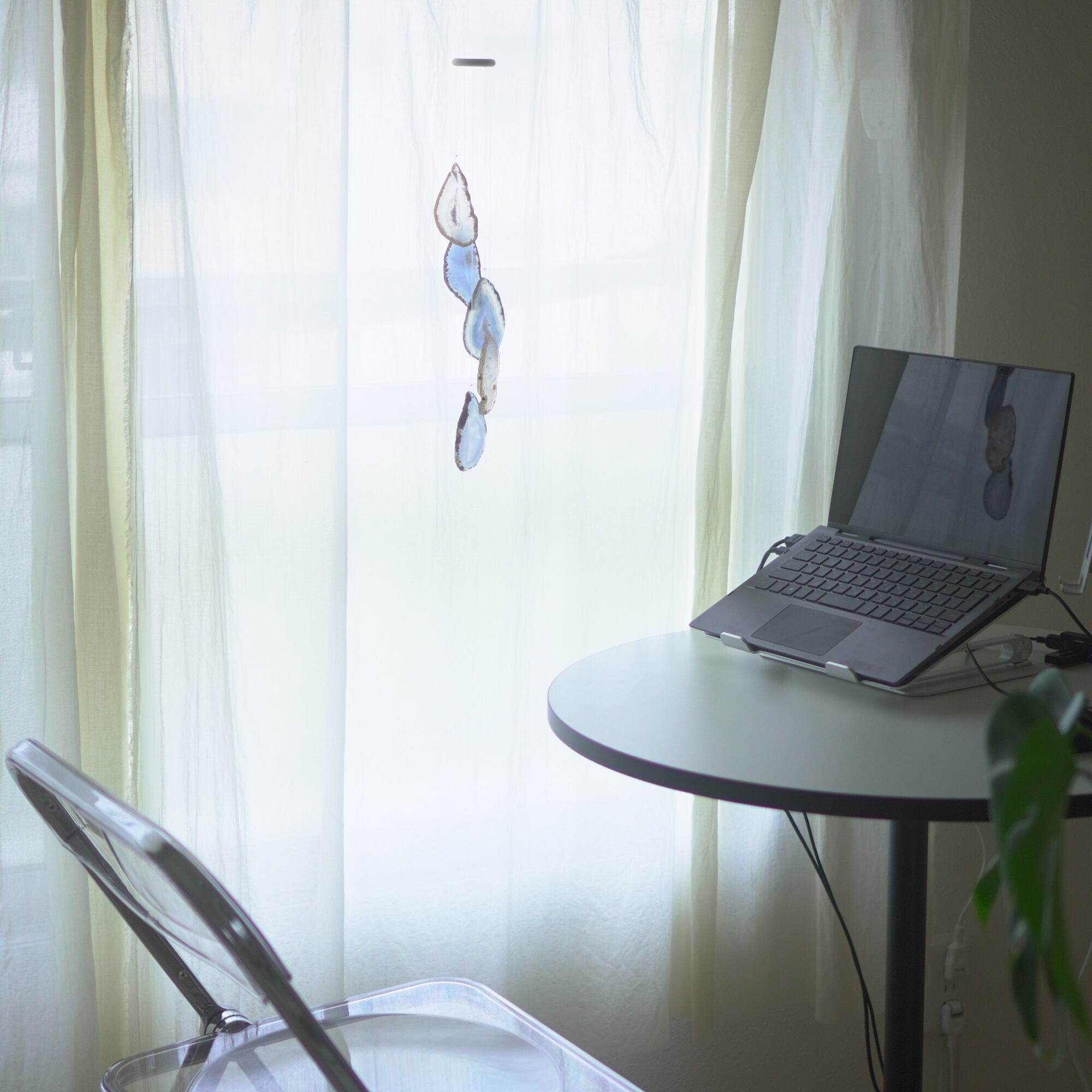 連なるアゲートが風を受けて揺れるとチリンチリン、美しい響きの音が鳴りとても癒されます。