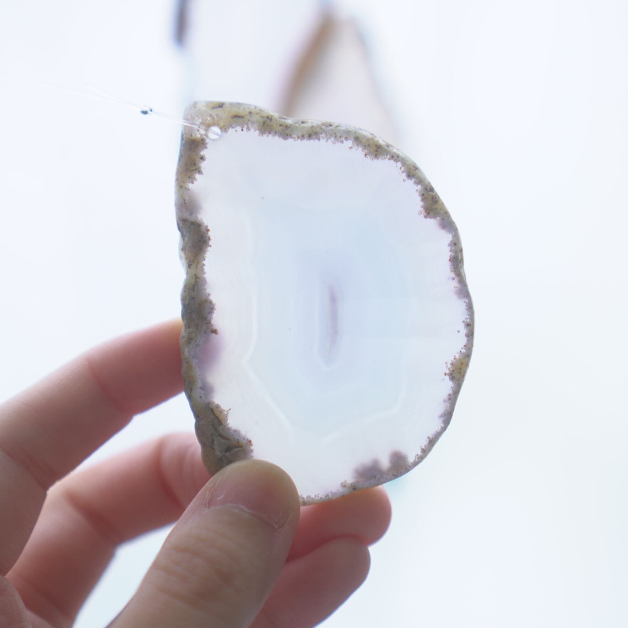 Agate Slice , Natural Wood , Nylon Cord , Metal