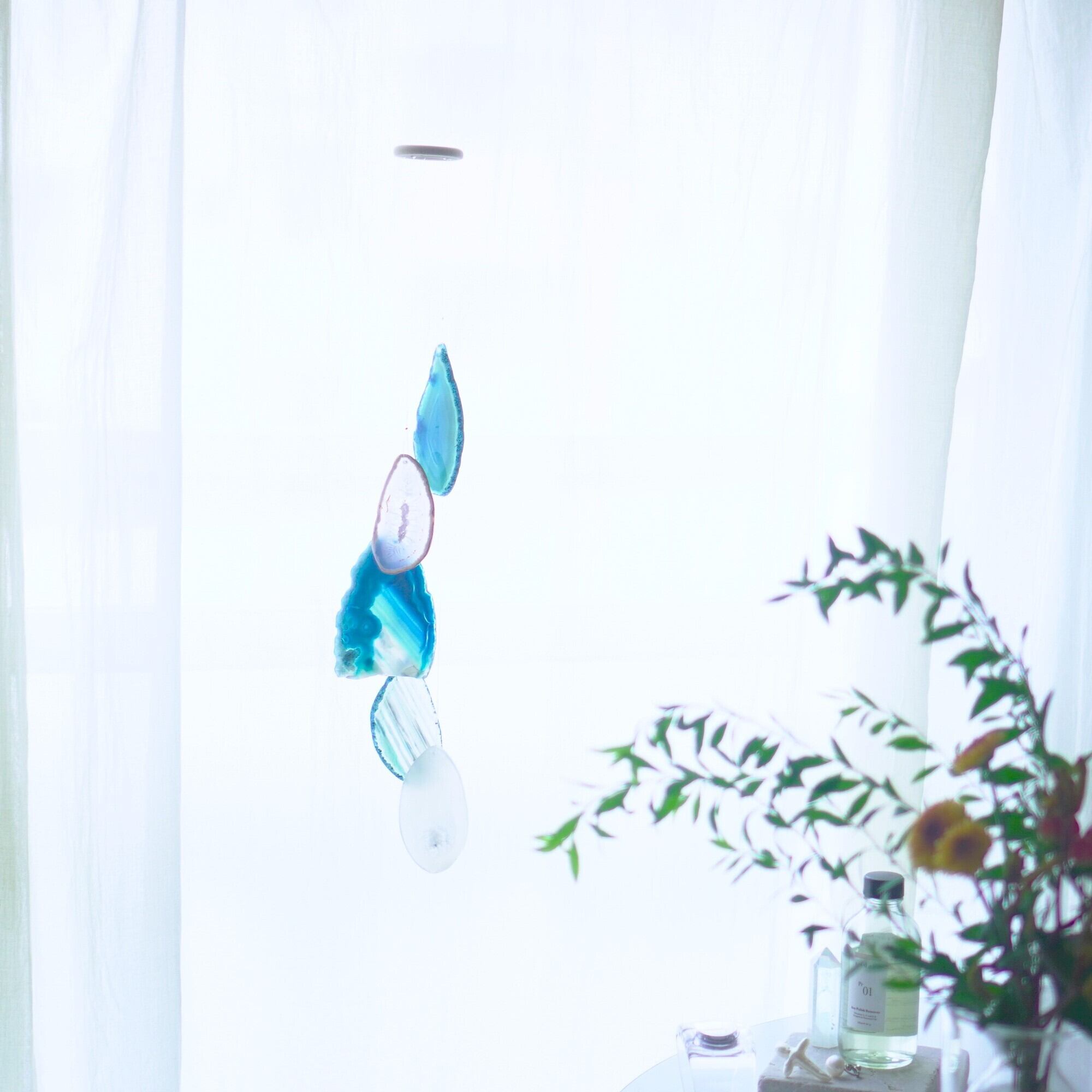連なるアゲートが風を受けて揺れるとチリンチリン、美しい響きの音が鳴りとても癒されます。