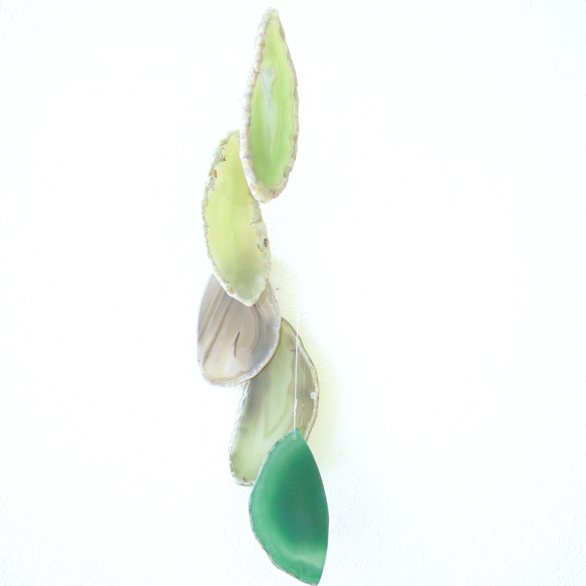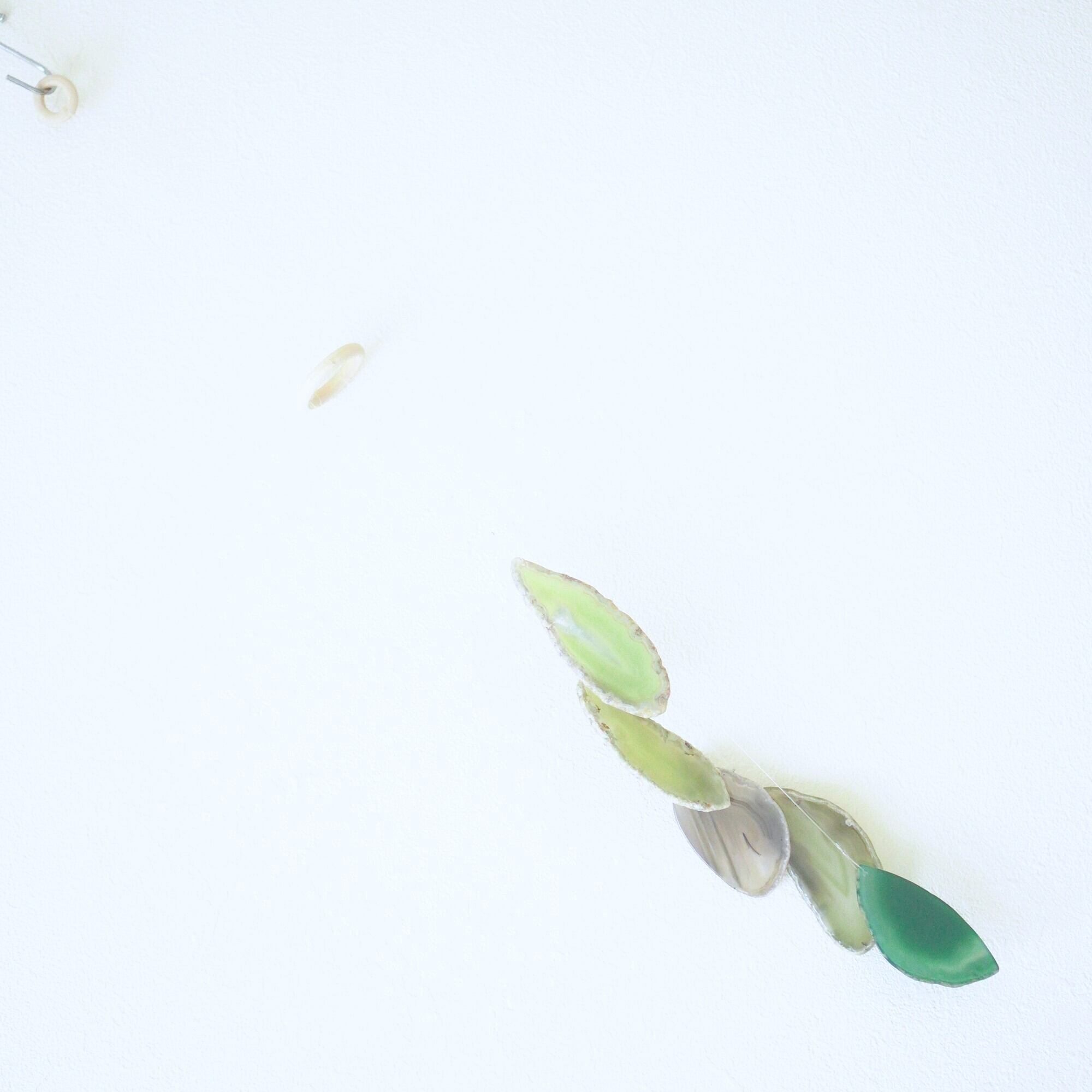 ウィンドチャイムですが、一枚一枚出方の異なるアゲートの個性的な柄は吊るすだけでおしゃれなインテリアにもなります。