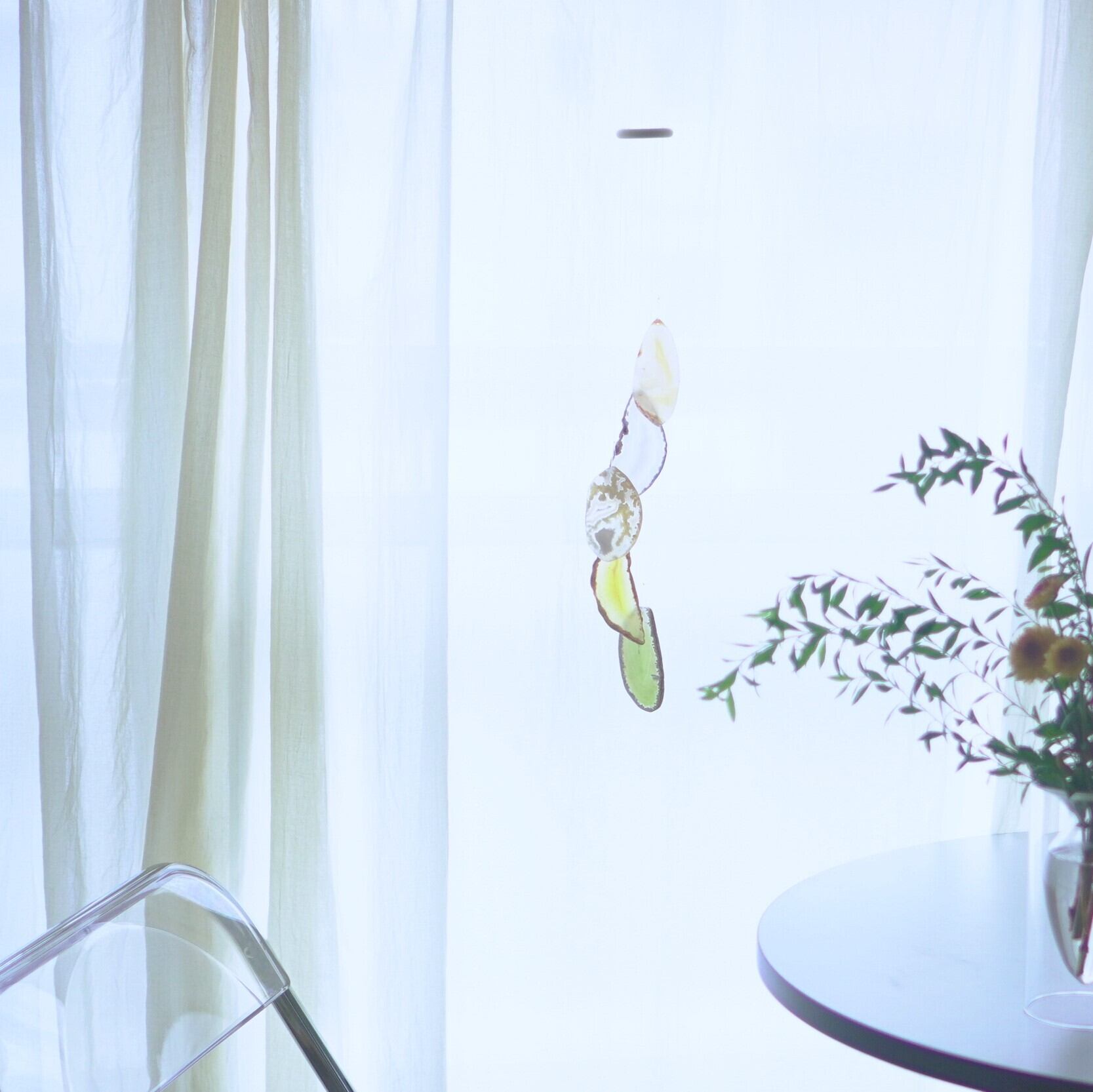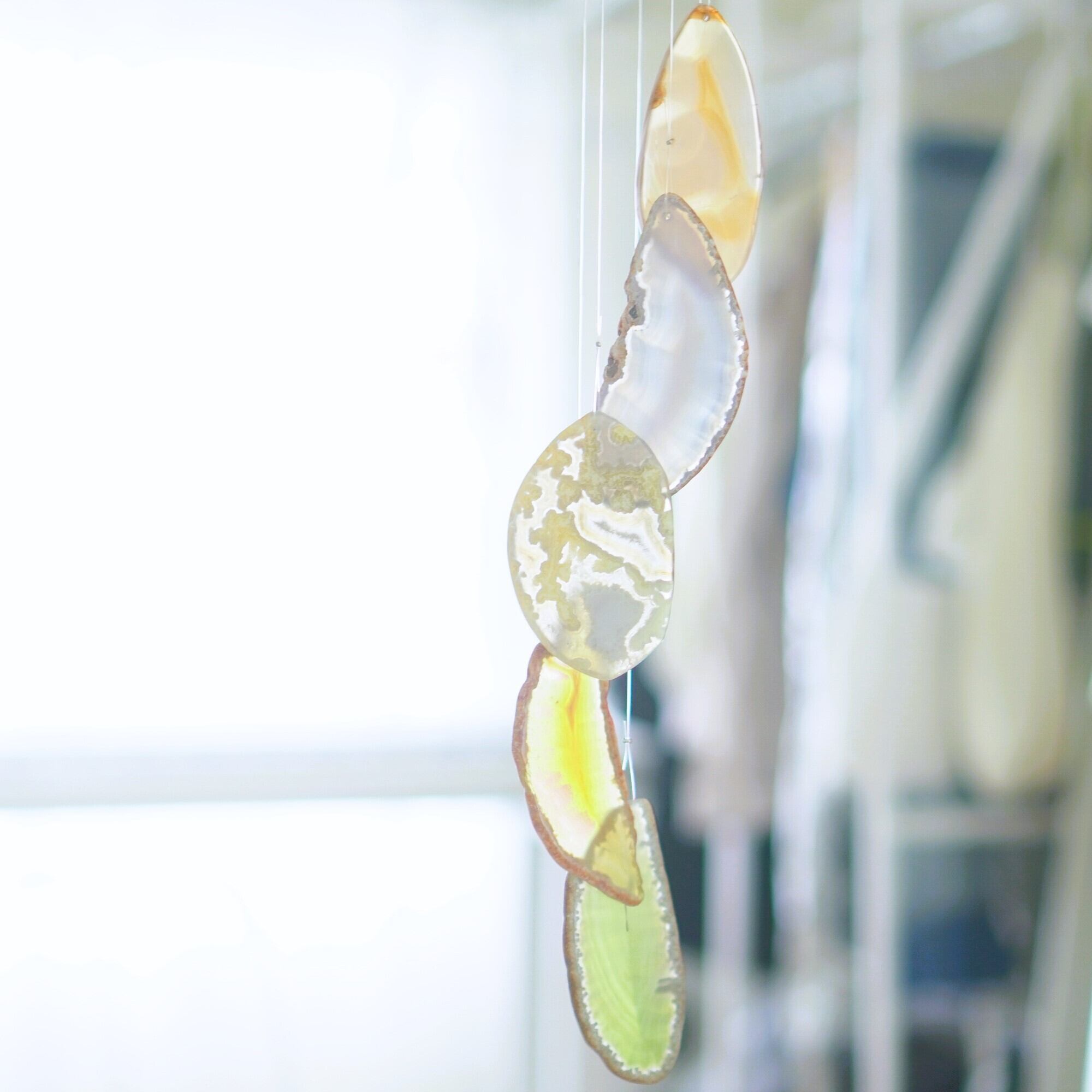 連なるアゲートが風を受けて揺れるとチリンチリン、美しい響きの音が鳴りとても癒されます。