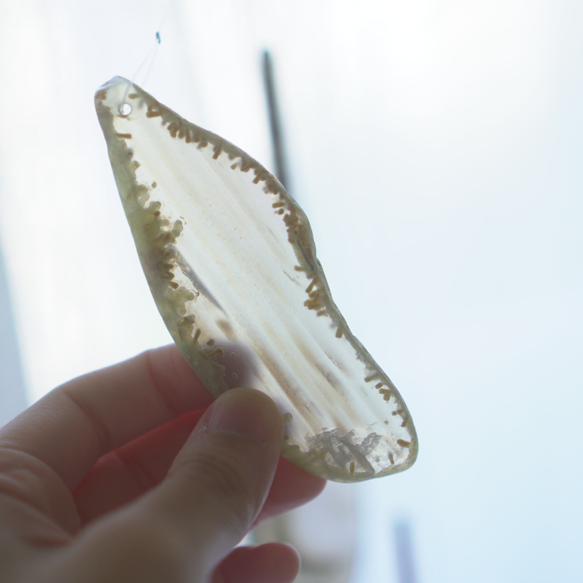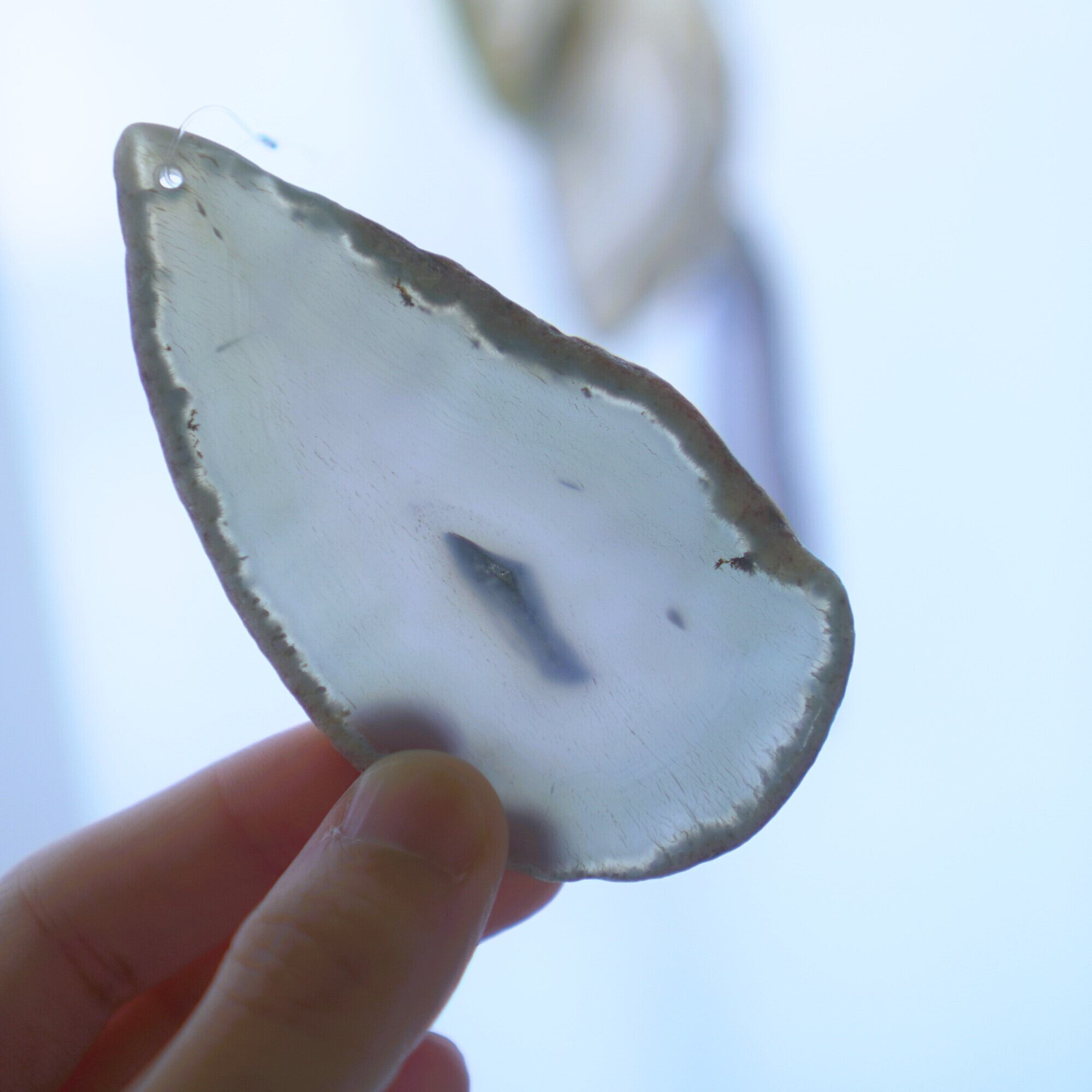 ウィンドチャイムですが、一枚一枚出方の異なるアゲートの個性的な柄は吊るすだけでおしゃれなインテリアにもなります。