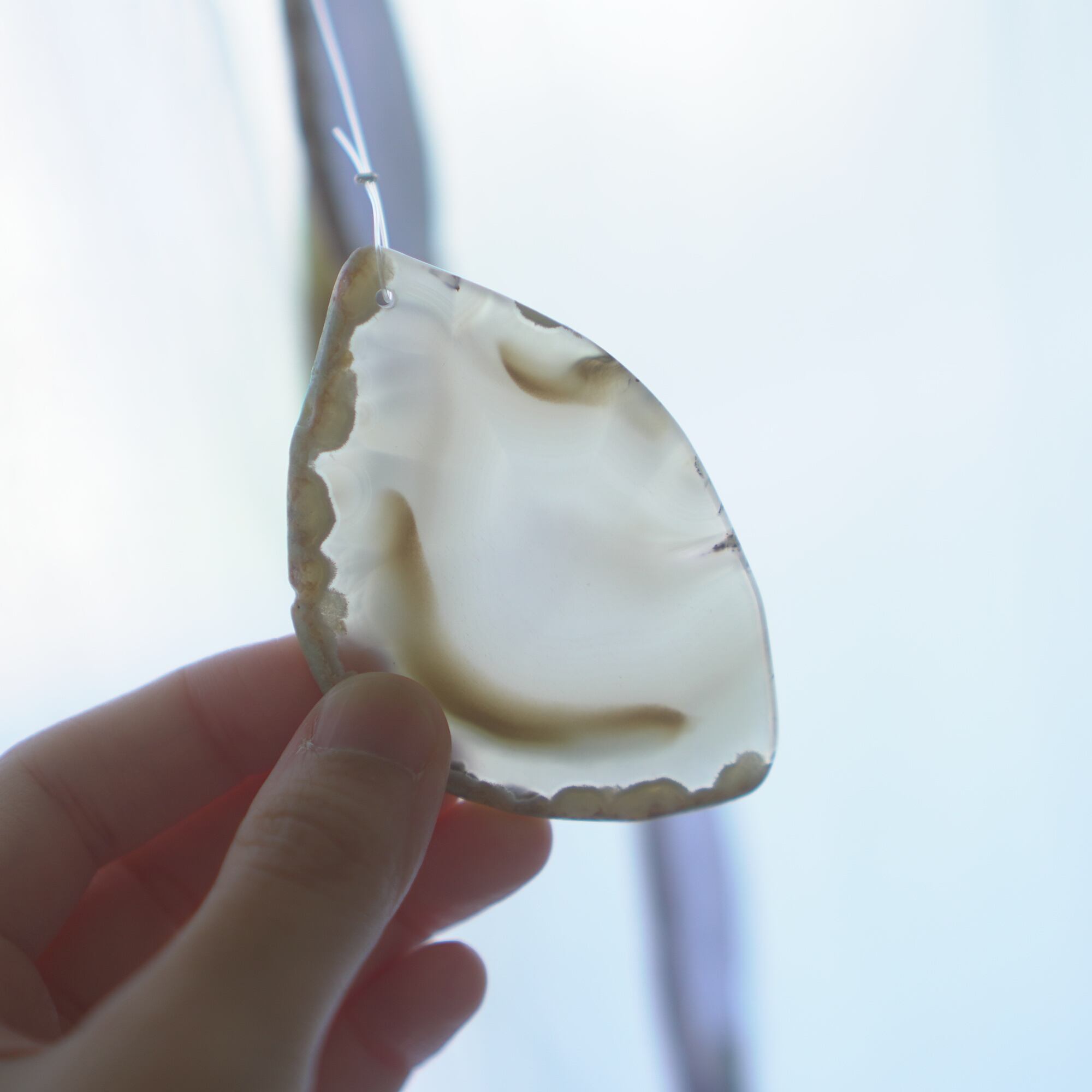 Agate Slice , Natural Wood , Nylon Cord , Metal