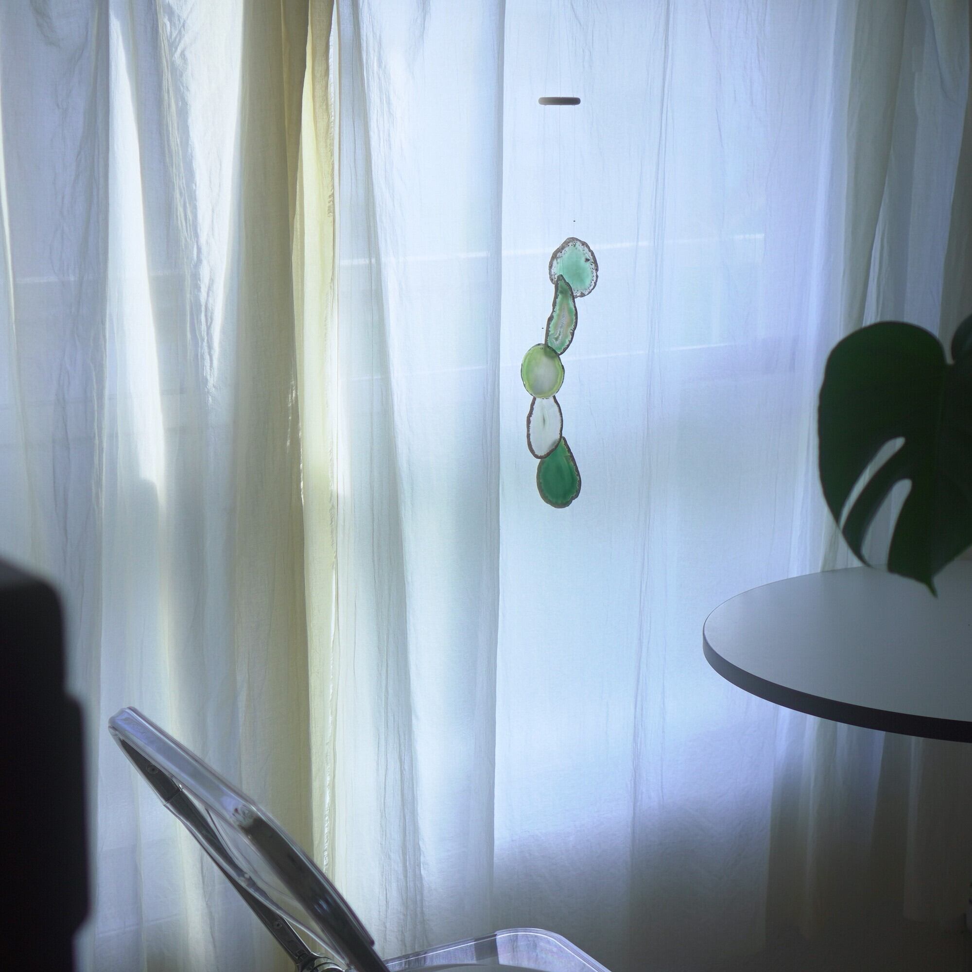 連なるアゲートが風を受けて揺れるとチリンチリン、美しい響きの音が鳴りとても癒されます。