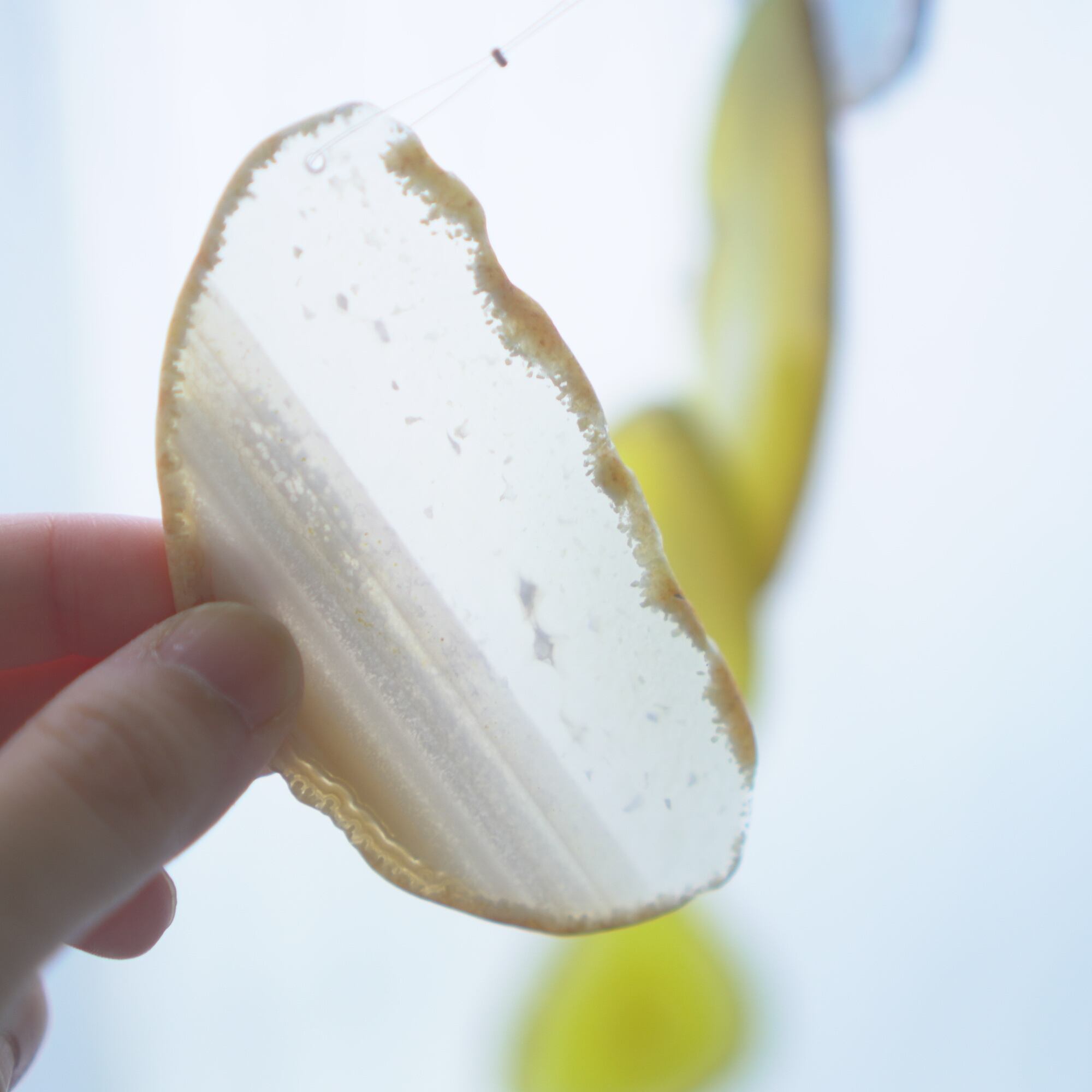 連なるアゲートが風を受けて揺れるとチリンチリン、美しい響きの音が鳴りとても癒されます。