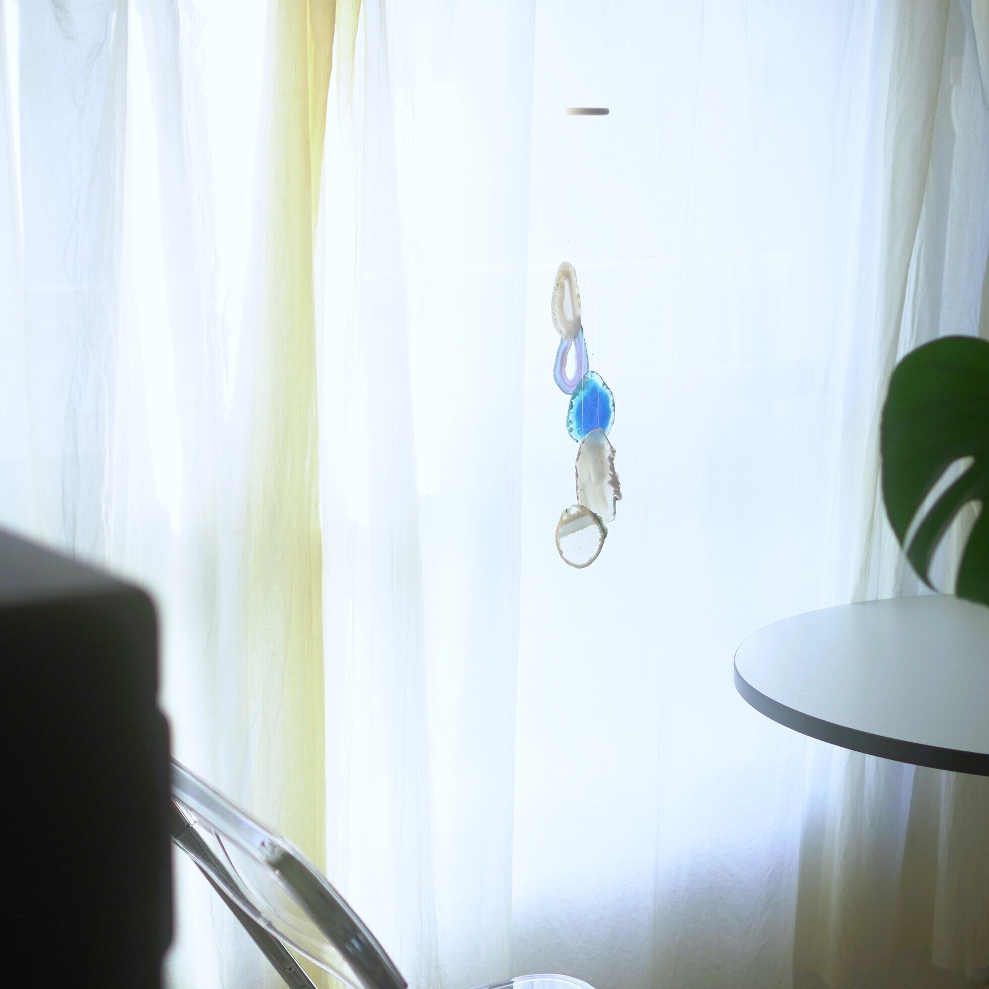 連なるアゲートが風を受けて揺れるとチリンチリン、美しい響きの音が鳴りとても癒されます。