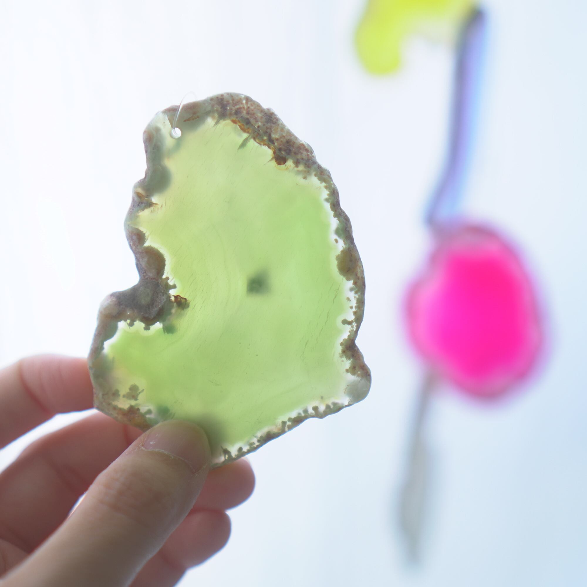 連なるアゲートが風を受けて揺れるとチリンチリン、美しい響きの音が鳴りとても癒されます。